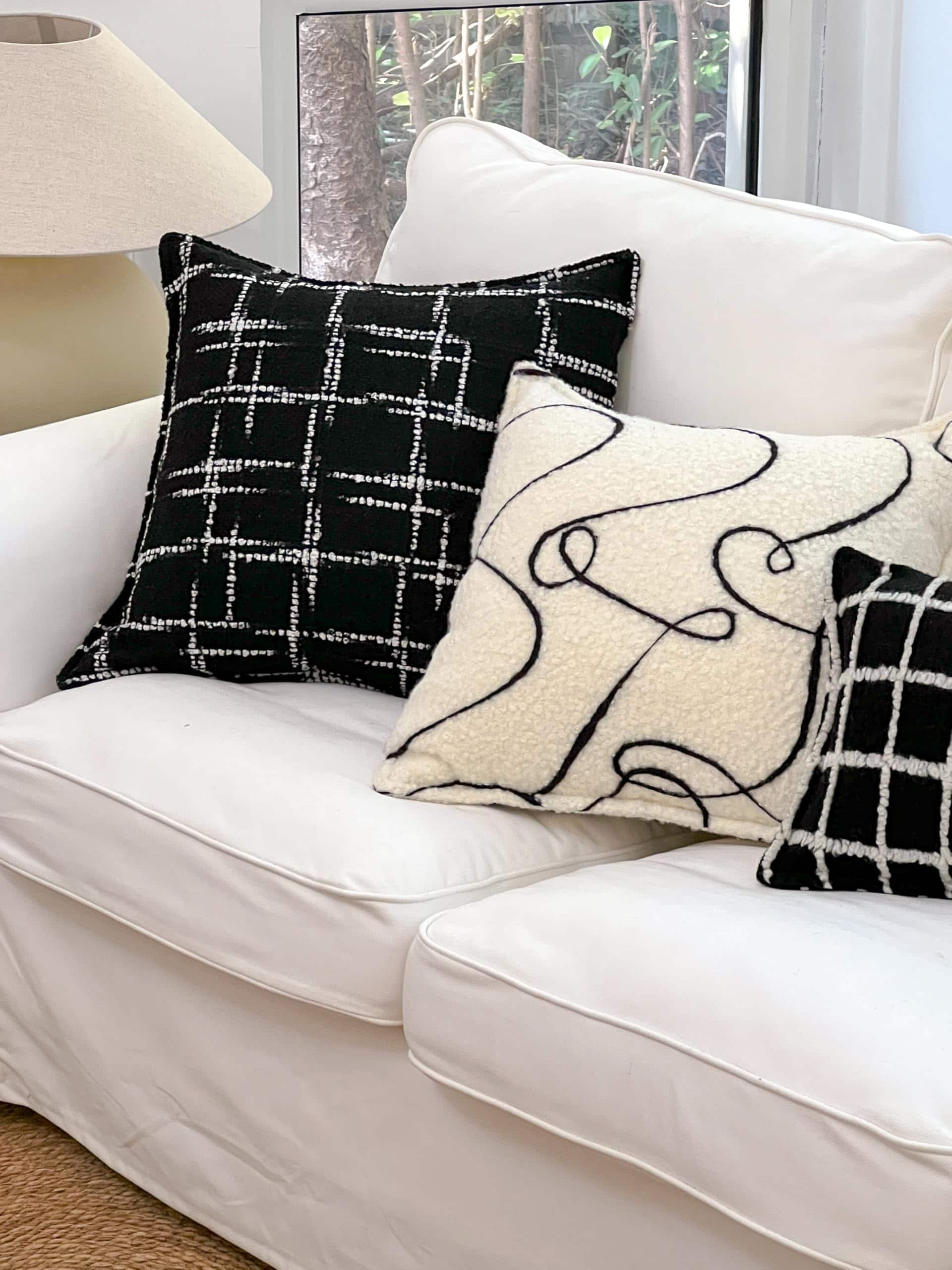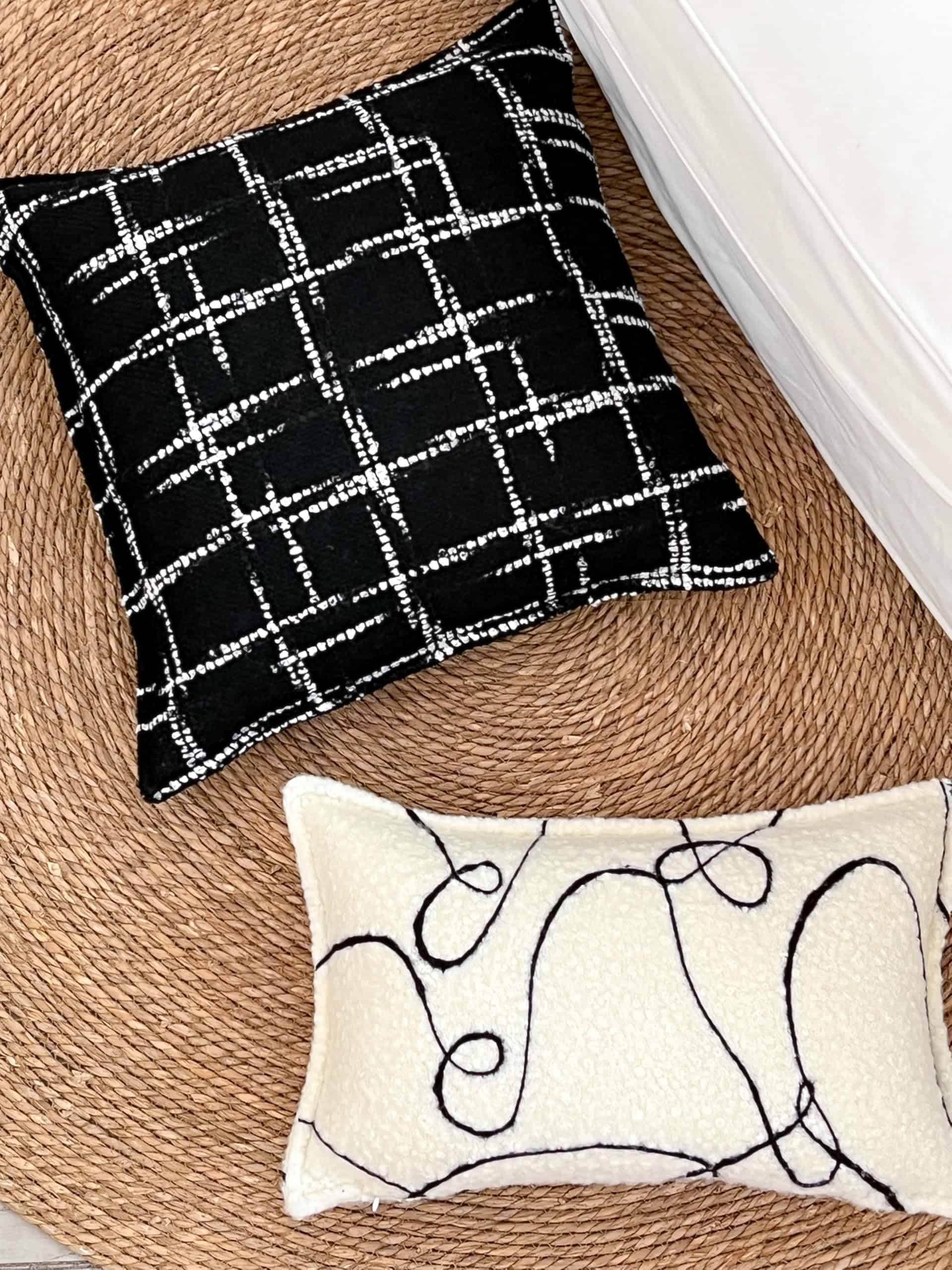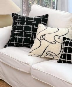 Características: Funda de cojín; Se vende como 1 pieza; Dimensiones: 20″x20″ (50x50cm); Mismo tejido en la parte delantera y trasera; Cremallera invisible YKK en la parte inferior; Tejido tejido, 100% poliéster. Elegancia atemporal: Este material exquisito presenta líneas blancas bordadas irregulares horizontal y verticalmente delineadas contra un sofisticado fondo negro, creando una textura visual dinámica. Tela exquisita: Confeccionada minuciosamente a partir de una impresionante tela de tweed negro y blanco, no solo emana opulencia sino que también ofrece una durabilidad excepcional y una sensación táctil y lujosa. Versátil: Al combinar perfectamente el encanto retro de alta gama con la elegancia contemporánea, promete ser una pieza destacada en su hogar. Solo fundas de cojín: Este producto NO INCLUYE rellenos. Los rellenos deben comprarse por separado. Puede elegir un relleno de cojín de 22″ x 22″ para que se ajuste a esta funda de cojín.