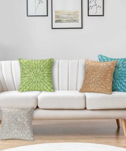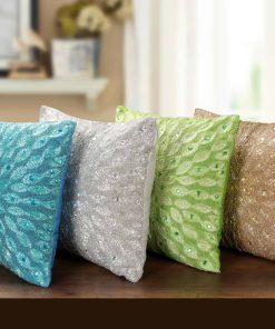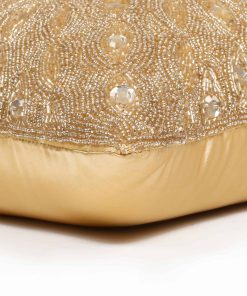 Funda de Cojín con Cuentas de Oro Hecha a Mano – 16×16