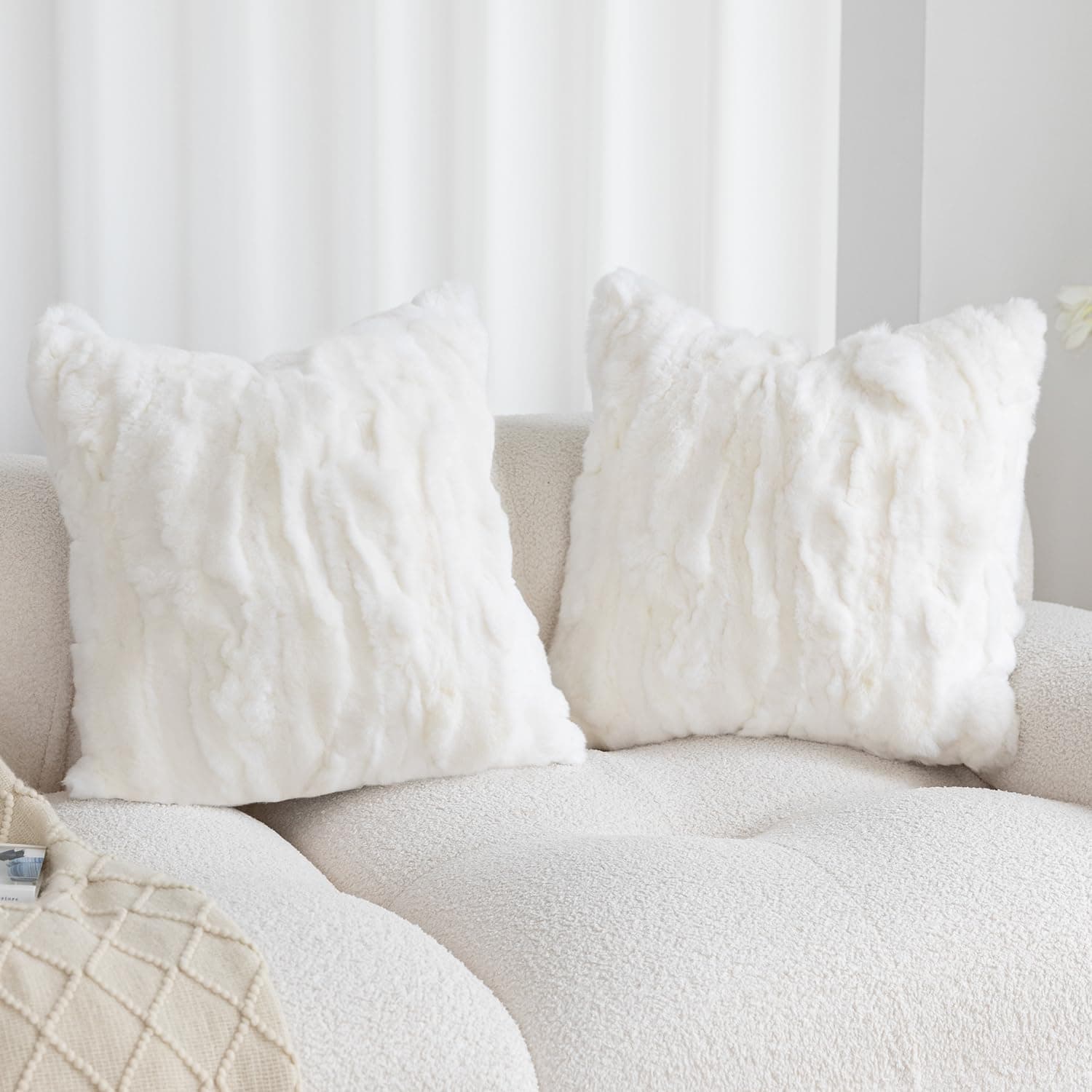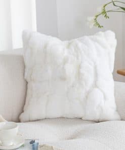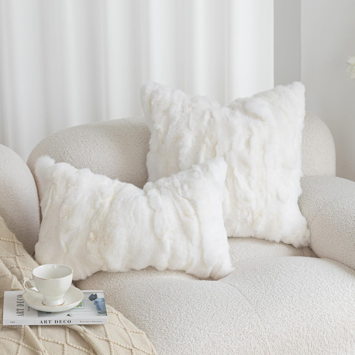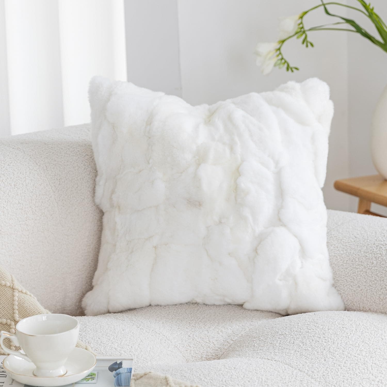 Funda de Cojín de Piel de Conejo Genuino ROSE FEATHER 18×18
