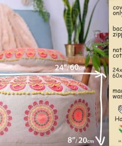 Funda de Cojín de Piso de Yoga Rojo Estilo Marroquí Área de Asientos Boho Cojín de Piso Acentúa tu Sala de Estar, Dormitorio, Guardería o Habitación de Niños Decoración de Dormitorio Puf Taburete Reposapiés Almohada de Algodón 24×8 Sin Rellenar – Añade un toque de boho chic o un borde ecléctico a tus áreas de vida! Estos cojines de piso son perfectos en dormitorios, salas de estar o áreas de juegos infantiles, proporcionando un acento creativo, útil y lujoso a cualquier espacio. Eleva tu espacio con un elemento de sorpresa inesperado! Con tantos diseños, colores y tamaños para elegir, seguro que encontrarás el cojín de piso perfecto para combinar con tu estilo único. Llena a medida tu funda de estilo bohemio – visita la tienda Mandala Life Art para recomendaciones de compra de espuma tapizada, insertos de almohadas y rellenos. Las mejores y más económicas opciones son reutilizar tu ropa vieja, sábanas de lino, mantas, toallas y otros tejidos preamados. Añade un toque de color – ¡Descubre un arcoíris de hermosas posibilidades! Con 20 colores y diseños magníficos, ¡seguro que encontrarás un cojín (o tres!) que combine perfectamente en tu espacio. Añade un toque de color para iluminar una habitación o elige varios para crear una atmósfera acogedora y vibrante!