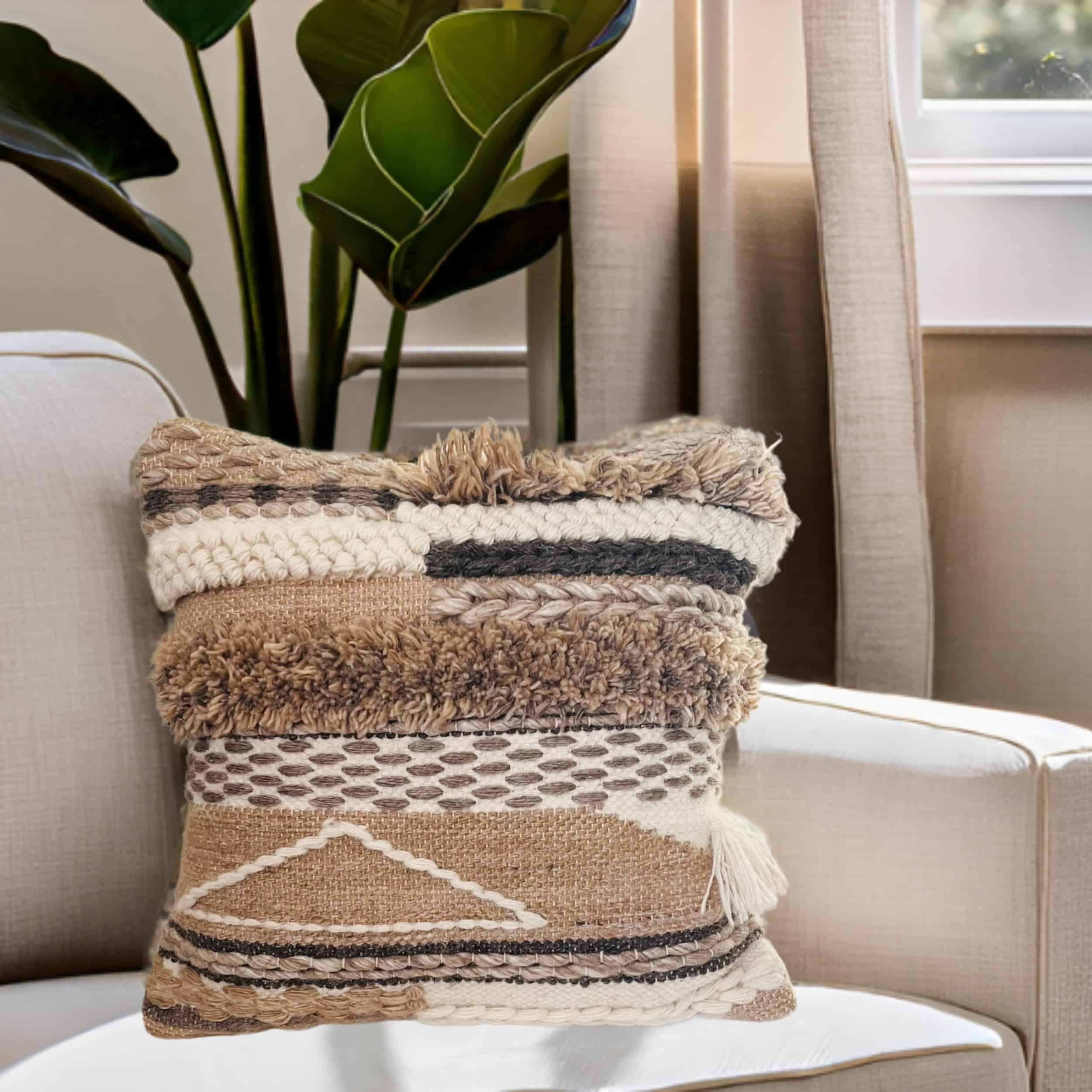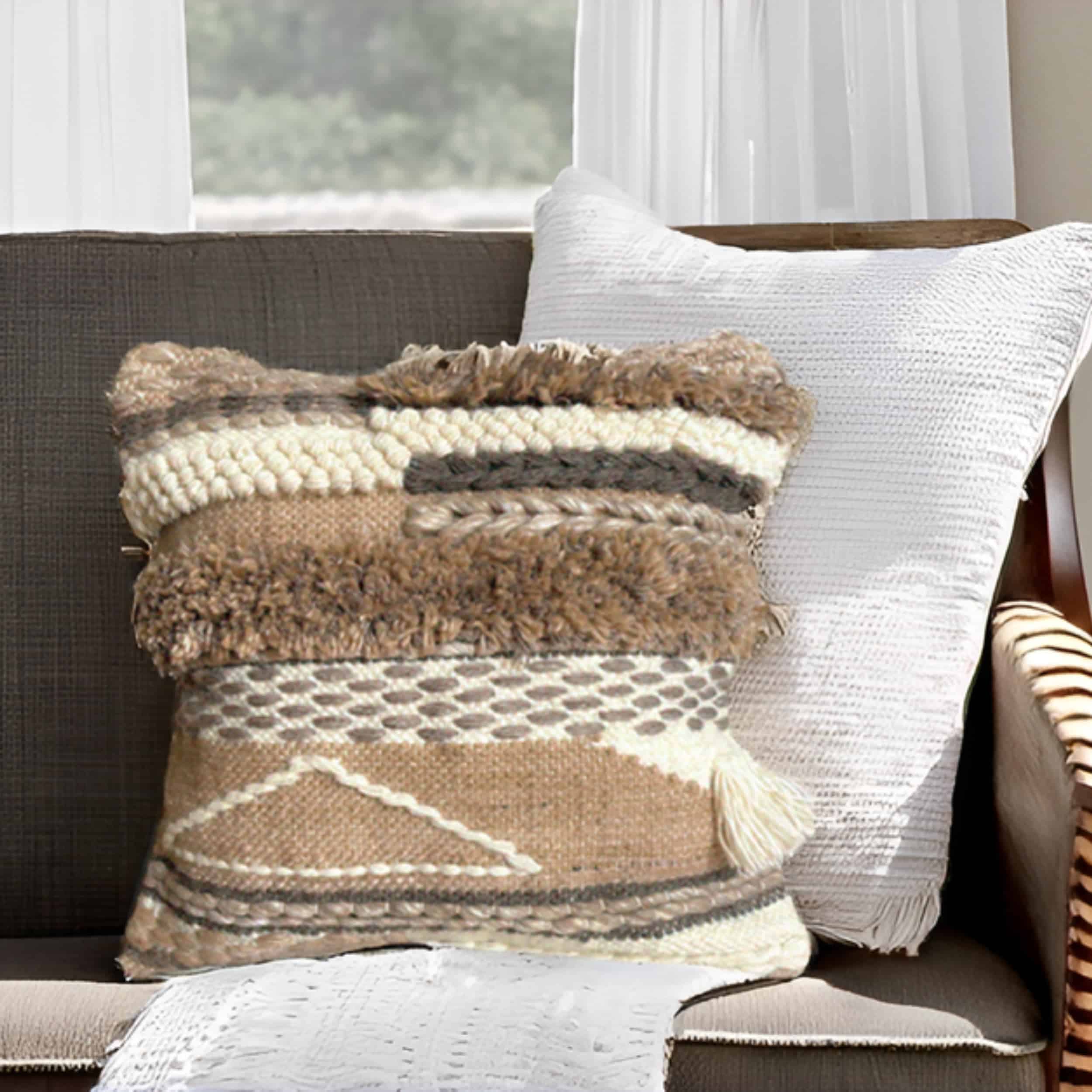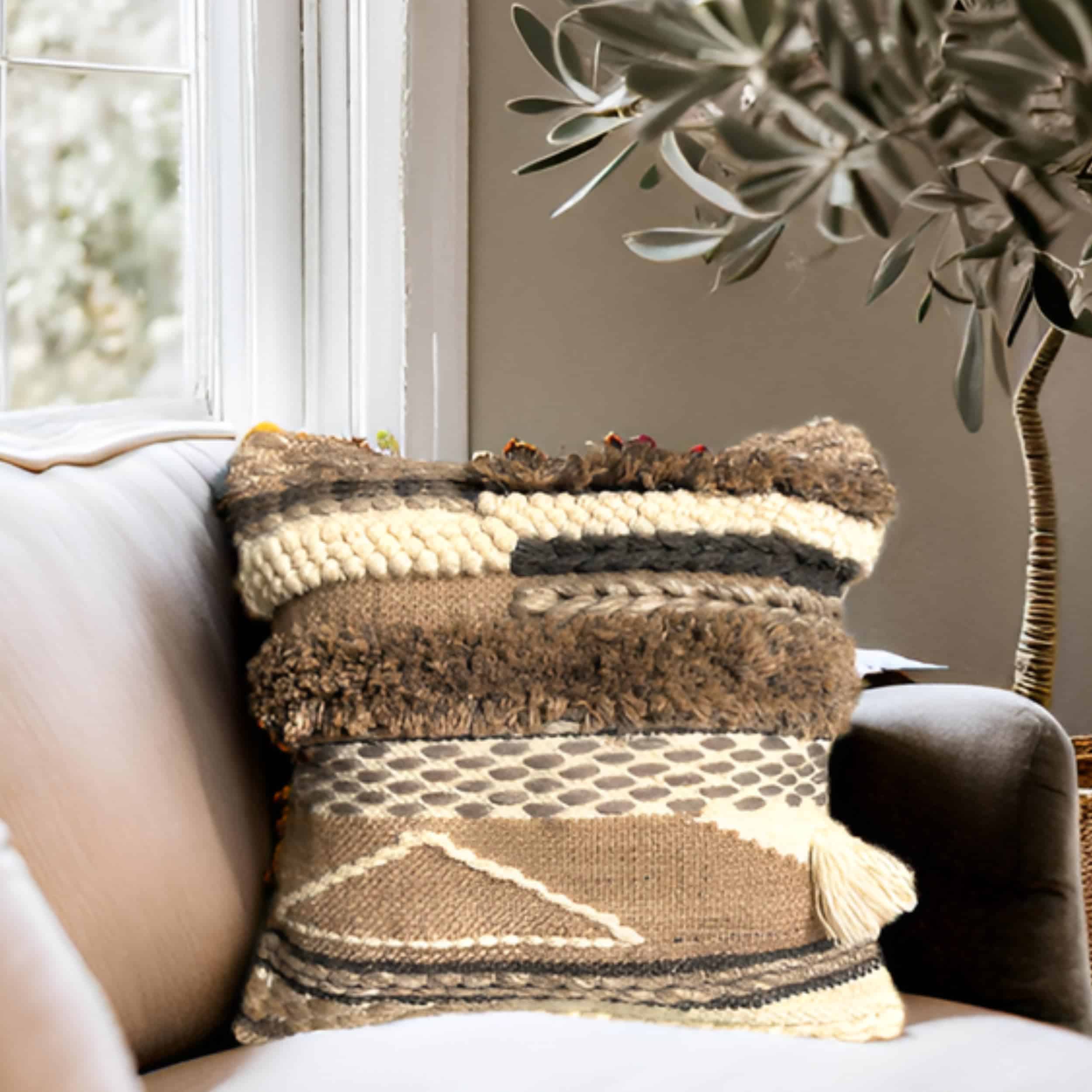 5. Algodón texturizado tejido a mano: Como una almohada escandinava tradicional, esta funda de almohada boho chic tiene un acabado de algodón de alta calidad que las hace más suaves y duraderas para un uso duradero en su hogar. ¡Incluso son seguras para lavar a máquina!