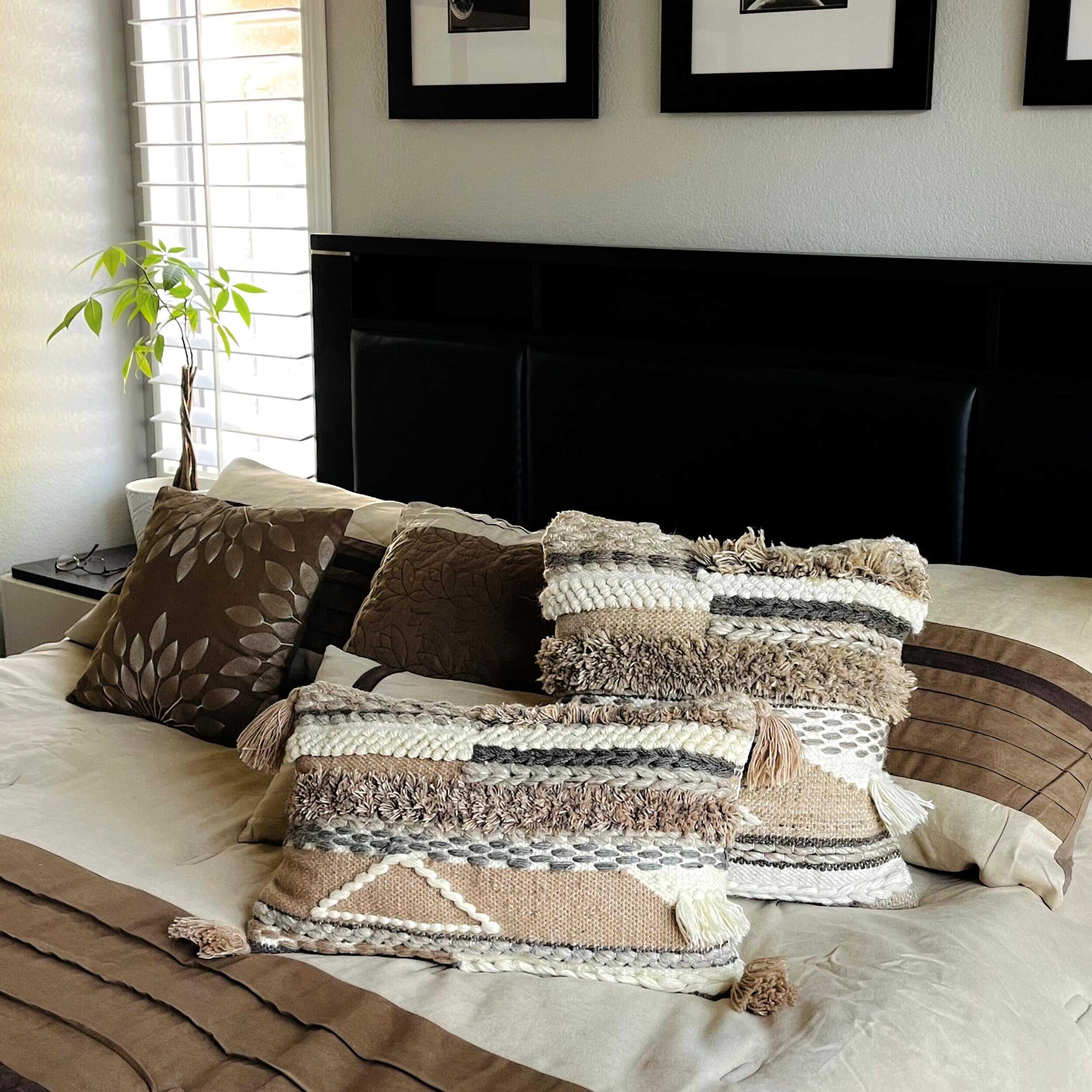 4. Almohada decorativa de acento para dormitorio: Las mejores fundas de almohada COCO MARKETPLACE para decorar la cama o el sofá están diseñadas con hermosos flecos en los bordes que les dan un aspecto, acabado y sensación únicos. Perfecto para añadir sofisticación cálida y elegante a cualquier habitación de la casa.