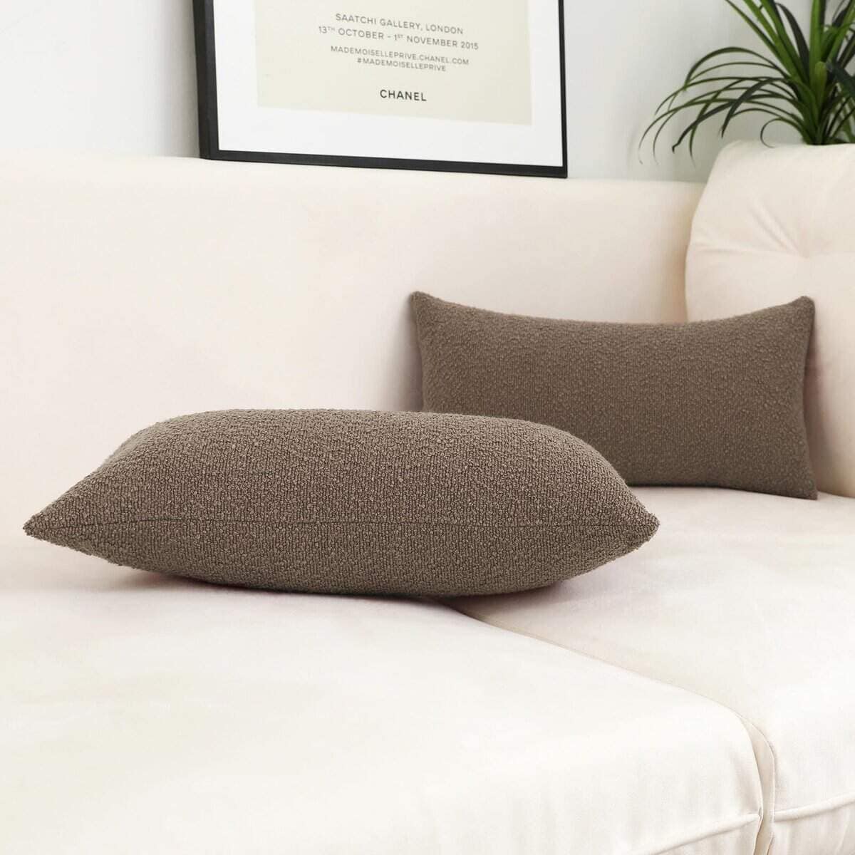 La funda de almohada boucle gruesa de estilo granja de lujo está bellamente diseñada y bien hecha. El tono neutral se puede usar con cualquier color para la decoración.