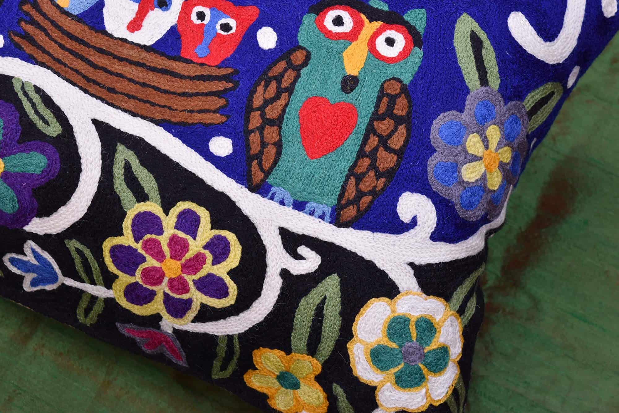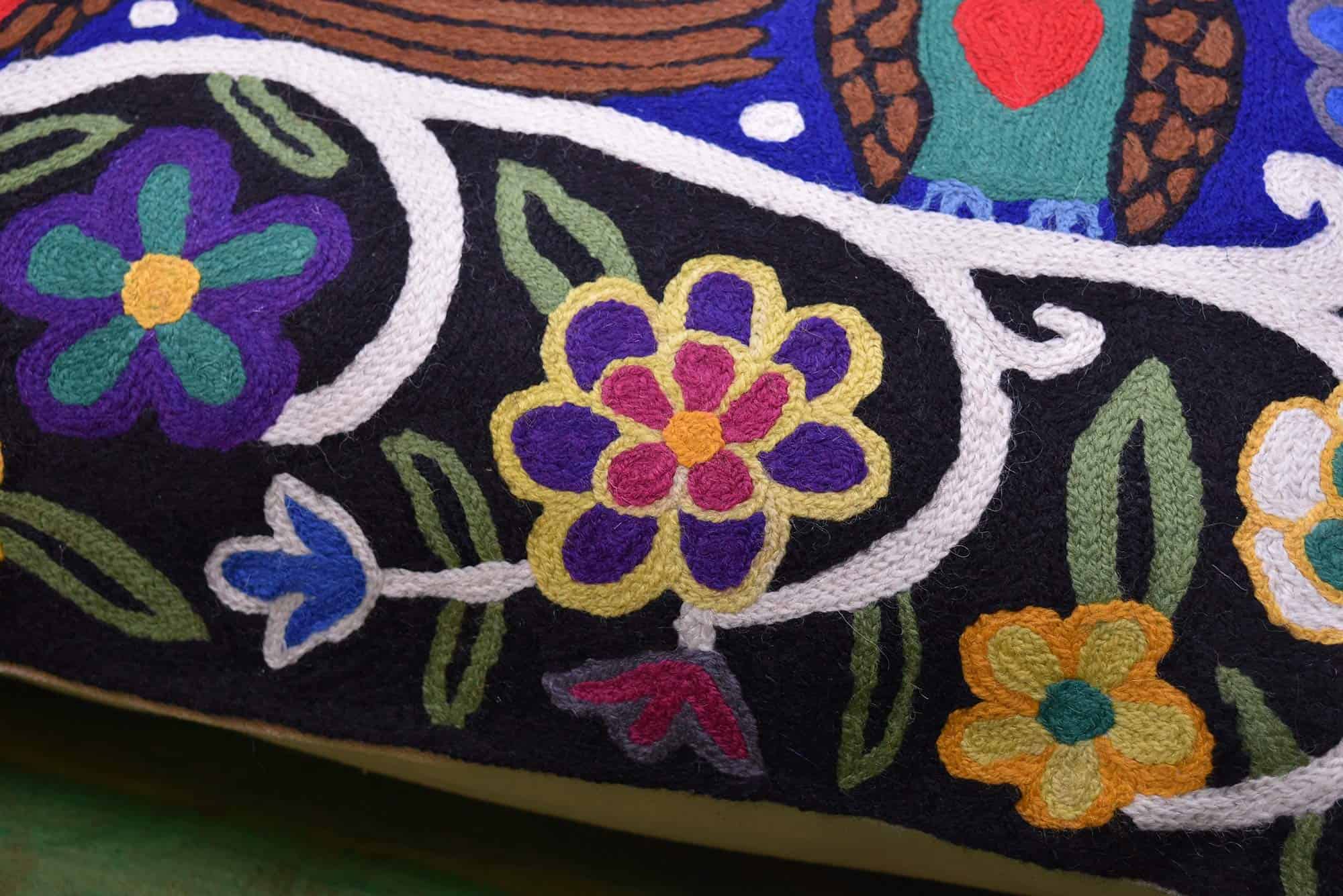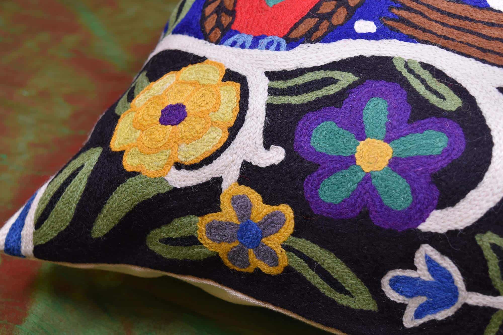 4. Hecho de 100% algodón en la parte delantera y trasera. 100% bordado de lana en la parte delantera. Bordado a mano (Garantizado) por los mejores artesanos en unidades de cabañas de aldea. Esta funda de almohada es una obra de arte, hecha a mano a la perfección. No hay dos iguales.