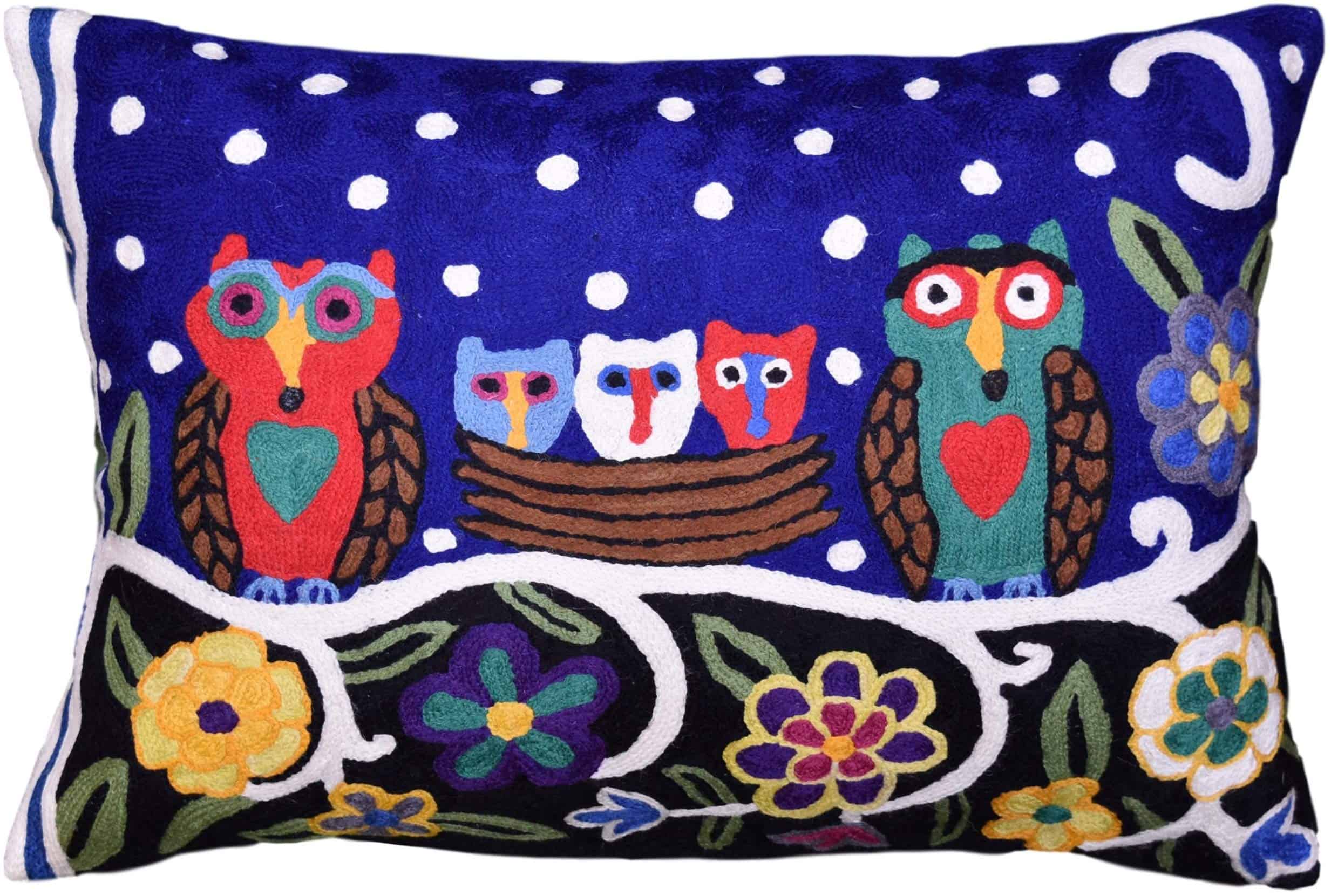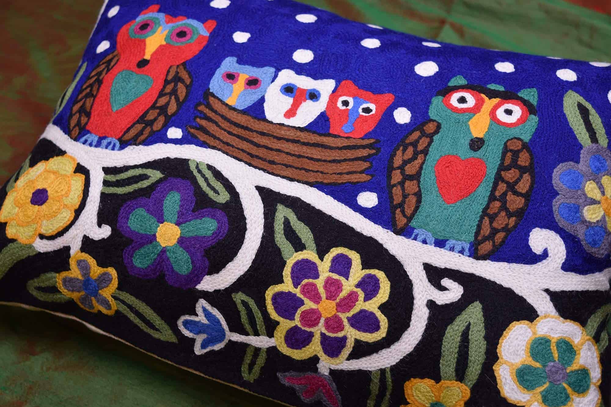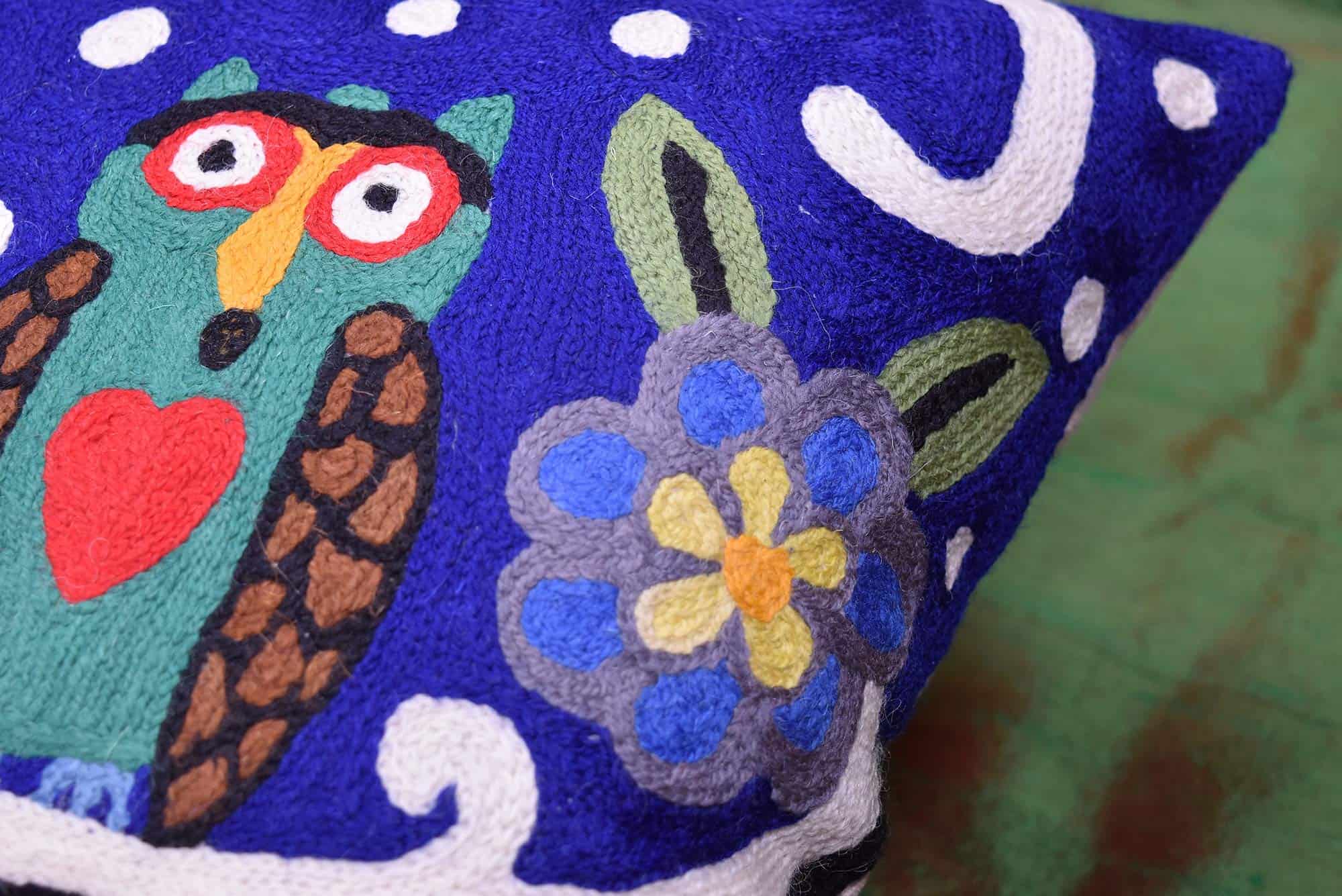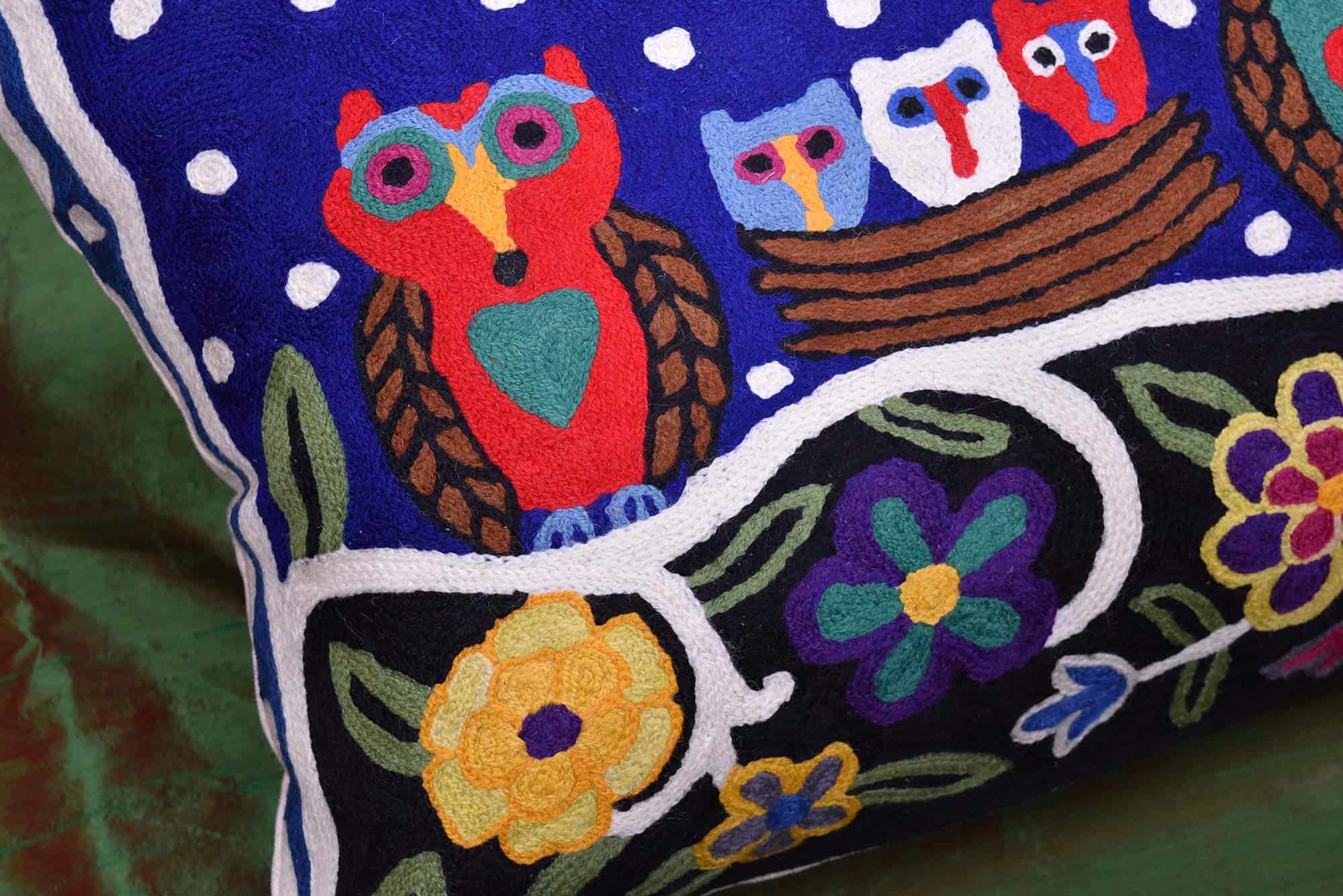 4. Hecho de 100% algodón en la parte delantera y trasera. 100% bordado de lana en la parte delantera. Bordado a mano (Garantizado) por los mejores artesanos en unidades de cabañas de aldea. Esta funda de almohada es una obra de arte, hecha a mano a la perfección. No hay dos iguales.