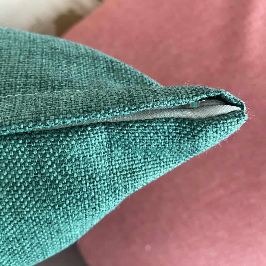 2. Alta calidad: Con tela gruesa y costuras resistentes, las fundas de cojín para sofá son duraderas, y se utiliza la misma tela tanto en el frente como en la parte trasera. Hilos blancos recorren las fundas de cojín de color sólido añadiendo una sensación texturizada.