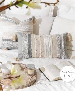 BLISSBLUSH Funda de Cojín Lumbar Gris Boho 14×24 Cojín de Cuerpo Largo de Acento Gris Moderno Decorativo Bohemio Cojín Lumbar Texturizado Tejido Para Cama ¡SÓLO la funda!