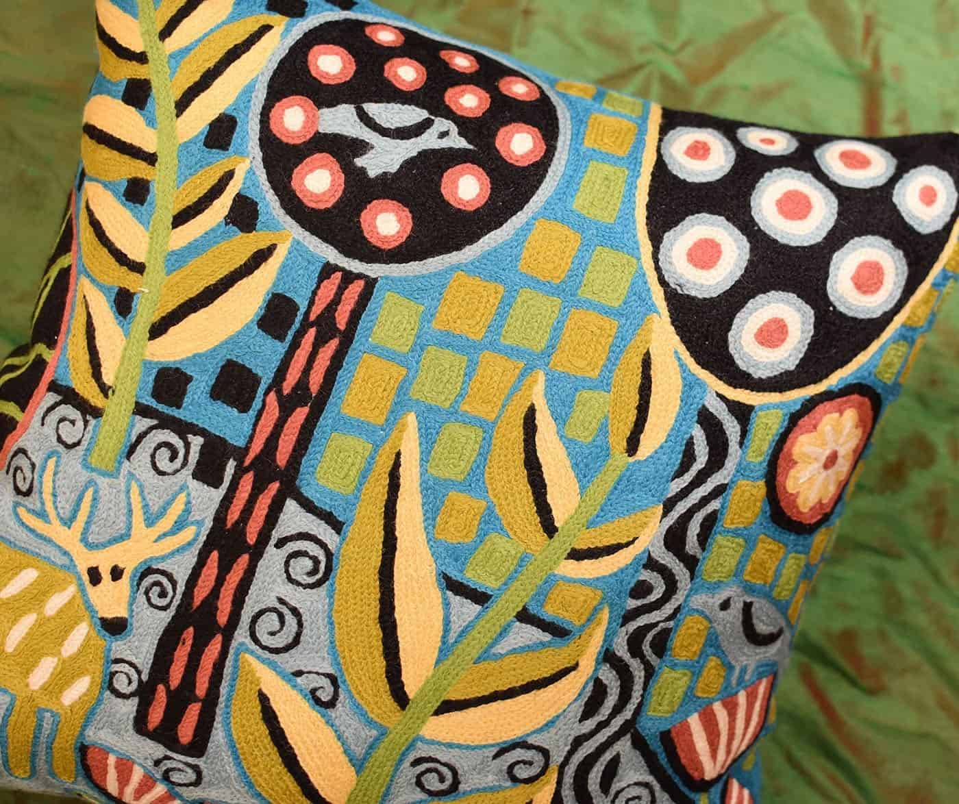 1. ¡SEA ÚNICO! AGREGUE UNA ALMOHADA ÚNICA A SU DECORACIÓN: Estas fundas de almohada de alta calidad con diseño de árbol son creadas utilizando diseños de arte moderno y convirtiéndolos en fundas de almohada mediante bordados a mano tradicionales. Esta suave almohada de lanzamiento moderna artesanal animará un hogar u oficina de estilo transicional o moderno. Diseño inspirado en las obras de la famosa artista mundial, Karla Gerard. Estas fabulosas almohadas modernas de mediados de siglo pueden usarse prácticamente en cualquier lugar para animar su decoración. 2. CALIDAD PREMIUM – BORDADO A MANO GENUINO EN TODO: Nuestras fundas de almohada abstractas de arte popular están hechas de materiales orgánicos naturales de primera calidad – 70% lana suave y 30% algodón. Frontal de bordado a mano: 100% Lana suave, Reverso: Lona de algodón 100%. Esta funda de almohada decorativa de bordado a mano es una obra de arte, hecha a mano a la perfección. Nuestras almohadas decorativas únicas están verdaderamente bordadas a mano, transpirables, suaves y cómodas, y fáciles de cuidar. 3. ANIME Y ILUMINE SU ESPACIO: Elija estas fundas de almohadas para decorar su hogar, recibirá muchos cumplidos de sus familias y amigos. Estas fundas de almohadas tribales bordadas a mano serán la adición perfecta para decorar su sofá, cama, silla, loveseat, sala de estar, dormitorio, piso, porche, exteriores, banco, oficina, etc. Suaves al tacto y nítidamente brillantes y audaces a la vista, estas almohadas tribales decorativas de lana se pueden usar con prácticamente cualquier tipo de muebles.