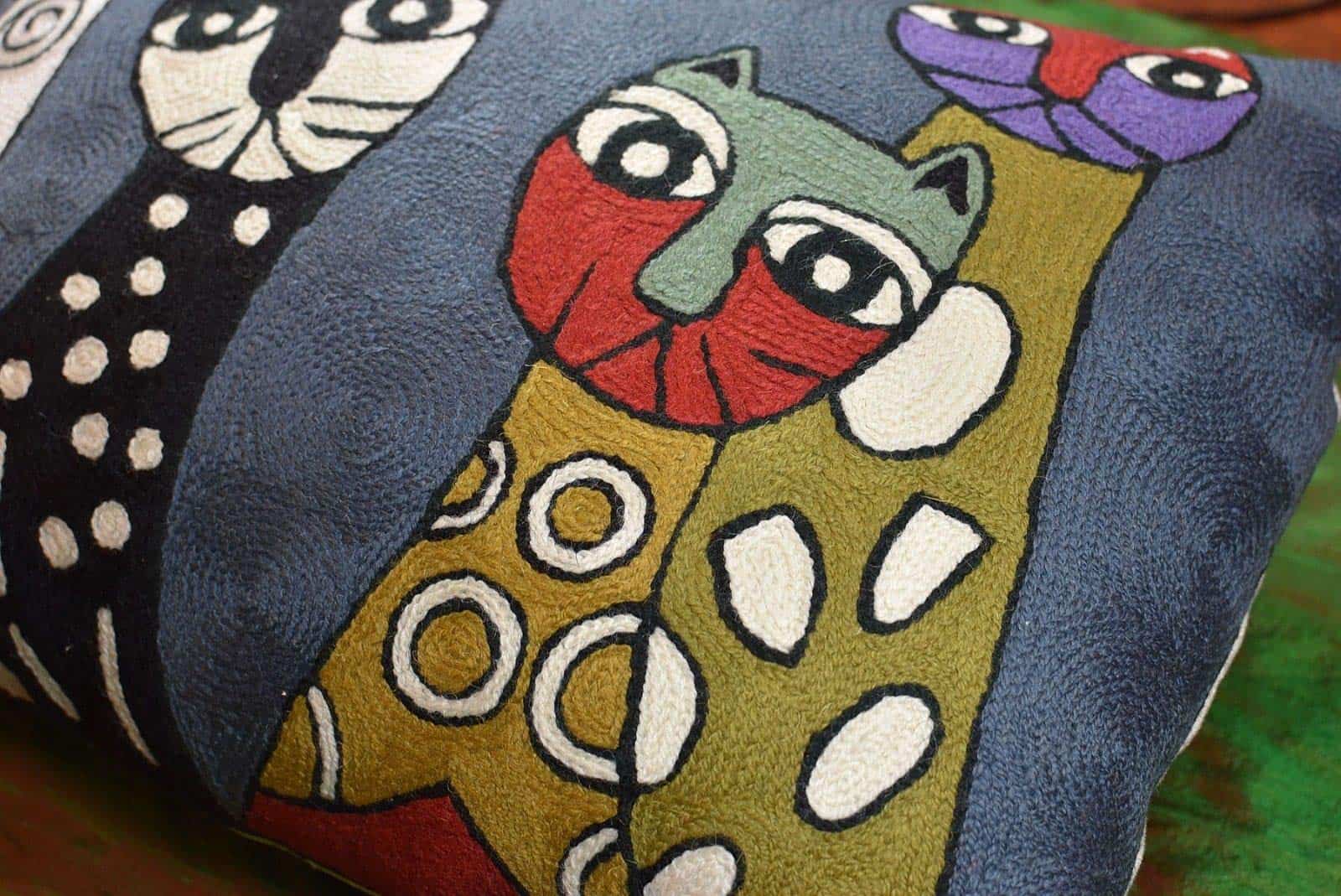 ¡CALIDAD PREMIUM! BORDADO TOTALMENTE A MANO GENUINO: Nuestras almohadas de gato con cara a mano de alta calidad están hechas de materiales orgánicos naturales de primera calidad. Bordado a mano delantero: 100% lana suave, respaldo: lienzo de algodón 100%. Esta funda de almohada decorativa con bordado de aguja de gato es una obra de arte, elaborada a la perfección. Nuestras fundas de almohadas únicas de gato están realmente bordadas a mano, transpirables, suaves y cómodas, y fáciles de cuidar. ¡DALE VIDA Y BRILLO A TU ESPACIO! Elige estas refrescantes fundas de almohada de gato únicas para decorar o darle un toque especial a tu hogar. Estas fundas de almohada de gato bordadas a mano harán una adición perfecta para decorar tu sofá, silla, cama, silla, sofá, dormitorio, porche, exteriores, oficina, etc. Suaves al tacto, nítidamente brillantes y audaces a la vista, estas modernas almohadas decorativas florales pueden usarse con prácticamente cualquier tipo de muebles para el hogar.