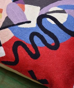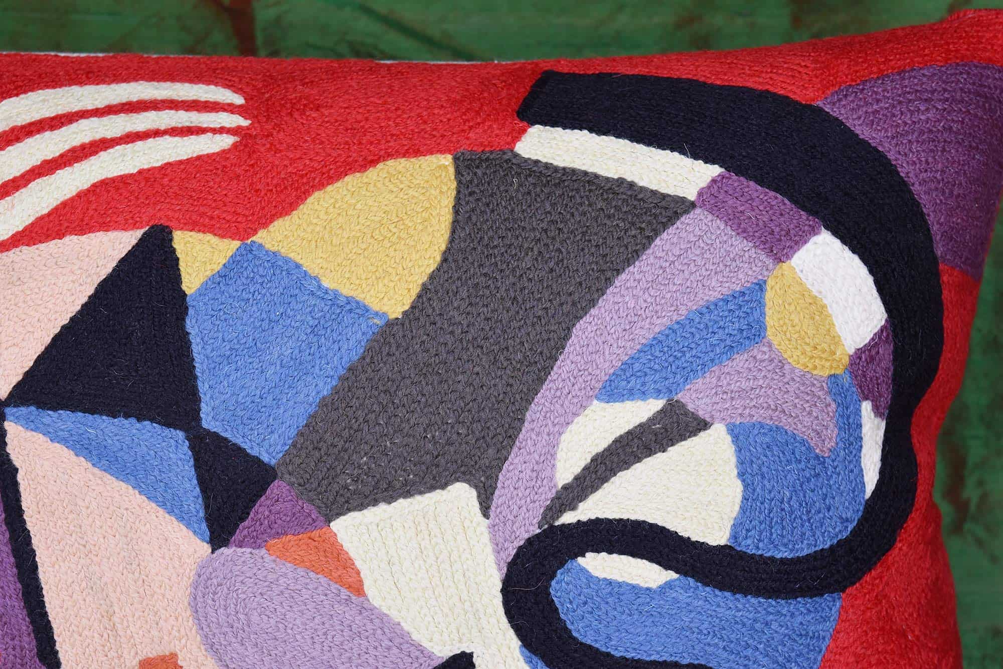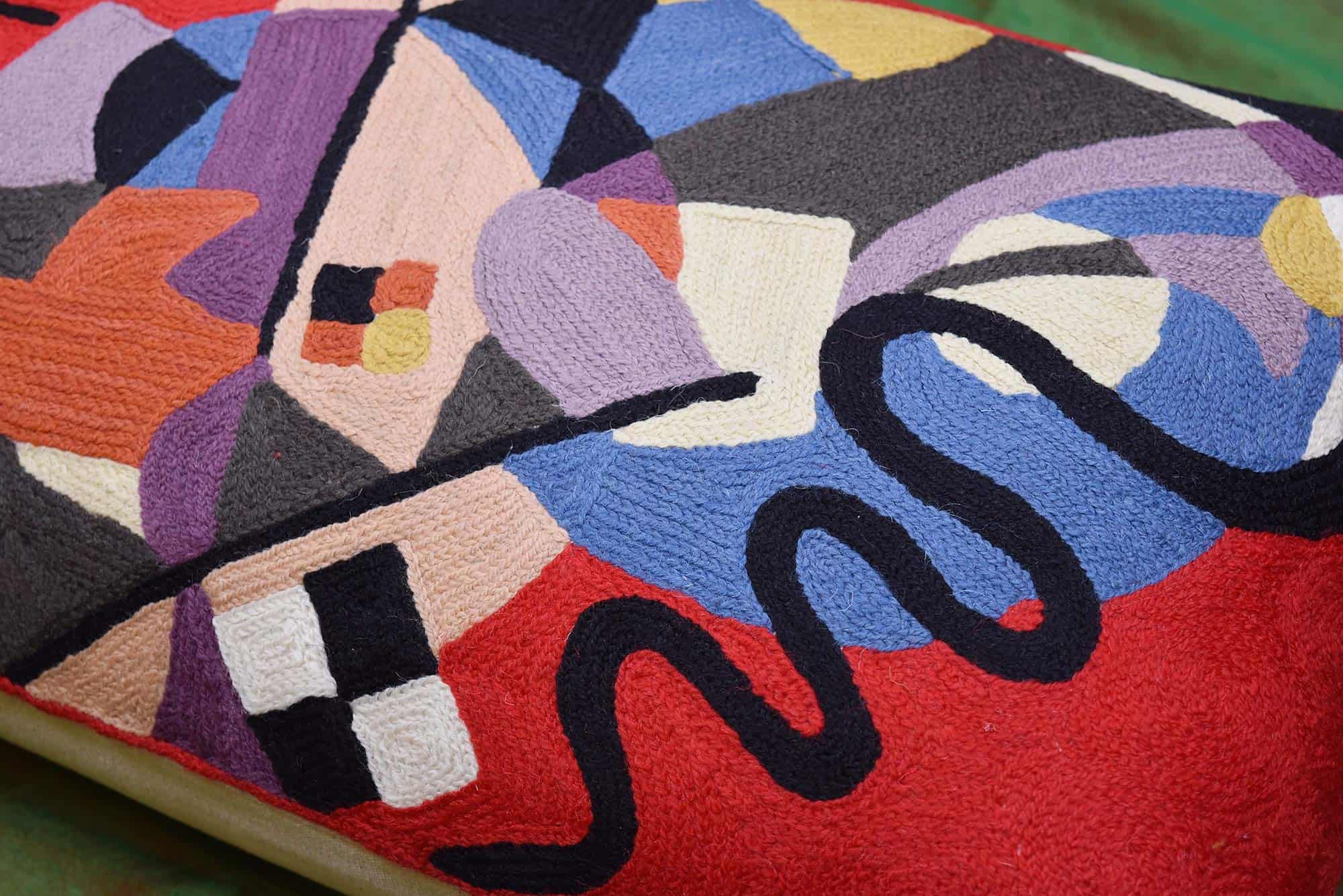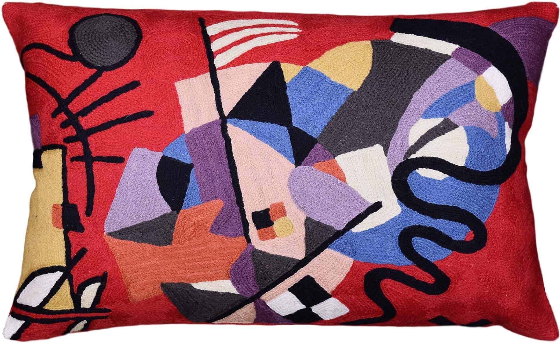 Embellezca su espacio con esta hermosa funda de cojín lumbar rojo abstracto de la colección Kashmir Designs. Con un diseño moderno de lazo rojo de flujo y detalles de bordado a mano, este cojín aportará un toque contemporáneo a su hogar. Hecho con lana de alta calidad y con dimensiones de 14×20, es perfecto para sofás, sillas o camas.