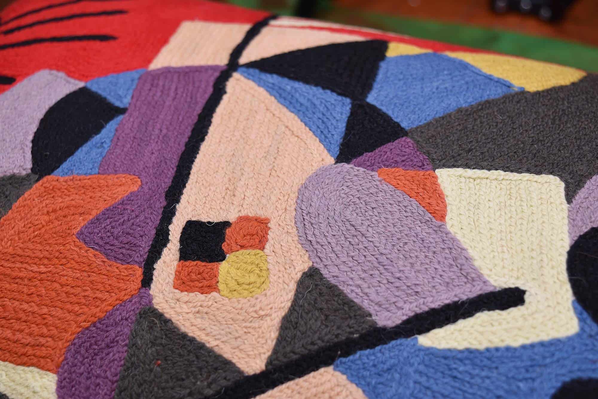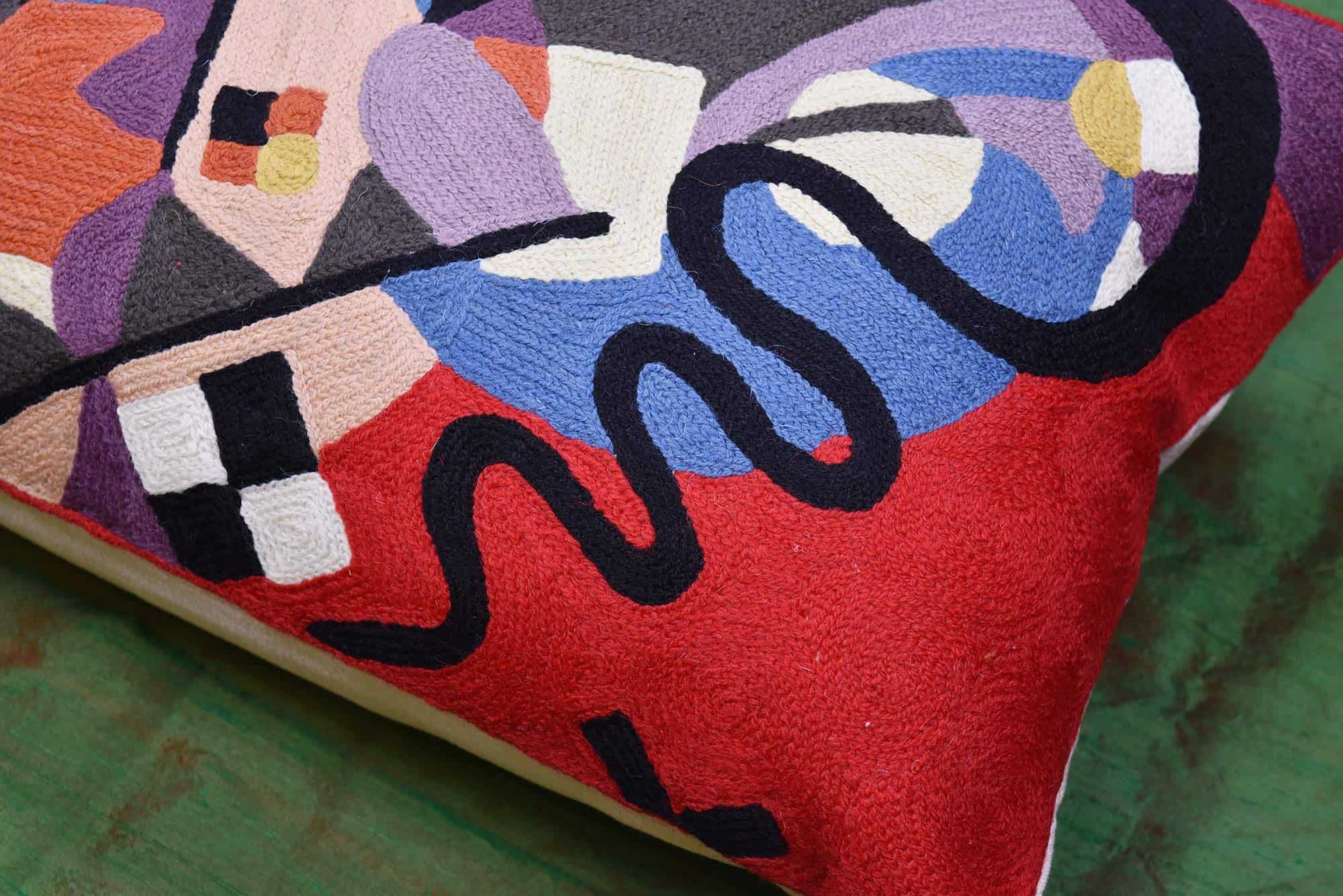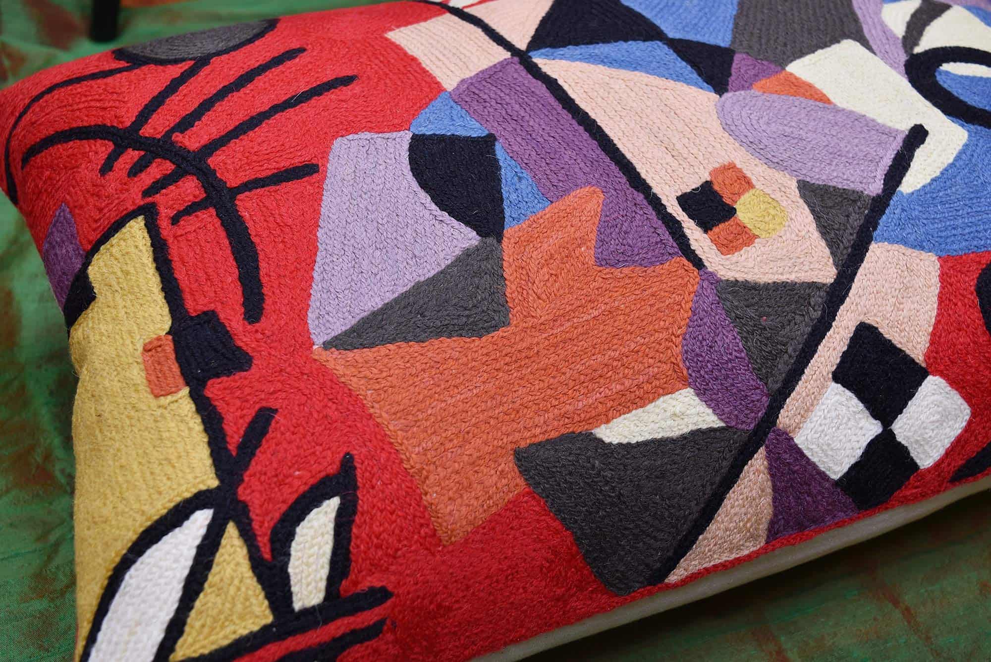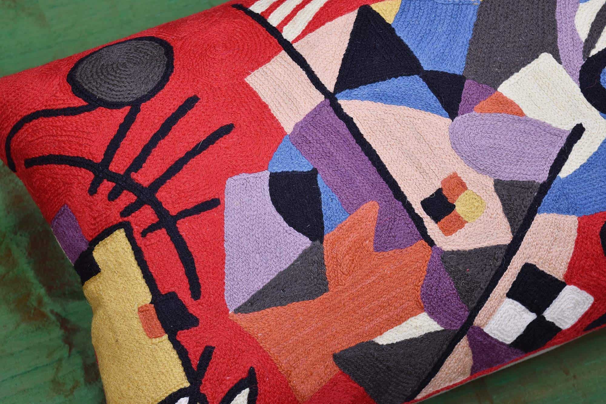 Embellezca su espacio con esta hermosa funda de cojín lumbar rojo abstracto de la colección Kashmir Designs. Con un diseño moderno de lazo rojo de flujo y detalles de bordado a mano, este cojín aportará un toque contemporáneo a su hogar. Hecho con lana de alta calidad y con dimensiones de 14×20, es perfecto para sofás, sillas o camas.