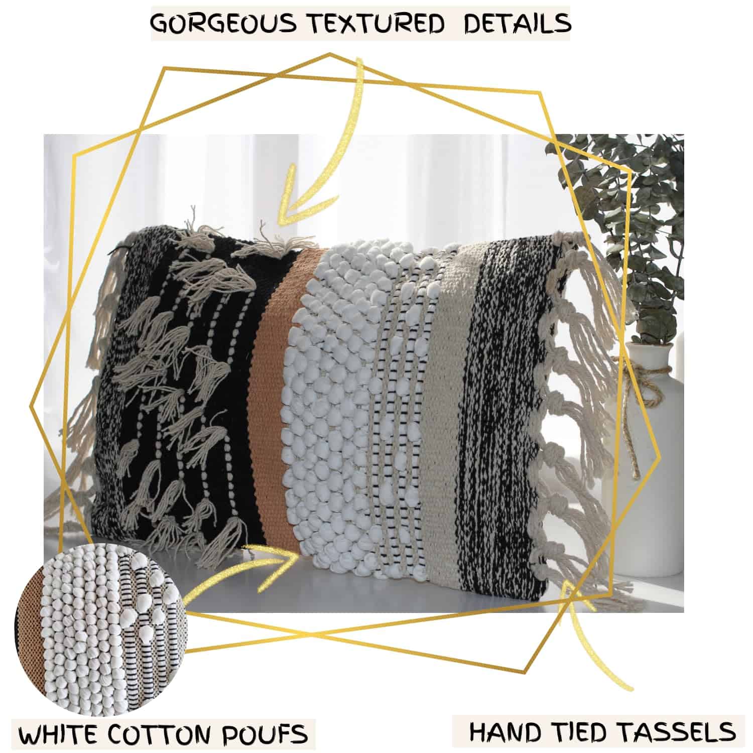 Funda de cojín lumbar texturizada decorativa Boho-Chic de