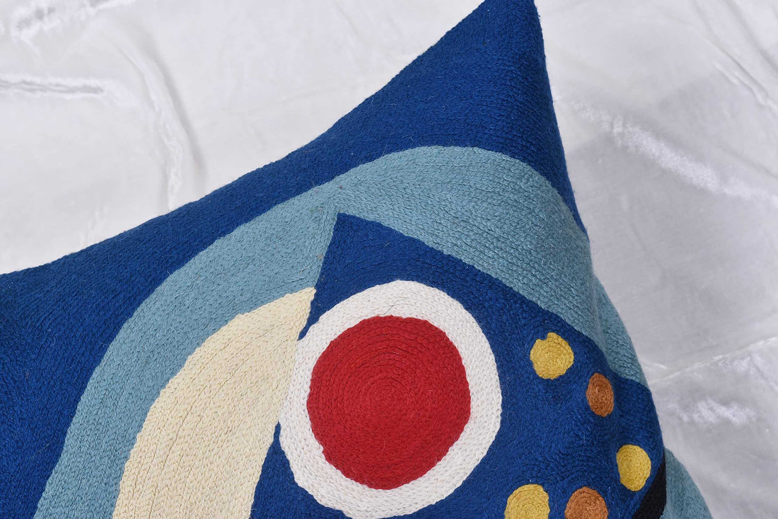 Este cojín moderno de diseño exclusivo está inspirado en la obra del famoso artista Kandinsky. Confeccionada con lana de alta calidad, esta funda de cojín es perfecta para añadir un toque de estilo contemporáneo a cualquier espacio. El cojín de color azul abstracto es ideal tanto para uso en interiores como exteriores, gracias a su resistencia y durabilidad. Añade un toque de arte moderno a tus muebles con este cojín único.