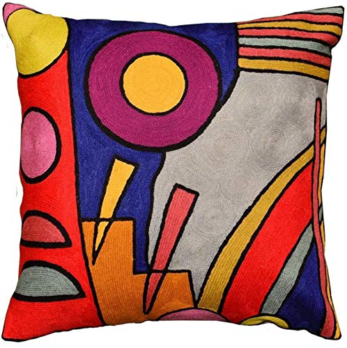 1. FUNDA DE COJÍN MODERNA – BORDADO A MANO: Estas coloridas fundas de cojines decorativos modernos están inspiradas en el arte de Kandinsky y son bordadas a mano en suave lana a la perfección, puntada por puntada, por los mejores artesanos, creando una extraordinaria almohada abstracta moderna para la decoración de tu hogar. Una vista en detalle de esta almohada de acento completamente moderna te permite ver el asombroso bordado a mano de fina cadeneta. Una almohada de sofá moderna perfecta para tu sofá contemporáneo. 2. FABULOSAS PUNTADAS DE CADENA QUE LLAMAN LA ATENCIÓN: Esta colorida almohada de acento suzani completamente moderna bordada a mano animará una casa u oficina de estilo transicional o moderno. Esta funda de almohada moderna para exteriores daría vida a una vieja almohada o adornaría una nueva forma de almohada. Desde el patio hasta la sala de estar, desde el estudio hasta la habitación de los niños, estas fabulosas y llamativas almohadas de arte abstracto completamente modernas se pueden usar prácticamente en cualquier lugar para refrescar la decoración de tu hogar. 3. MATERIALES NATURALES DE PRIMERA CALIDAD: Nuestras suaves almohadas de acento completamente modernas están hechas de materiales orgánicos naturales premium. Frente – Bordado a mano: 100% Lana Suave, Reverso: Lona de Algodón 100%. Esta almohada de acento bordada a mano puede usarse como almohada de mediados de siglo moderna o como funda de almohada de granja moderna. Nuestras almohadas abstractas inspiradas en Kandinsky son verdaderamente bordadas a mano, transpirables, suaves y cómodas, y fáciles de cuidar. 4. AMPLIAS APLICACIONES: Elige estas fundas de cojín modernas para complementar o dar vida a tu hogar. Estás seguro de recibir muchos cumplidos de tus familias y amigos. Estas fundas de almohadas abstractas bordadas a mano serán una adición perfecta para decorar tu sofá, sofá, cama, silla, settee, sala de estar, dormitorio, porche, exteriores, oficina, etc. Suaves al tacto, nítidamente brillantes y audaces a la vista, estas almohadas decorativas modernas se pueden usar con prácticamente cualquier tipo de mobiliario para el hogar.