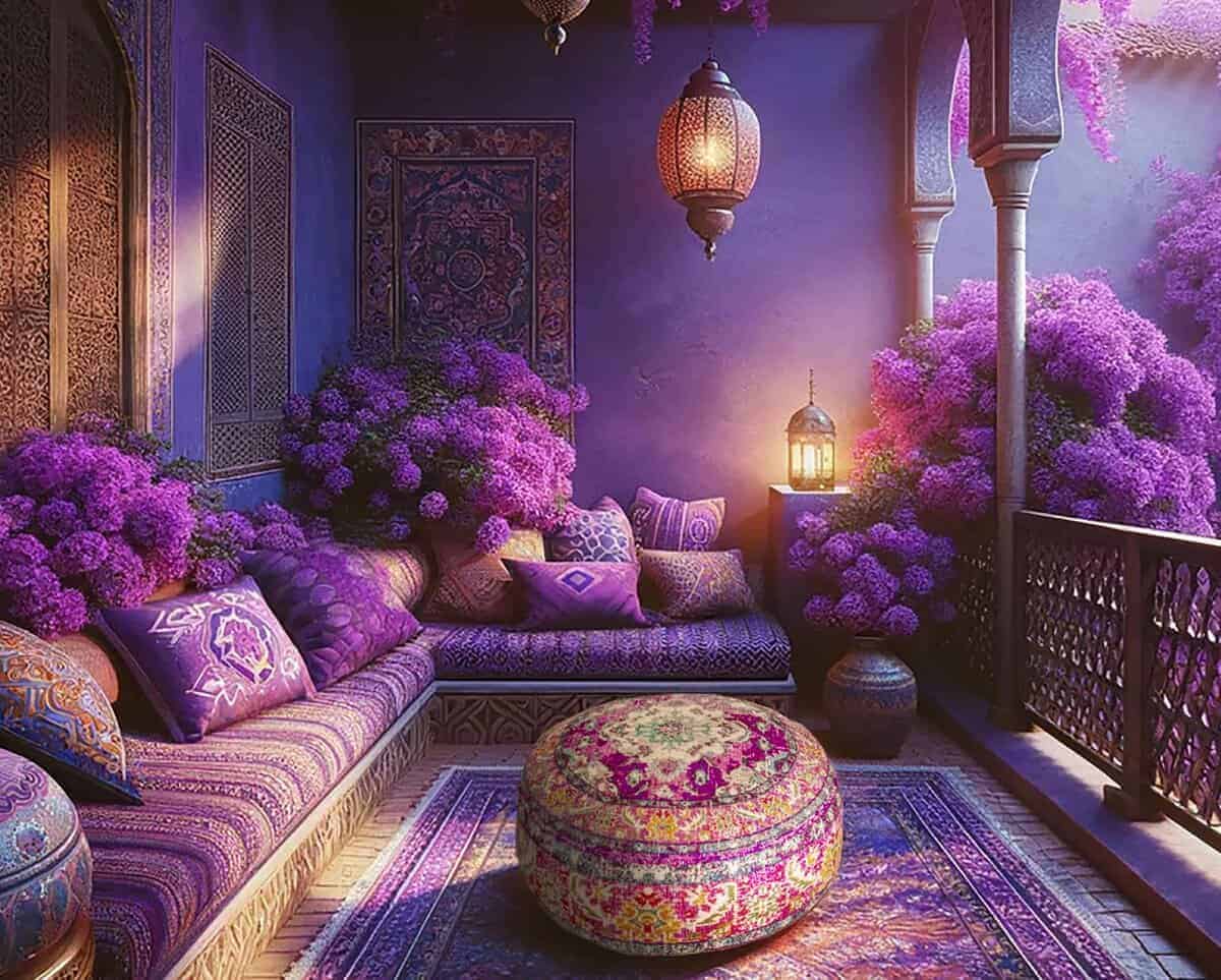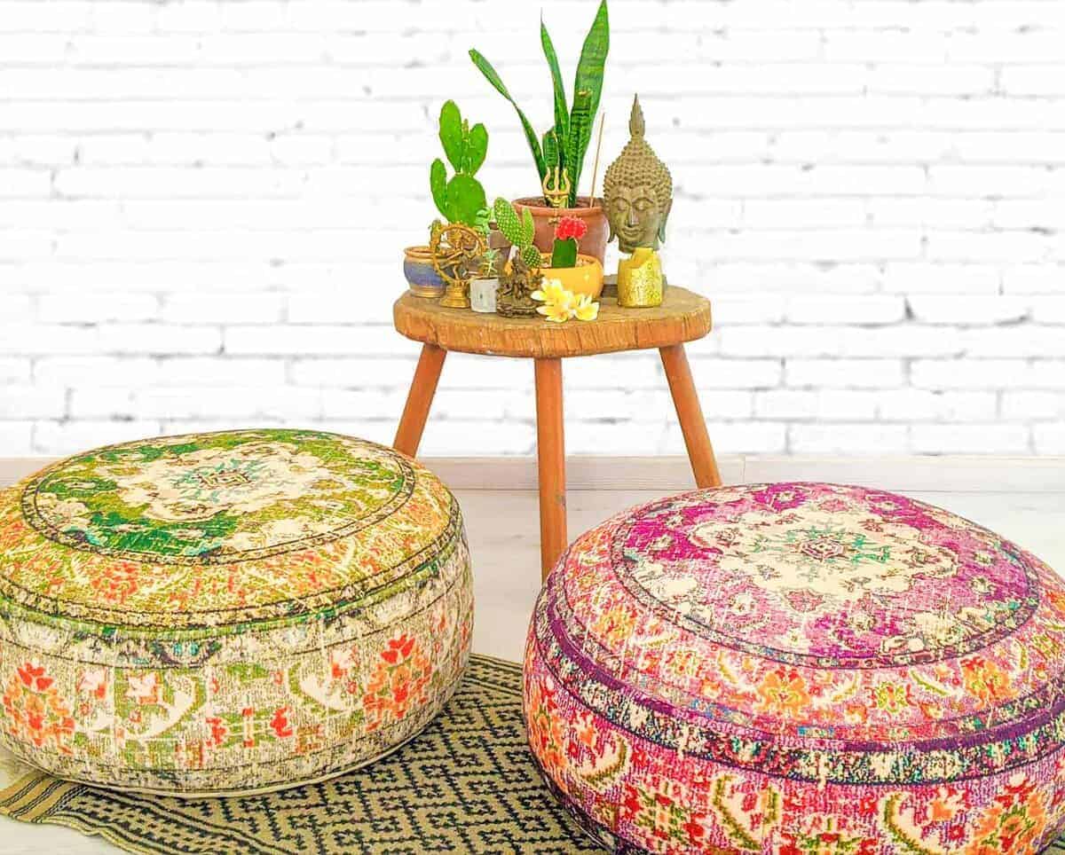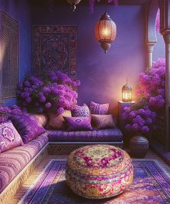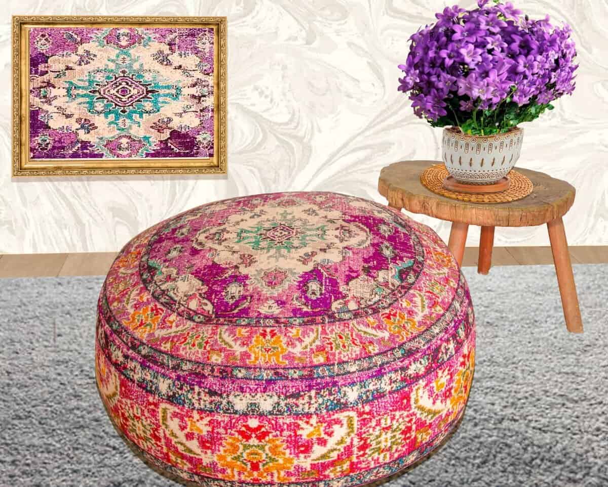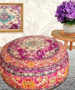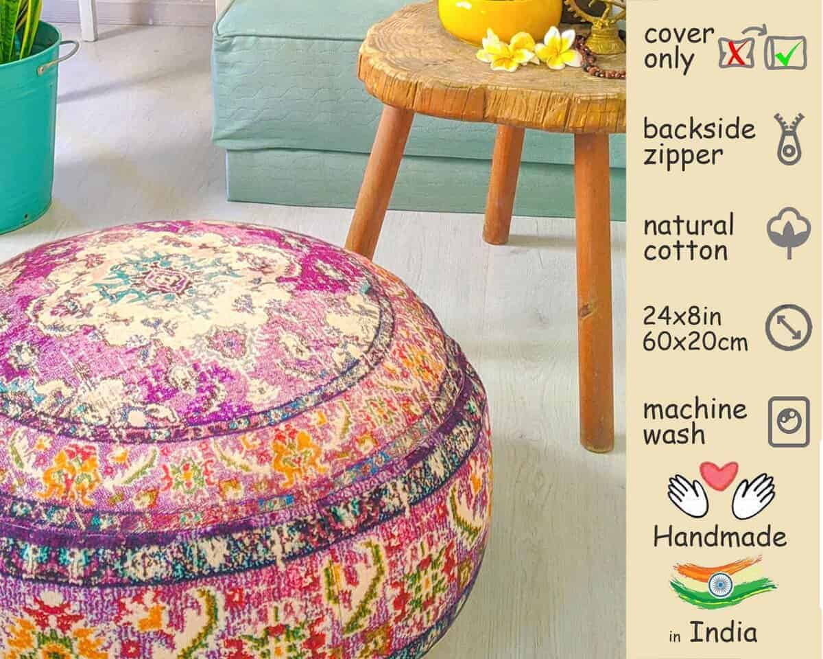 Funda de cojín para piso Mandala Life ART morada redonda