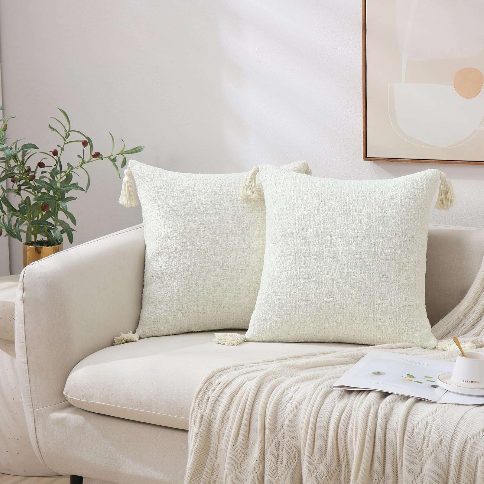 1. Material – Las fundas de cojín están hechas de poliéster de alta calidad, tela gruesa y duradera con costuras ordenadas y firmes que aseguran un uso a largo plazo. 2. Incluye – El juego de fundas de cojín incluye 2 piezas, con dimensiones de 18×18 pulgadas cada una. 3. Diseños – Tela de alta calidad diseñada con patrones tejidos crea una sensación suave y estética visual máxima. Los diseños tejidos con borlas hacen que las fundas de cojín sean muy lindas y vivas. 4. Tipo de cierre – La cremallera oculta suave facilita colocar o sacar la almohada. Ayuda a que las fundas de cojín envuelvan las almohadas perfectamente. 5. Decoración perfecta – Una gran decoración para varias habitaciones, sofá, cama, casas rodantes, decoración del hogar, etc. Brinda comodidad y apoyo al sentarse o acostarse. Adecuado para todas las estaciones. Un buen regalo para amigos o familiares. 6. Instrucciones de cuidado – Fácil cuidado, lavable a máquina, ciclo suave y secado a baja temperatura. No use lejía. Si tiene mascotas, las fundas de cojín lavables y duraderas son una buena elección.
