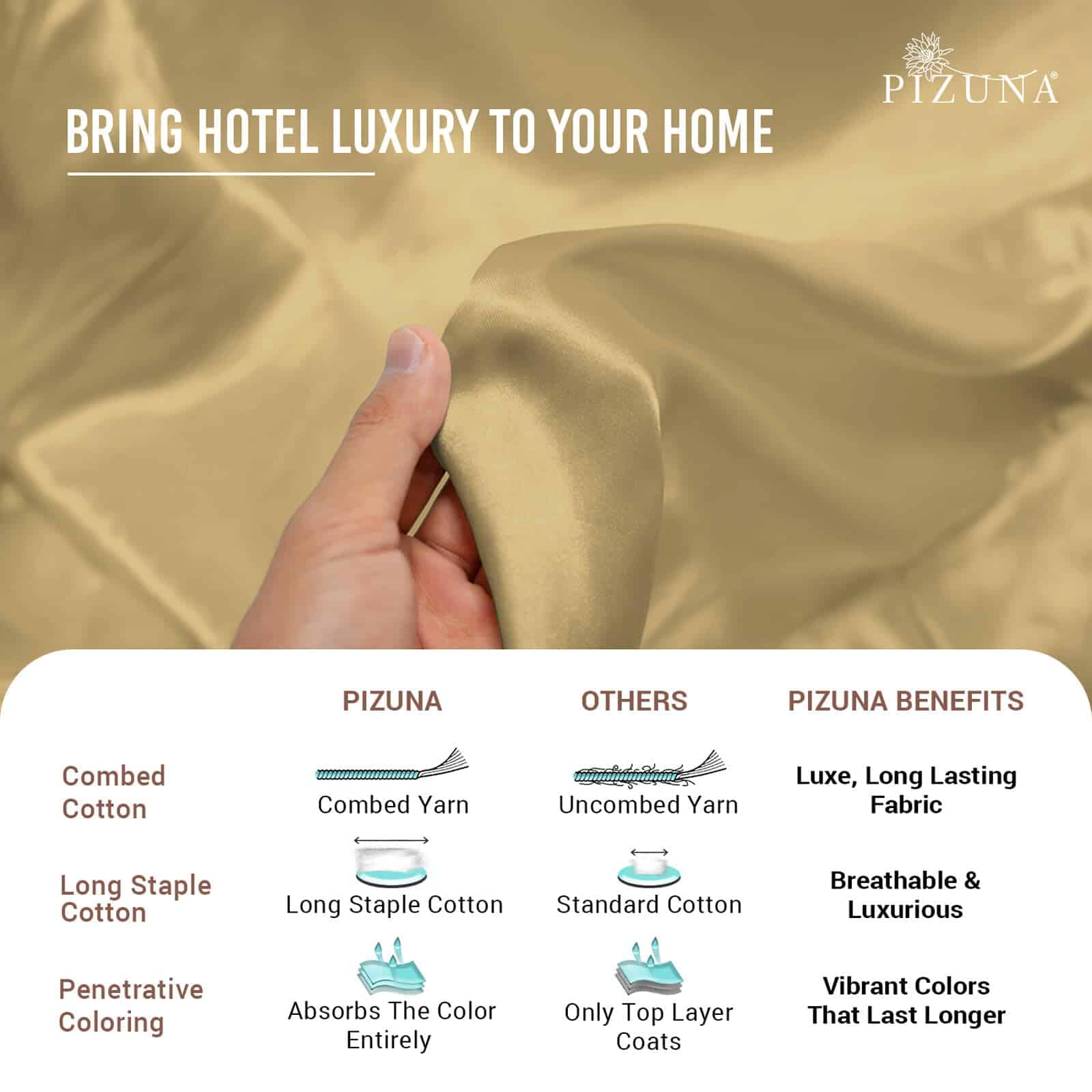 Funda de Edredón 100% Algodón Puro Tamaño Completo Tan, Lujoso 400 Hilos de Algodón de Largo Recorrido Funda de Edredón de Satén, Cierre de Botones (Juego de Funda de Edredón de Algodón Peinado) – Fresco, Transpirable y Suave: Hecho de 100% Algodón Peinado de Largo Recorrido con Tejido de Satén, esta funda de edredón tamaño completo de 400 hilos con su textura ligera está hecha con hilos especialmente compactados. El mínimo procesamiento artificial hace que esta funda de edredón sea suave en todo tipo de pieles, evita los sudores nocturnos, absorbe la humedad y regula la temperatura corporal para dormir fresco mientras mantiene el elegante aspecto hotelero. – Lazos de Ajuste Inteligentes: El cierre con botones ocultos y 4 lazos en las esquinas brindan un ajuste seguro e inteligente, evitando que el edredón se amontone en el interior. El juego incluye 1 funda de edredón (84 x 88 ) y 2 fundas de almohada con elegantes franjas y práctico cierre de sobre (20 x 26 ). – 100% Algodón Peinado Mercerizado Puro y Natural: Con la fina técnica de hilado de Pizuna, esta funda de edredón tamaño completo de algodón peinado de 400 hilos presenta un tejido de satén de una sola ligadura (4 arriba-1 abajo). El uso de algodón peinado mercerizado hace que este juego de funda de edredón sea suave y resistente. La ropa de cama de algodón puro y natural se arruga, pero es distintivamente más fresca y transpirable. Además, se suaviza y las arrugas se reducen con cada lavado. – Estándar de Calidad Pizuna: Los productos de Pizuna son individualmente confeccionados, medidos y revisados (pieza por pieza) por nuestro equipo de garantía de calidad. El tejido de la funda de edredón tamaño completo tiene la certificación OEKO-TEX & AZO-Free (2024), libre de sustancias sintéticas y respetuoso con el planeta, lo que lo hace reconfortante incluso para la piel más delicada. – Indulgencia Responsable: Esta funda de edredón de algodón es conforme a BSCI, socialmente responsable y respetuosa con el medio ambiente. El uso de materiales reciclados para el embalaje puede añadir un olor desagradable que desaparece después del primer lavado en agua tibia. Hecho con tintes resistentes a la decoloración, se puede lavar a máquina en ciclo suave, secar en secadora a baja temperatura. El uso de blanqueador puede afectar los colores. – Diseñado para un Mejor Sueño: Nuestros expertos en sueño internos estudian el comportamiento y los patrones de sueño del usuario, lo que resulta en una mejora del producto y un embalaje compacto. Disponible a nivel mundial en múltiples colores y tamaños, convierte esta lujosa funda de edredón tamaño completo en la opción de regalo perfecta para tus seres queridos. – Pizuna se Preocupa: Miles de familias felices y medios de comunicación han alabado nuestras fundas de edredón. Sin embargo, si no estás satisfecho con el producto, puedes devolverlo dentro de los 30 días según la política, más allá de eso, nuestro equipo de atención al cliente estará allí para ayudarte también.