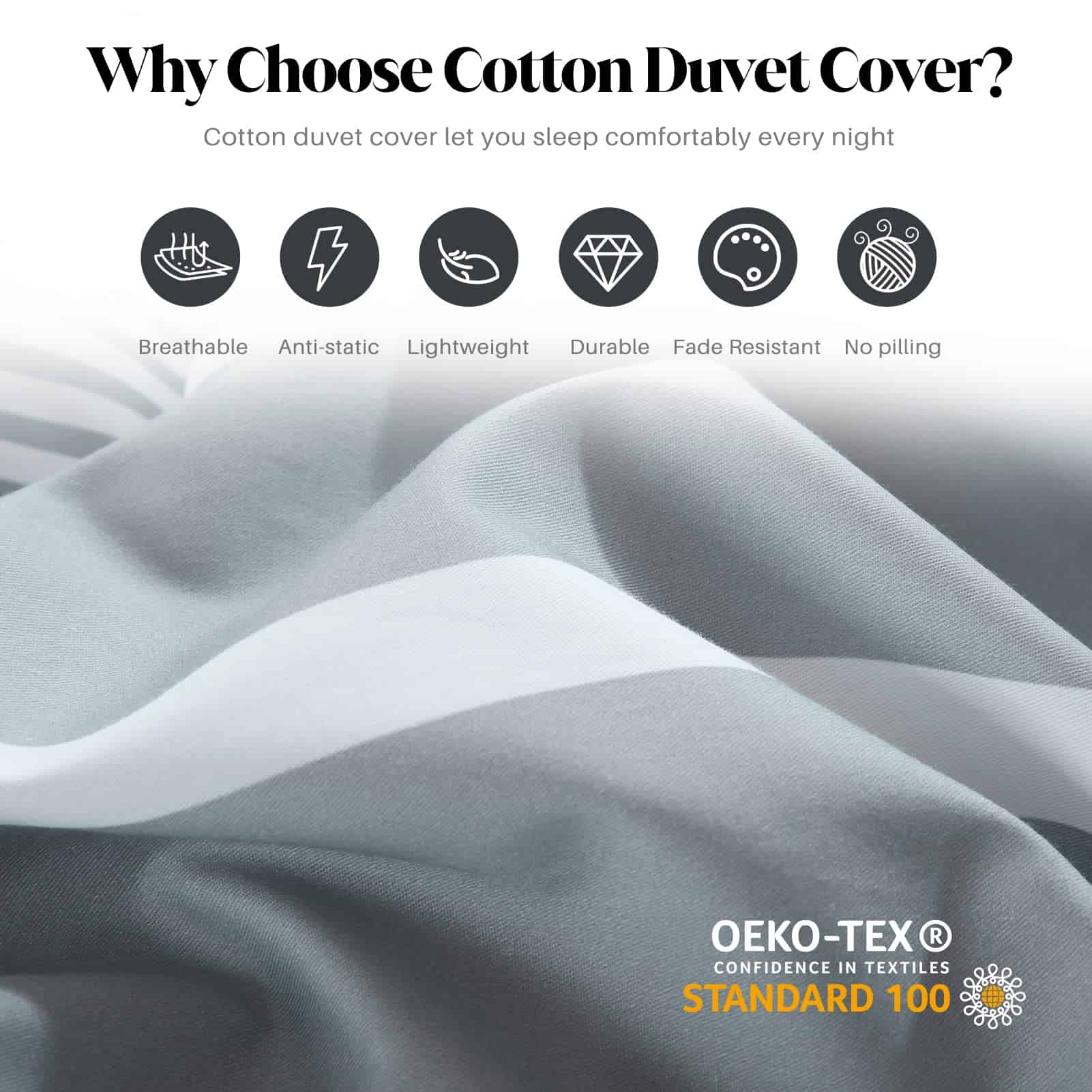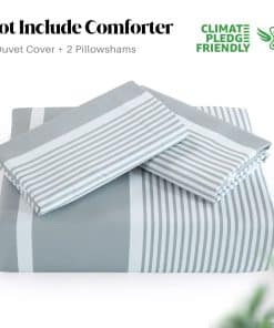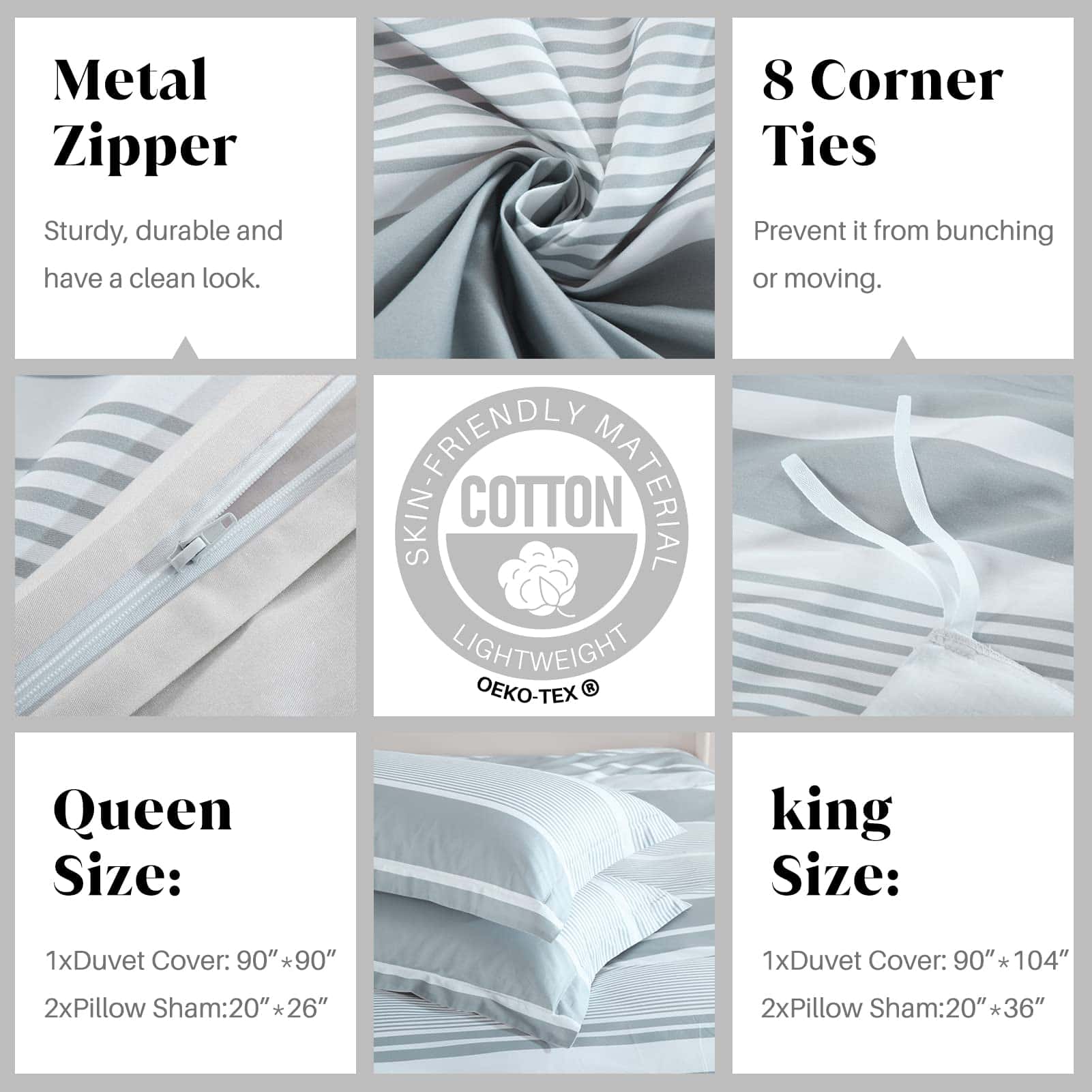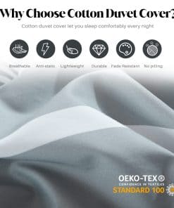 Nuestra funda de edredón gris está hecha de 100% algodón de 400 hilos, que es anti-alérgico, no estático y duradero, con certificación OEKO-TEX Standard 100 para garantizar su seguridad. El juego de funda de edredón también cuenta con 8 lazos en las esquinas para mantener el edredón en su lugar y cierre de cremallera oculta para facilitar la colocación. Disponible en tamaño king (104″x 90″) con 2 fundas de almohada (20″x 36″). Lavable a máquina y servicio al cliente garantizado.