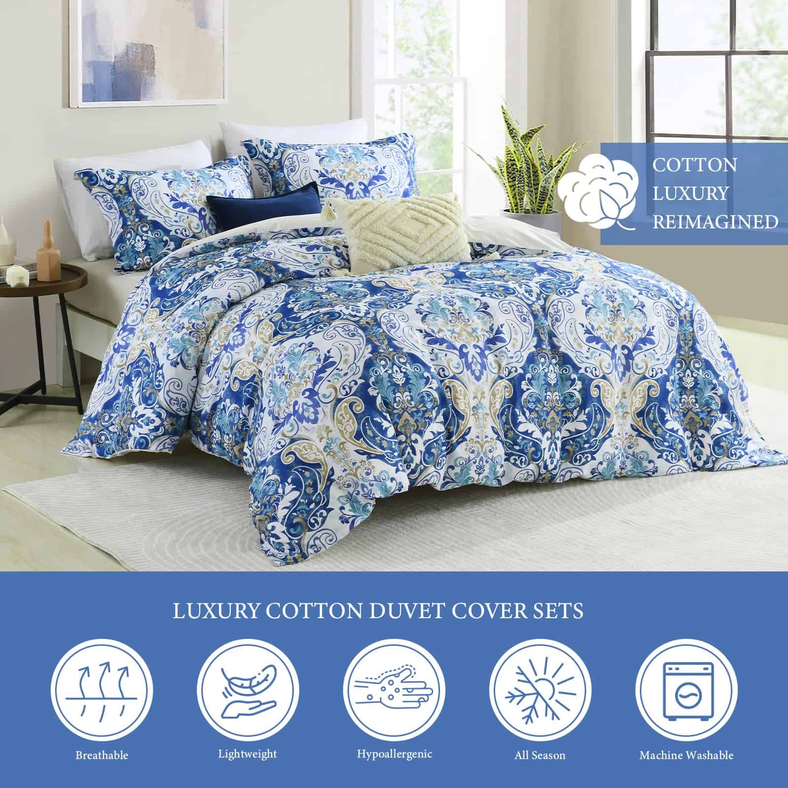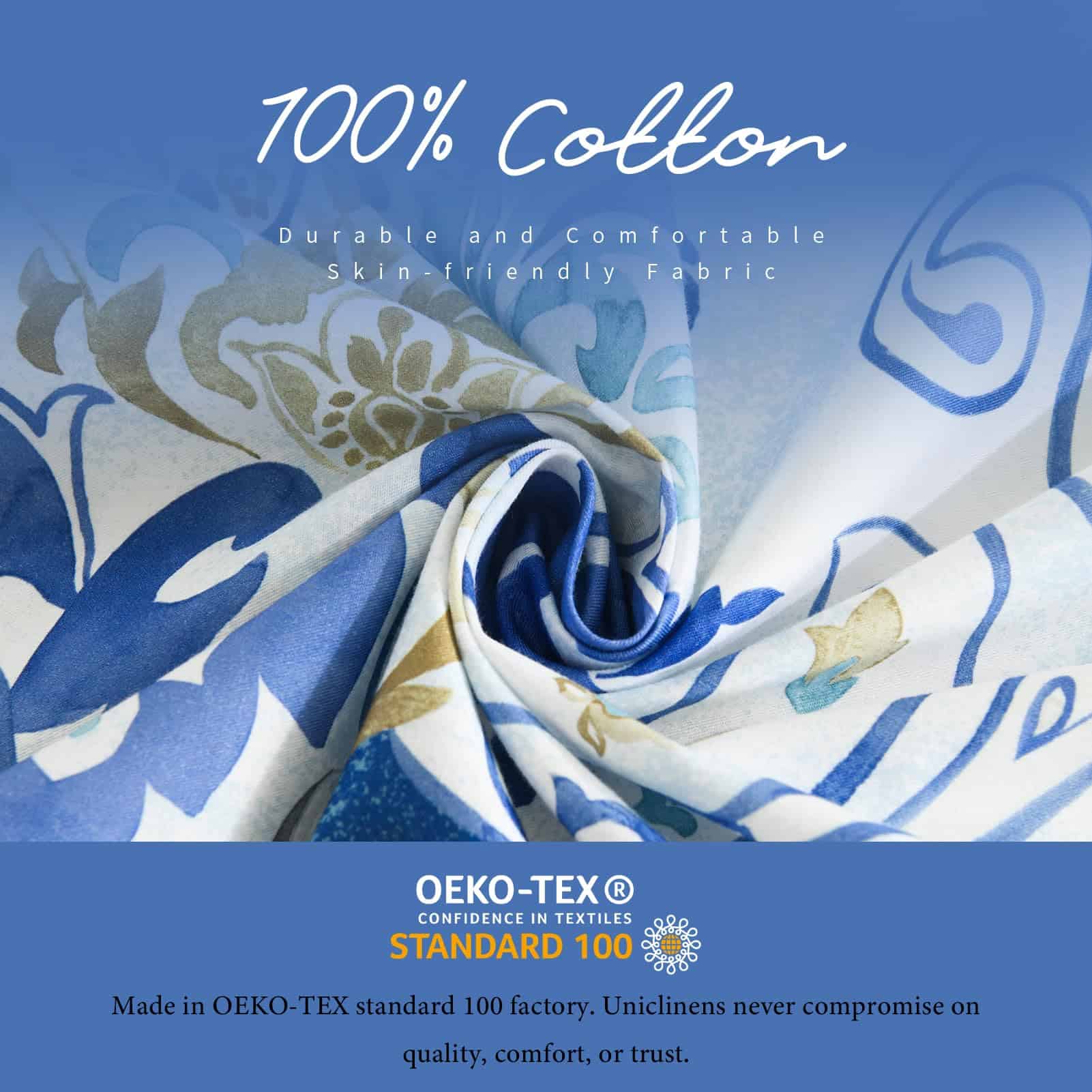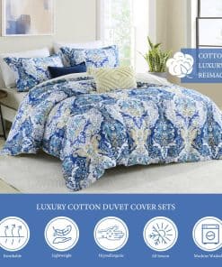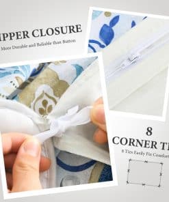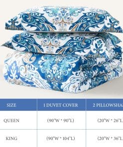Este producto de funda de edredón tamaño queen está hecho de tela 100% algodón que es súper suave, antiestática y resistente a la decoloración. Es una buena opción para personas con constitución alérgica o que tienden a sudar más al dormir. Nuestra funda de edredón de algodón percal es una opción para todas las estaciones porque es delgada, transpirable y suave al tacto. Adoptamos este audaz diseño de damasco azul pintado, diseñado para aquellos apasionados por la belleza retro. Despertarás cada mañana sintiéndote esperanzado y lleno de energía. El cierre de cremallera oculto facilita la inserción de tu edredón en la funda y lo mantiene seguro sin moverse ni agruparse. Además, la funda de edredón cuenta con 8 lazos que mantienen el edredón en su lugar. Lavable a máquina en agua fría, ciclo suave, secar a baja temperatura, no usar lejía. Si tienes alguna pregunta, no dudes en contactarnos. Nos esforzamos por brindar el mejor servicio al cliente.
