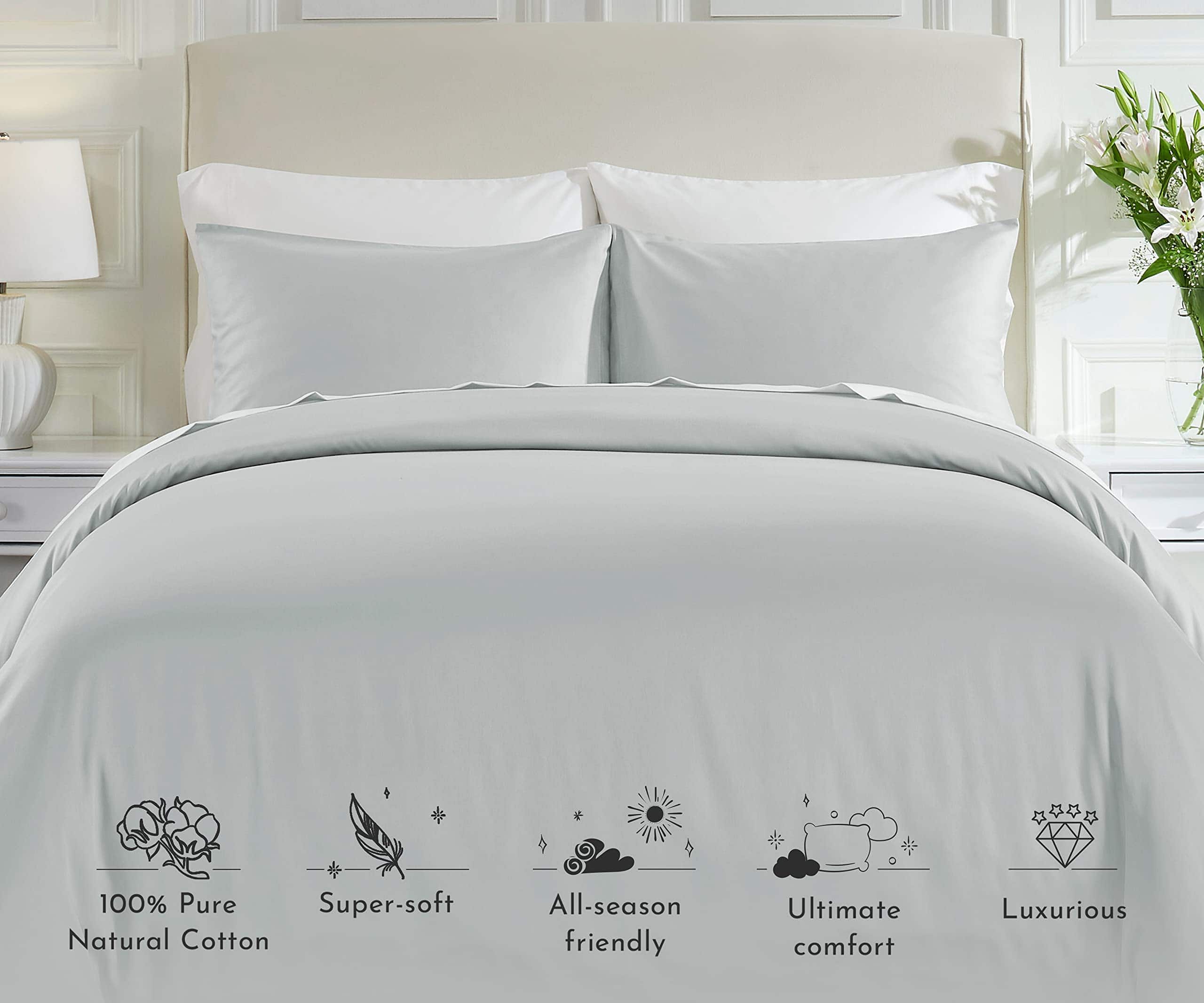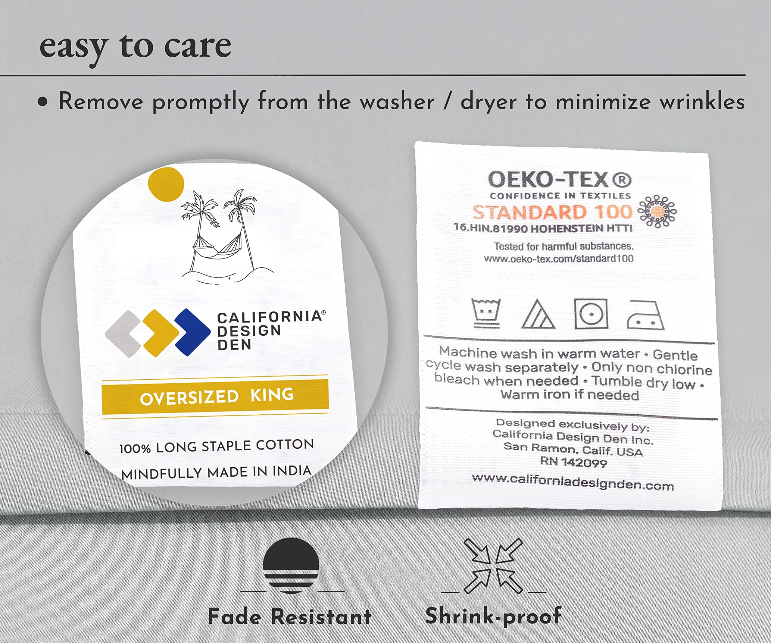 Funda de edredón California Design Den en algodón 100% natural con 400 hilos. Esta funda de edredón king extra grande es suave y transpirable, ideal para una noche de sueño reparador. Con cierre de botón y lazos en las esquinas para mantener el edredón en su lugar. Fácil de lavar y seca en casa. La tela de algodón sateen tiene un hermoso brillo y apenas arrugas, dando a tu cama un aspecto de hotel de lujo. La funda de edredón se produce éticamente en nuestra fábrica familiar en India y no utilizamos plástico en el embalaje. Comprometidos con la calidad, donamos una parte de nuestras ventas a organizaciones benéficas locales. ¡Compra con confianza y disfruta de noches de sueño tranquilas y frescas en nuestra funda de edredón de algodón 100% natural!