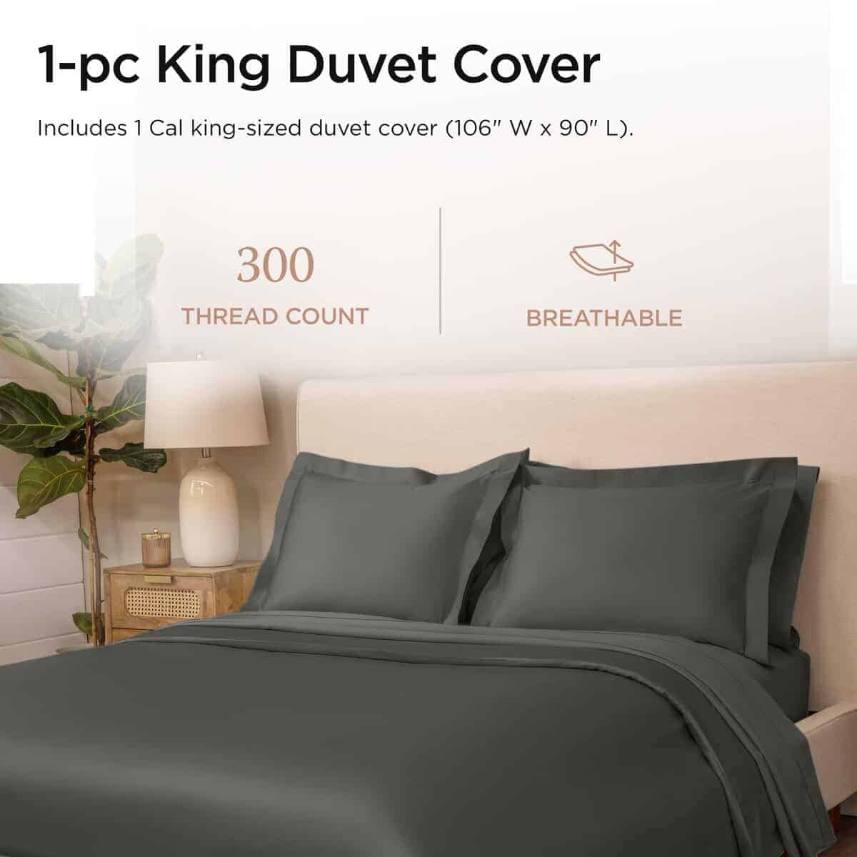 Funda de Edredón de Algodón Gris Oscuro Tamaño King