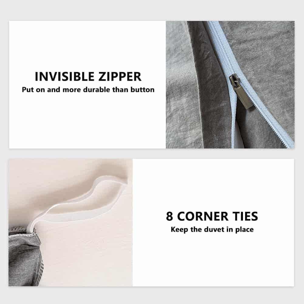 Funda de Edredón de Algodón Lavado 100%, Sensación de Lino,