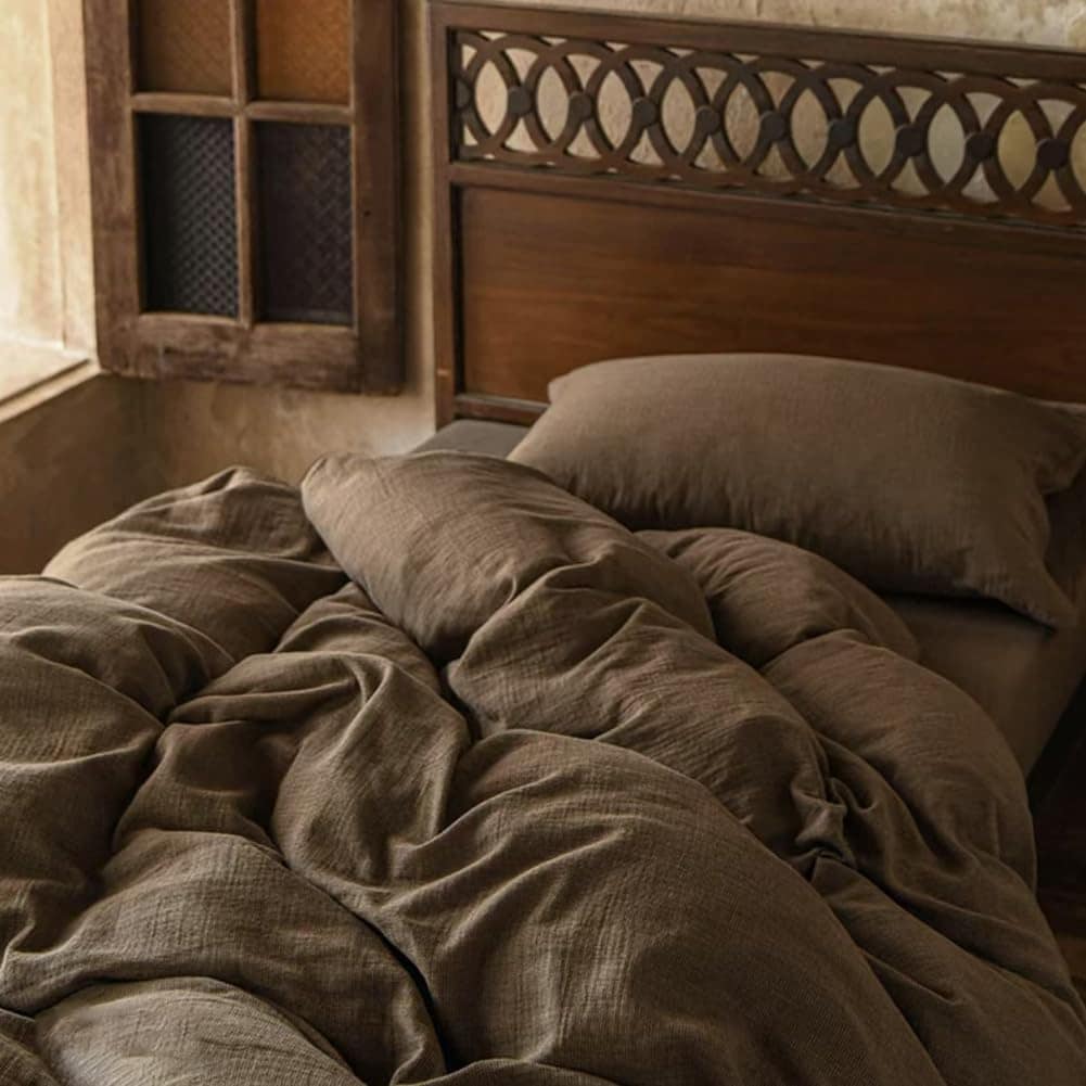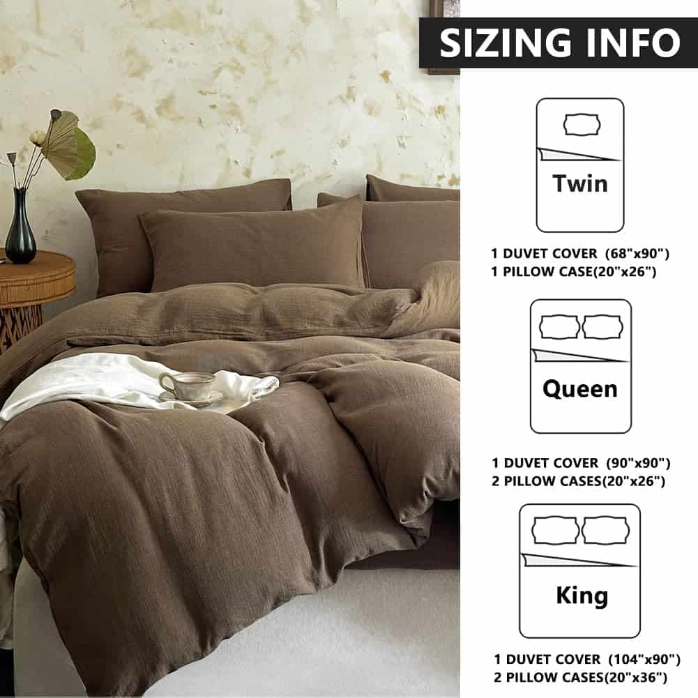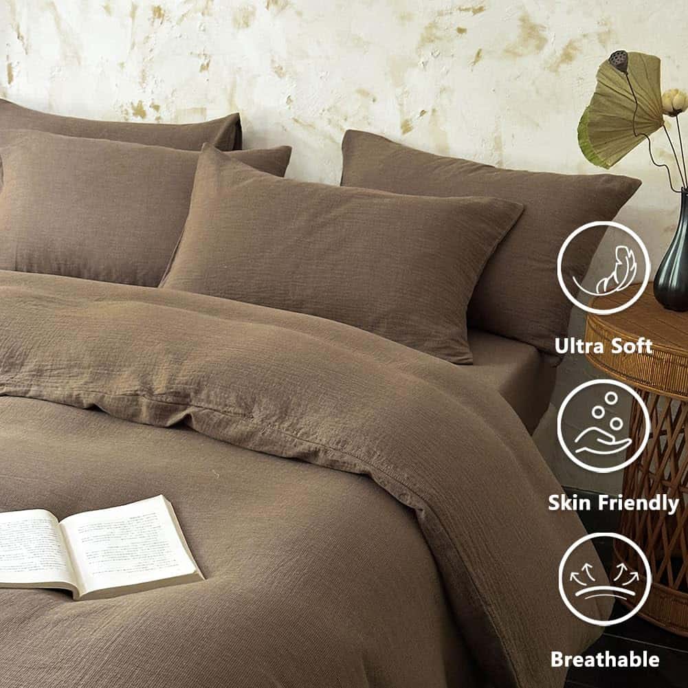 Crafted from 100% pure cotton, this 2-layer gauze duvet cover set offers exceptional breathability and a luxuriously soft touch, ensuring a restful sleep experience. Designed with a lightweight muslin fabric, this duvet cover set excels in moisture-wicking, keeping you sweat-free and comfortable throughout the year. The naturally relaxed texture introduces a laid-back elegance that complements any interior decor with its chic crinkle design. This queen size muslin duvet cover set ensures it meets the highest standards for safety, free from harmful chemicals, and safe for human use. Machine washable for your convenience, this muslin duvet cover set resists fading, shrinking, and pilling. Simply wash in cold water on gentle cycles and tumble dry low to maintain its like-new condition. This queen size set includes 1 duvet cover (90″ x 90″) and 2 envelope pillowcases (20″ x 26″). Note: No comforter insert is included. Enjoy a 6-months satisfaction guarantee with dedicated 24/7 customer service support, ensuring all your inquiries are promptly addressed within 24 hours.