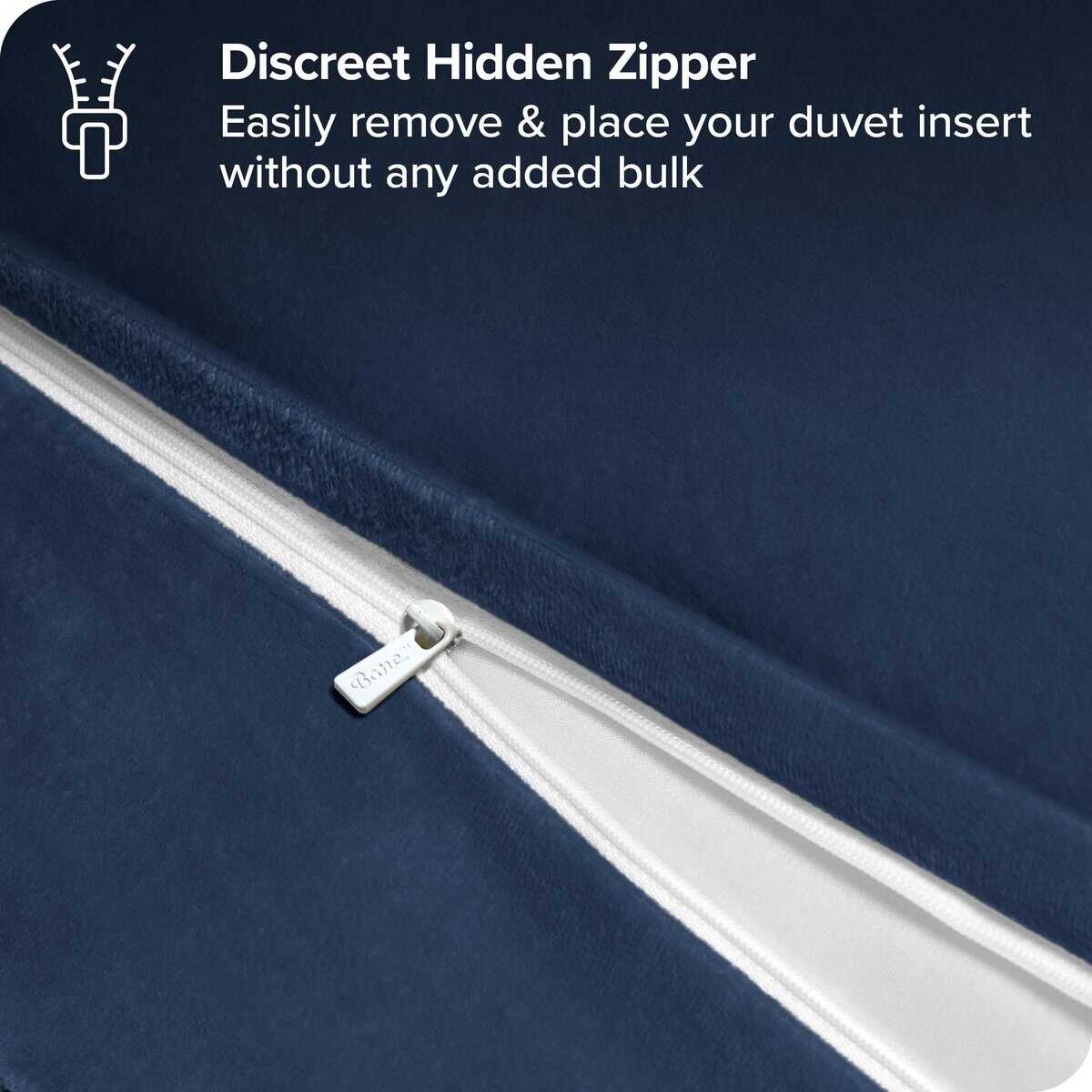 2. DISEÑO ELEGANTE: Nuestro lujoso edredón de felpa es justo lo que necesitas para añadir un poco de brillo a tu dormitorio. Con su lujoso frente de pila de 45 mm y cristal de terciopelo en la parte trasera, este edredón seguramente llamará la atención. Además, el cierre de cremallera oculto y las correas en las esquinas/lados mantienen tu inserto de edredón en su lugar.