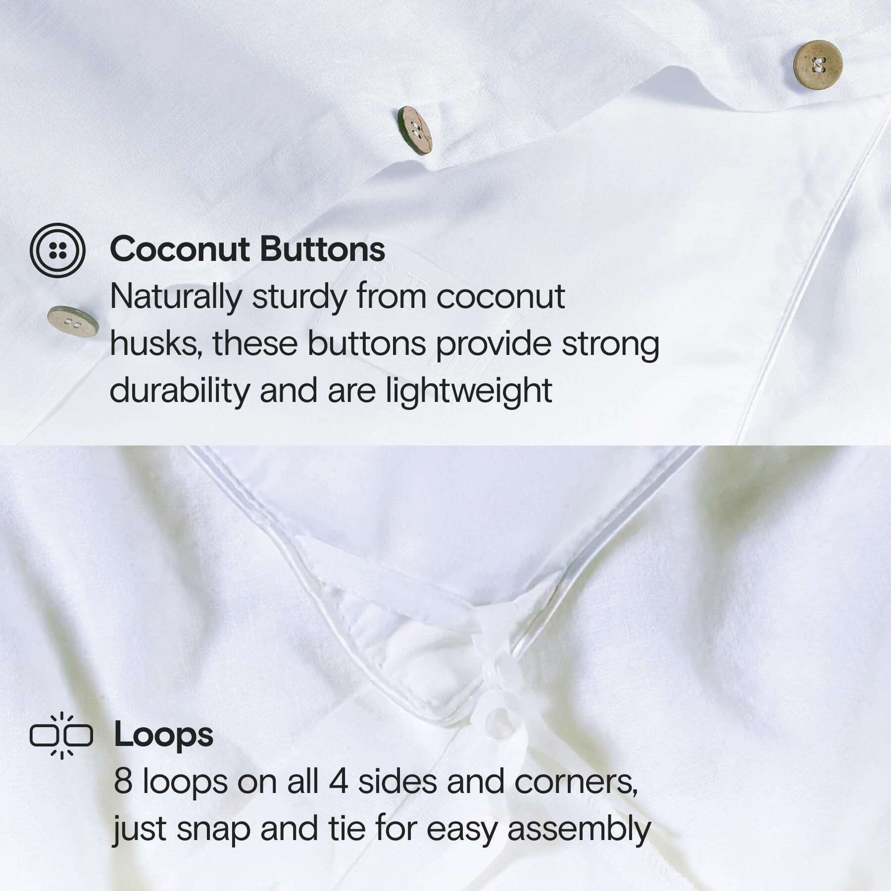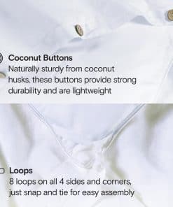 5. 8 Lazos: Nuestra funda de edredón tiene 8 lazos en las esquinas y laterales en lugar de los tradicionales 4 lazos. Selle fácilmente su edredón con nuestros hermosos botones de concha de resina. Full/Queen 90″x90″. King/Cal King 106″x90″