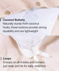 Premiada como «Las Sábanas de Lino Más Suaves» por la Fundación Sleep. También presentada en Forbes, Vogue, GQ, Well+Good, Cosmopolitan y Fast Company, entre otros. El lino francés SIJO tiene una densidad de tela más alta que la mayoría de otras marcas, lo que le confiere durabilidad, según Business Insider. SIJO’s French Linen es lavado a la piedra para suavidad y libre de químicos o suavizantes de tela, a diferencia de algunas marcas de lino que pueden depender de químicos para ablandarlas rápidamente, según Domino. Fabricado con 100% de Lino Francés Certificado Orgánico GOTS proveniente en pequeños lotes de la región de Normandía, Francia, un área conocida por producir algunos de los mejores linos del mundo. La sábana de lino natural es reciclable, sostenible y respetuosa con el medio ambiente. Las sábanas orgánicas hipoalergénicas no están blanqueadas ni teñidas para que sean amables con las personas alérgicas. Con 175 gramos por metro cuadrado (GSM), superior a todas las demás sábanas del mercado, las sábanas de lino SIJO son unas de las más duraderas del mercado y aún así ofrecen la máxima suavidad. Debido a que las sábanas de lino son preencogidas y lavadas a la piedra, ya son suaves al tacto. Se pueden lavar a máquina con agua fría y enjuagar por completo cualquier jabón o detergente de su Lino Francés para mantenerlos increíblemente suaves, secar en secadora a baja temperatura y limpiar en seco si se prefiere. Se volverán más suaves después de cada lavado. Además, no hacen bolas tan rápido como el algodón. Nuestra funda de edredón tiene 8 lazos en las esquinas y los lados en lugar de los 4 tradicionales. Selle su edredón fácilmente con nuestros hermosos botones de resina. Completo/Queen 90″x90″. King/Cal King 106″x90″