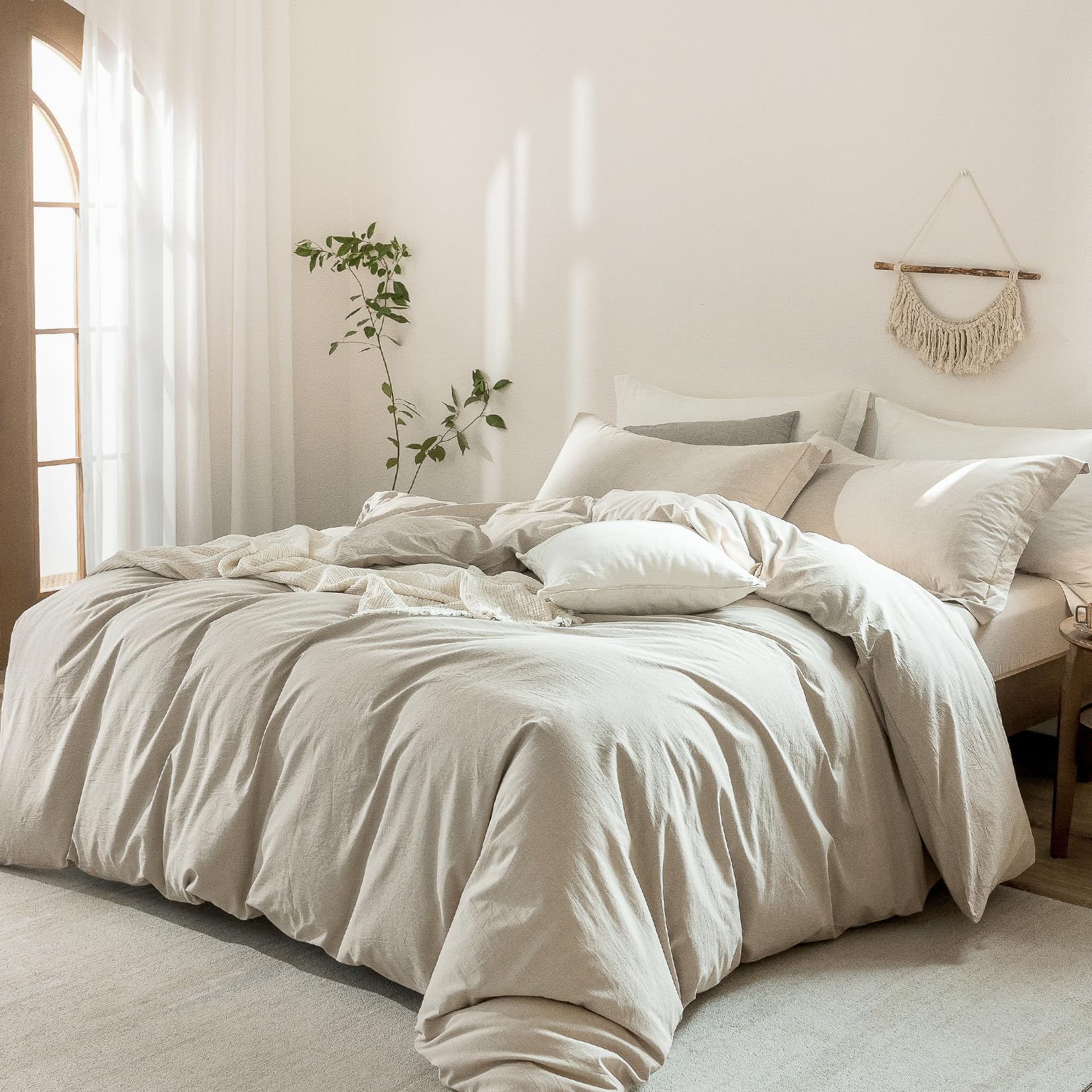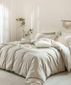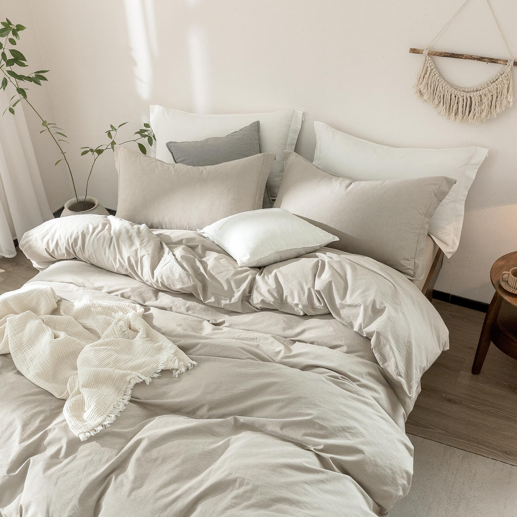 Funda de Edredón de Lino Gris Warm Moment Tamaño California
