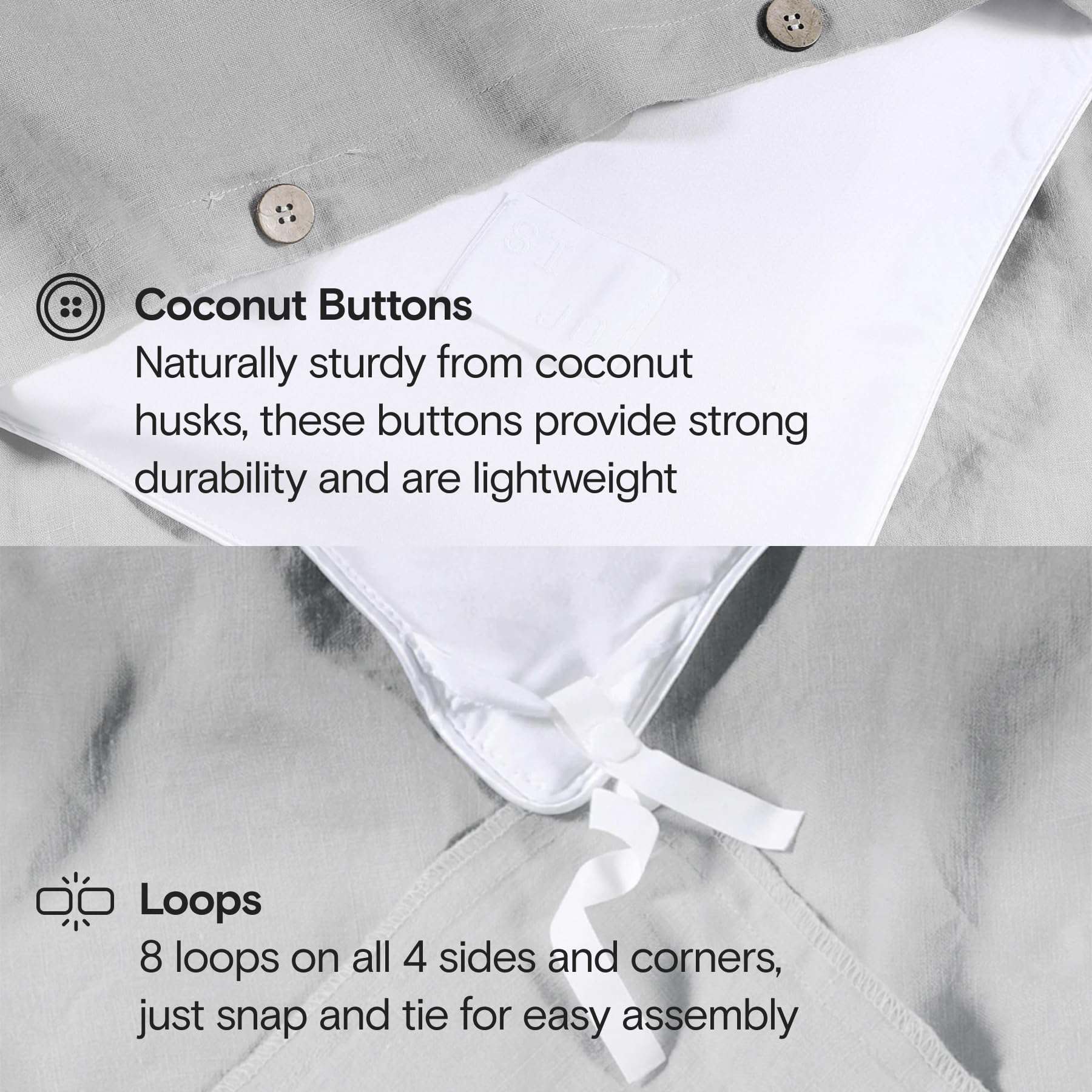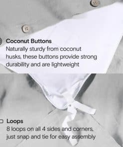 5. 8 Lazos: Nuestra funda de edredón tiene 8 lazos en las esquinas y los lados en lugar de los tradicionales 4 lazos. Selle fácilmente su edredón con nuestros hermosos botones de concha de resina. Completo/Reina 90″x90″. Rey/California Rey 106″x90″