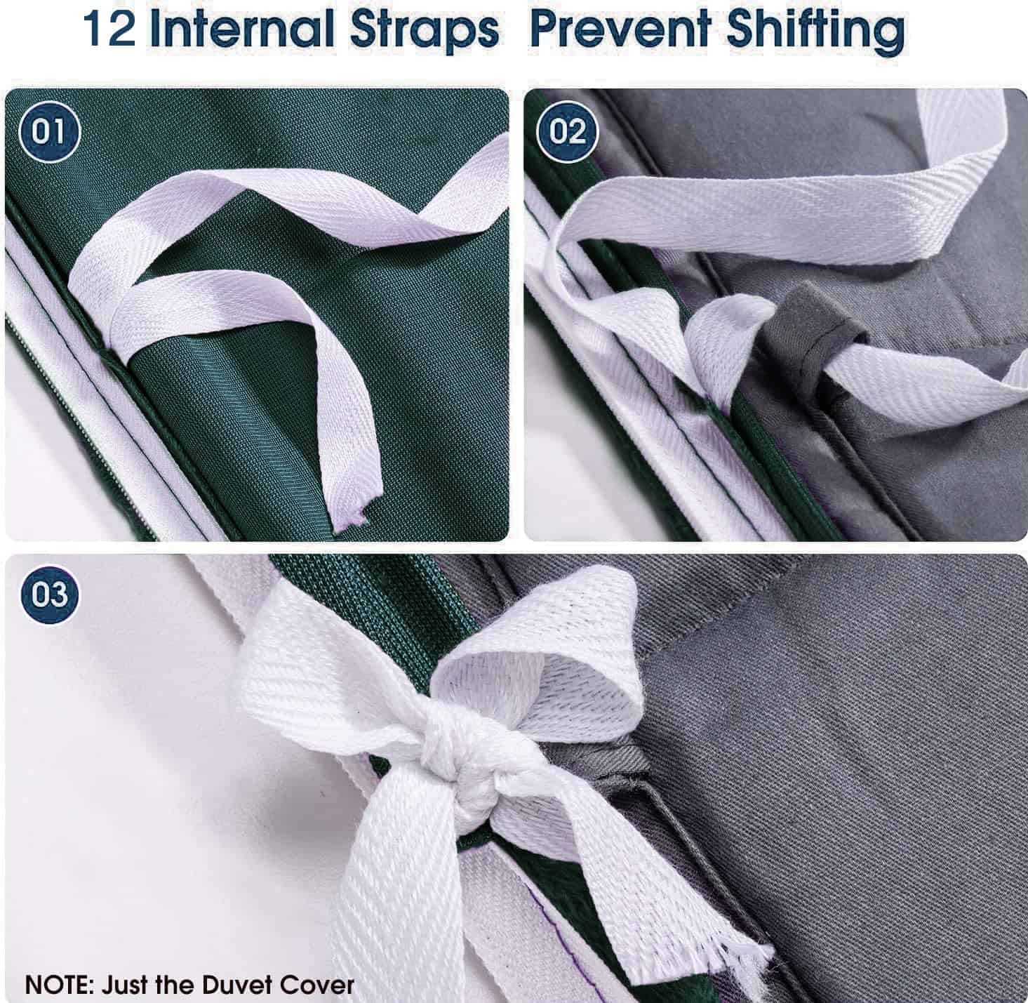 4. Diseño perfecto: La funda de manta con peso de tamaño Queen con diseño de cremallera larga oculta, hace que sea fácil de quitar o insertar la manta, 12 correas internas mantienen la manta en su lugar para evitar que se desplace.