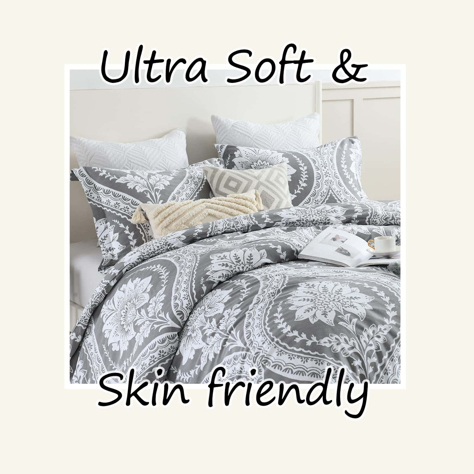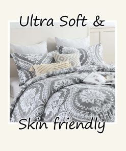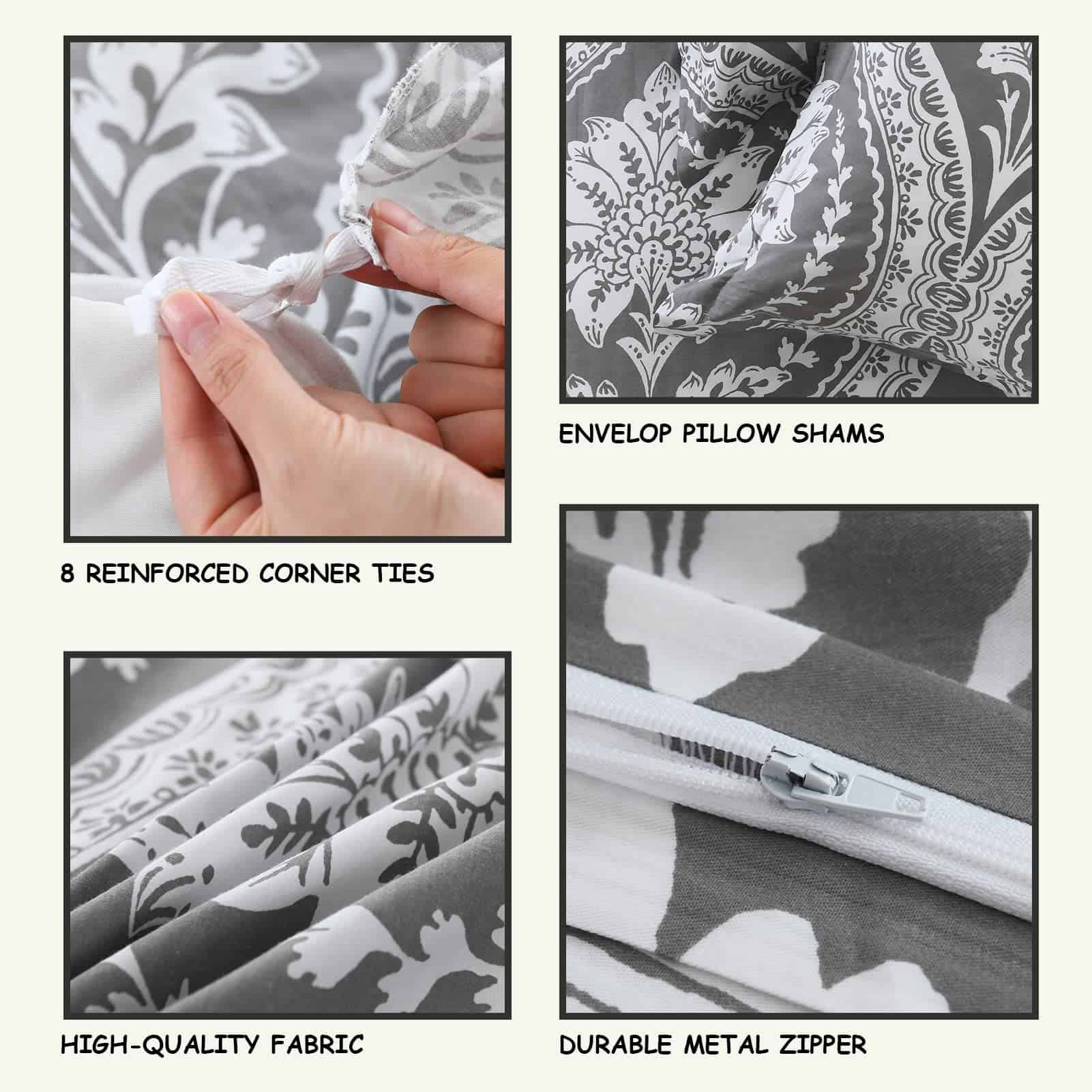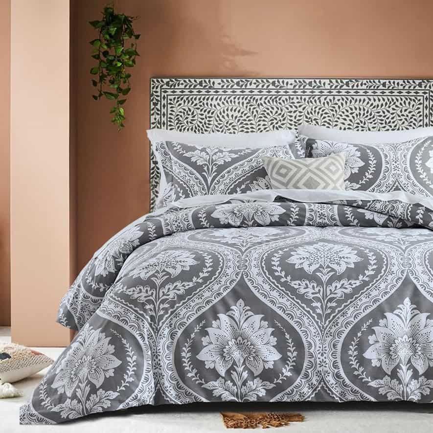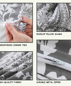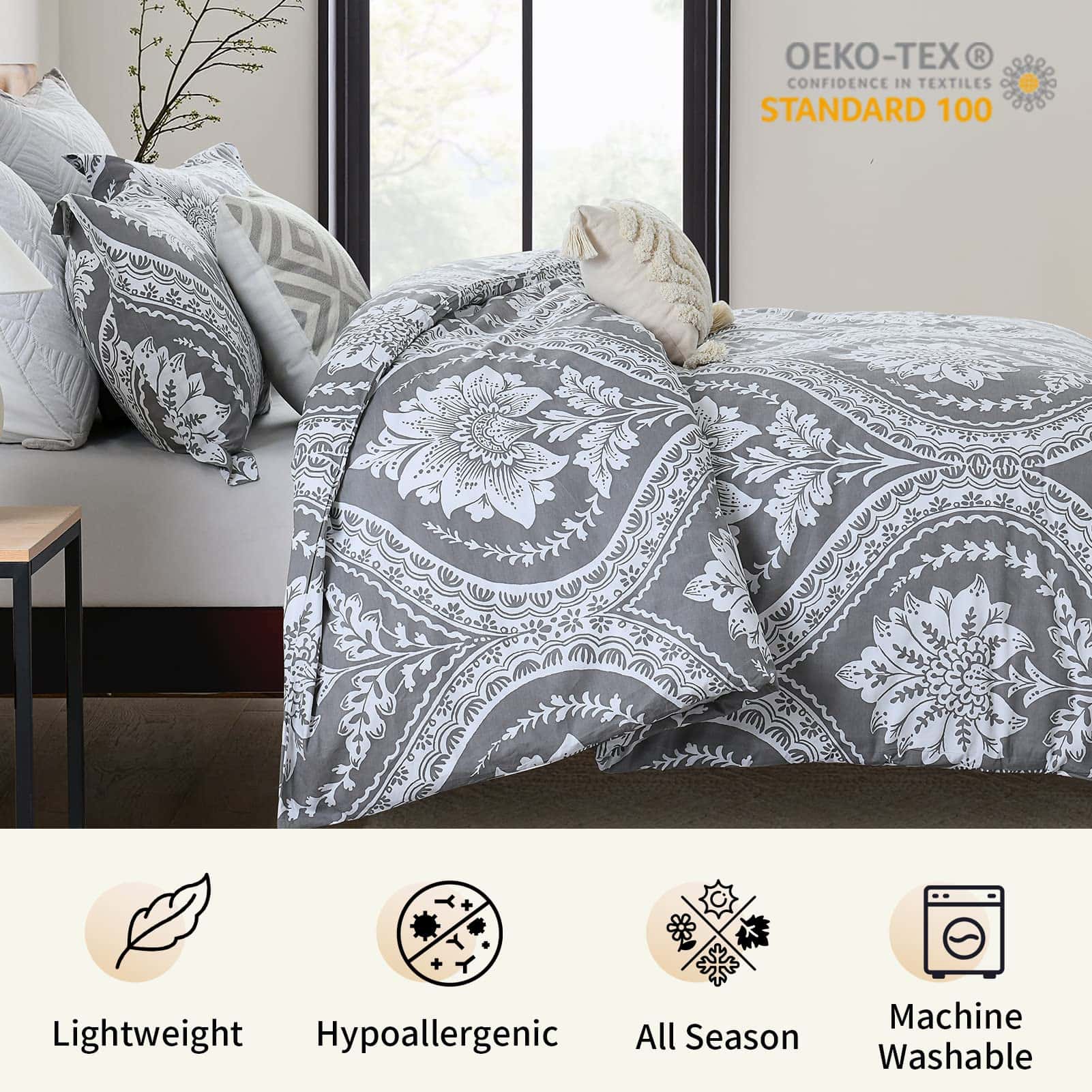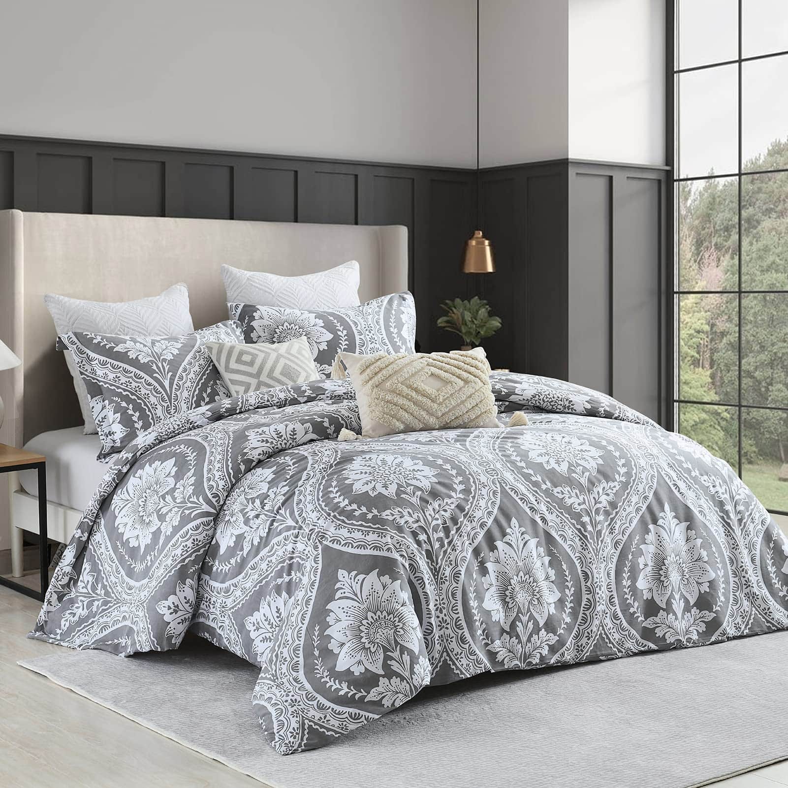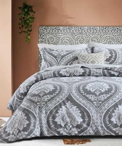 Funda de Edredón Gris con Damasco Queen Size – Juego de