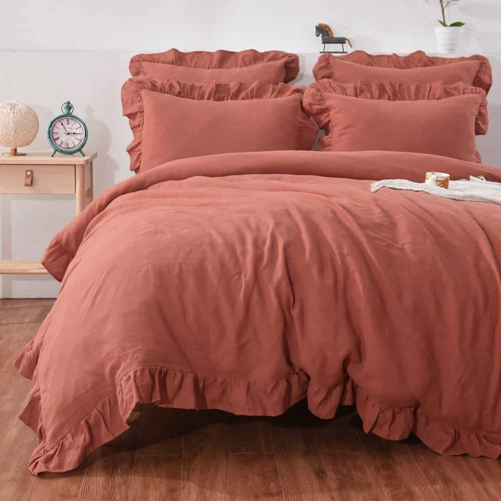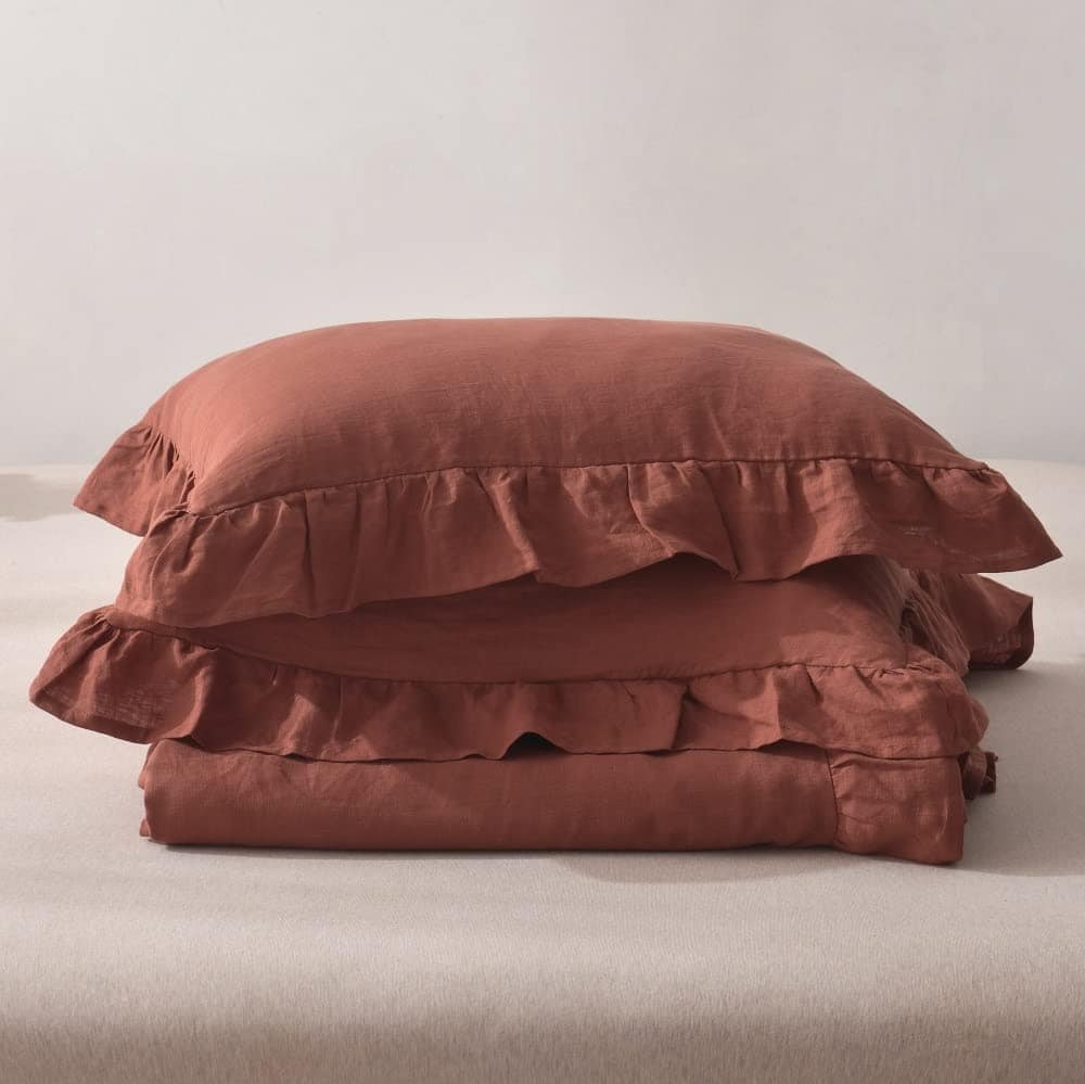 Cuando buscas esa ropa de cama de hotel de lujo pero deseas mantener una sensación más natural, nada supera la suavidad y la elegancia de lujo de una Funda de Edredón de Lino y Algodón de Meadow Park con fundas de almohada a juego. El complemento perfecto para un dormitorio moderno, clásico o de campo y diseñado para estilo, transpirabilidad y una apariencia única que te encantará. Disponible en tamaños Queen y King. Cada set Full/Queen incluye una Funda de Edredón de 90 x 94 y 2 Fundas de Almohada de 20 x 26. Cada set King incluye una Funda de Edredón de 104 x 94 y 2 Fundas de Almohada de 20 x 36. Lino de Lujo Utilizamos fibra de lino importada de Francia para darle a nuestras fundas de edredón de lino y algodón en tamaños twin, queen y king una sensación más suave y confortable que acaricia la piel mientras absorbe el sudor o humedad durante la noche. Una elección inteligente para aquellos que buscan esa sensación de calidad de hotel. Resistente al Encogimiento Hemos prelavado nuestro tejido para garantizar que no se decolore, encoja o pierda forma cuando lo estás colocando en tu colchón para proporcionar reutilización de larga duración y soporte. Tela Ligera y Transpirable Utilizamos una tela de lino y algodón de 180 GSM de peso medio que proporciona calidez en meses más fríos y transpirabilidad fresca durante la primavera y el verano para ayudarte a encontrar el equilibrio perfecto del sueño. Confort Certificado Todo el lino y la ropa de cama de meadow park cumplen con estrictas certificaciones OekoTex 100 para garantizar que estén libres de productos químicos nocivos, aditivos o impurezas en la tela. Cuidado y Mantenimiento Fácil Nuestra ropa de cama de lino y algodón de lujo de alta calidad es segura para lavar a máquina y solo requiere un detergente suave. También puedes secar al aire o en secadora a baja temperatura para proteger la tela.