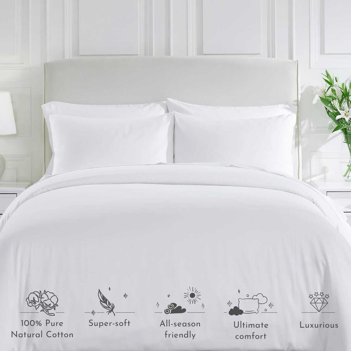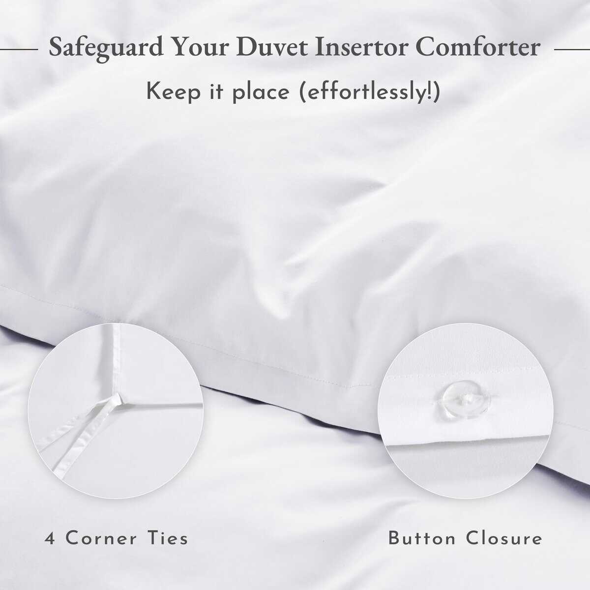 1. 1 FUNDA DE EDREDÓN KING OVERSIZED ÚNICAMENTE (EDREDÓN NO INCLUIDO): Experimenta la diferencia en comodidad y calidad con nuestra lujosa funda de edredón king oversized de 400 hilos 100% algodón de sarga. Siente la suavidad natural y la frescura del tejido contra tu piel. Dile adiós a las noches calurosas y sudorosas y hola a una noche de sueño tranquila y reparadora. 2. MIDE ANTES DE COMPRAR POR FAVOR: 1 funda de edredón king oversized únicamente (120″ Ancho x 98″ Largo) cuenta con costuras de alta calidad para una durabilidad prolongada. Por favor mide el tamaño de tu edredón para evaluar si nuestra funda de edredón es compatible. 3. FÁCIL DE LAVAR Y USAR: Protege tu edredón sin la molestia de lavar todo el edredón. Nuestra funda de edredón es fácil de lavar y secar en casa a la configuración regular. La funda de edredón tiene aberturas con botones y lazos internos para mantener el edredón en su lugar. 4. EL ASPECTO: Imagina tu cama luciendo como una habitación de hotel de lujo con nuestra funda de edredón king oversized. Nuestro tejido de algodón de sarga tiene un hermoso brillo y casi no se arruga, lo que le da un aspecto nítido y elegante. También tenemos sábanas a juego en el mismo tejido y color. 5. NUESTRO COMPROMISO: En 2022 y 2023, donamos más de 22,000 piezas de ropa de cama a organizaciones benéficas locales en Estados Unidos. No utilizamos plástico en nuestro embalaje y nuestras fundas de edredón se producen en nuestra fábrica familiar en India. Cada pieza se inspecciona para garantizar la calidad, y prometemos reemplazar cualquier producto defectuoso sin costo alguno. Compra con confianza con nuestra política de devolución de 30 días, incluso si has lavado o usado nuestro producto.