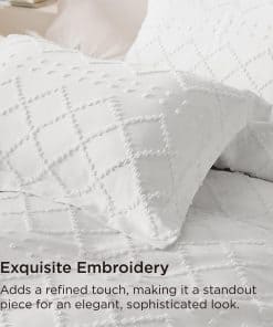 5. Durabilidad Mejorada: Con el tejido de microfibra de poliéster premium y la técnica de teñido única de Bedsure, este juego de funda de edredón bordada resiste el desvanecimiento, la contracción y el deslizamiento de las costuras después del lavado. Lavar a máquina por separado en agua fría en un ciclo suave y secar en secadora a baja temperatura o secar en línea.