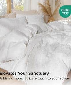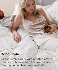 1. Ropa de Cama Boho: Esta funda de edredón king size está inspirada en el diseño boho chic, y fue galardonada con el Premio a la Mejor Ropa de Cama Decorativa por Good Housekeeping. Su patrón geométrico dimensional y elegante bordado texturizado añaden un toque de estilo sofisticado a tu espacio de descanso.