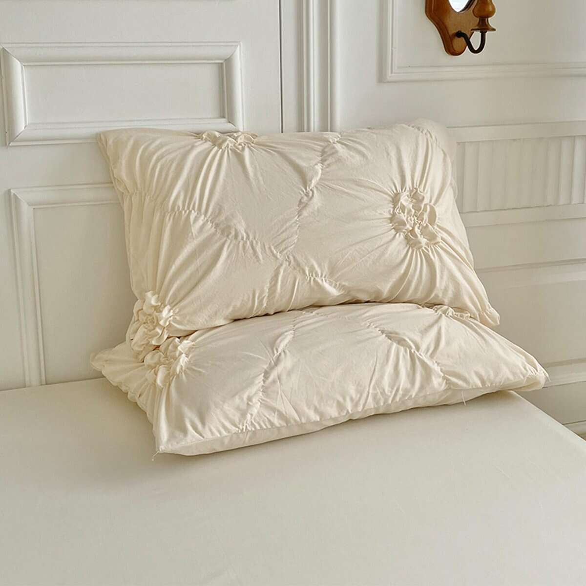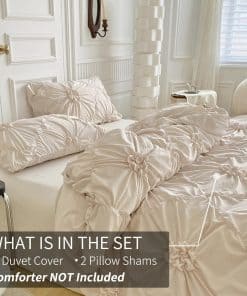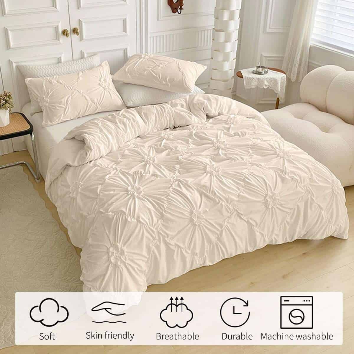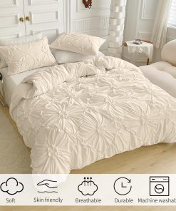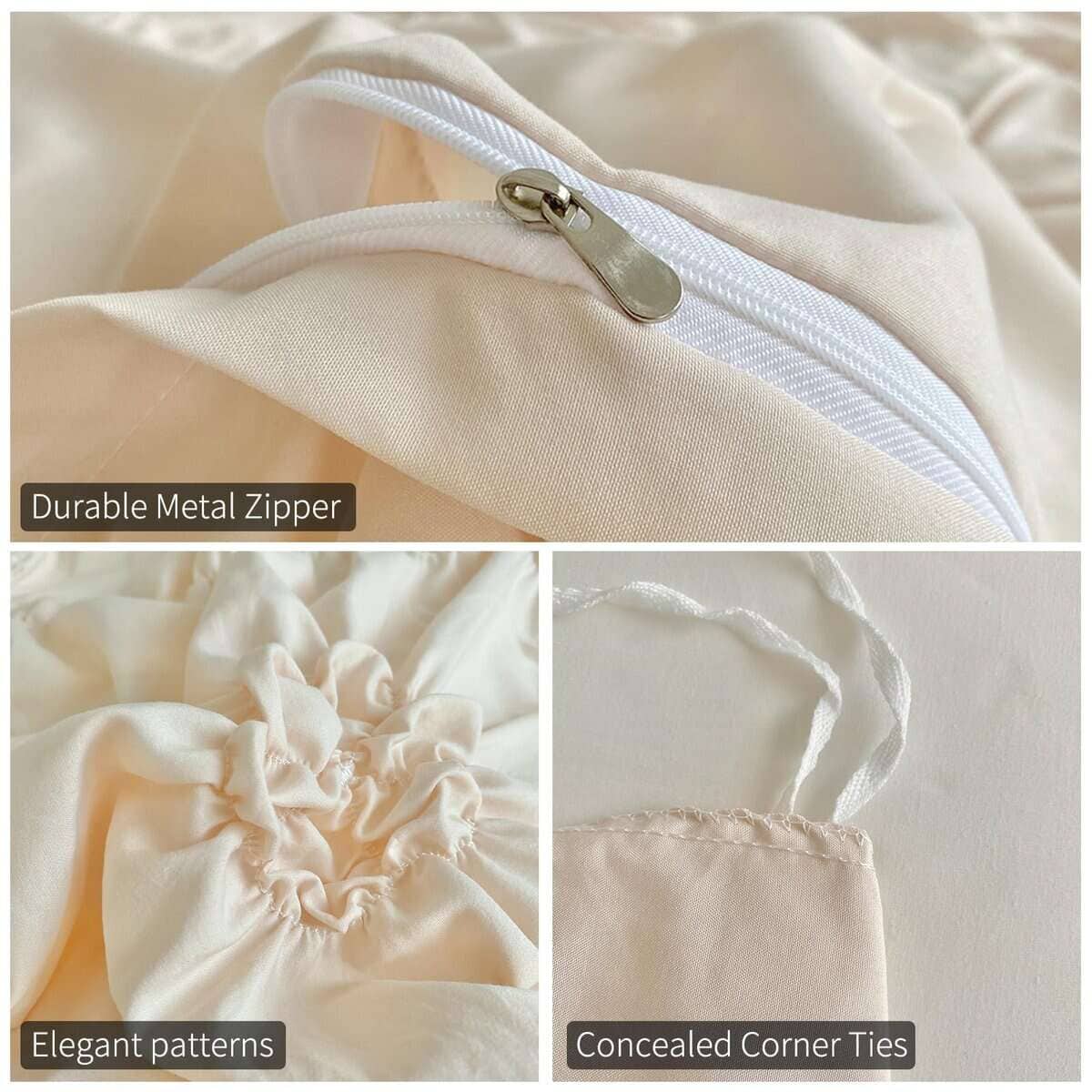 Funda de Edredón King Size con Diseño de Flores Beige,