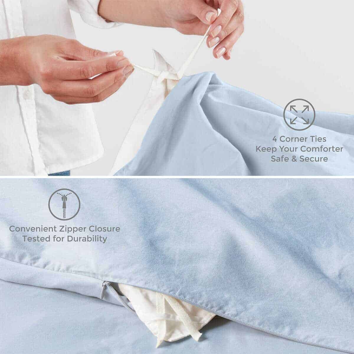 DURADERAS Y FÁCILES DE CUIDAR: Suaves y lisas, estas fundas de edredón modernas están acabadas con costuras de alta resistencia y son fáciles de mantener. Lavar a máquina en agua fría, secar a baja temperatura y planchar si es necesario. Si prefieres una ropa de cama sin arrugas, utiliza un ciclo de secado corto y retira tu funda inmediatamente de la secadora o sécala al sol. Por favor, ten en cuenta que este juego de funda de edredón no incluye un edredón.