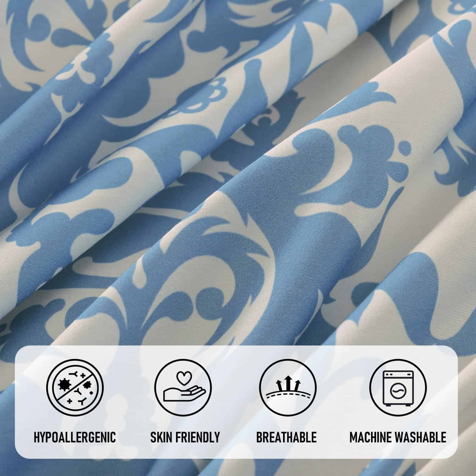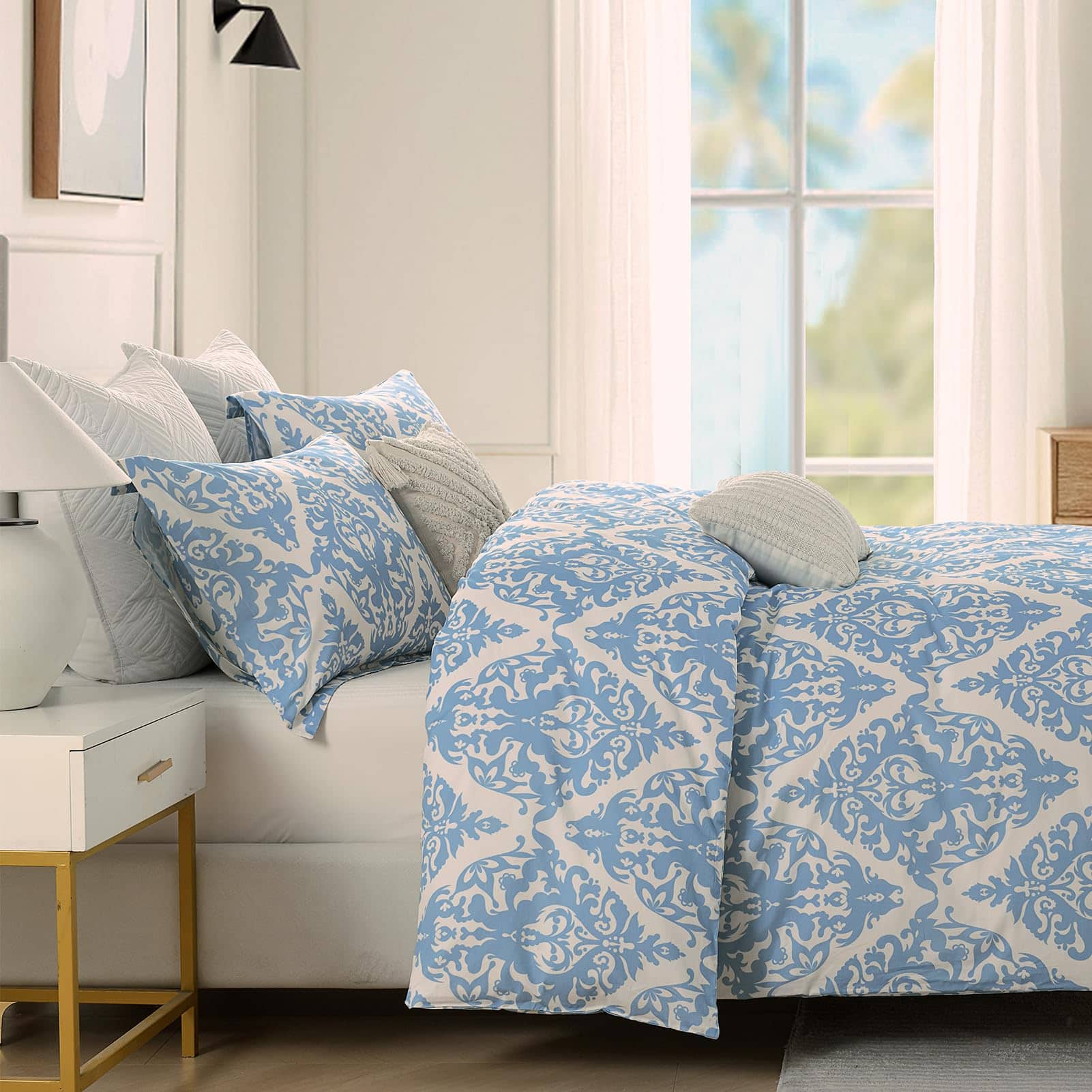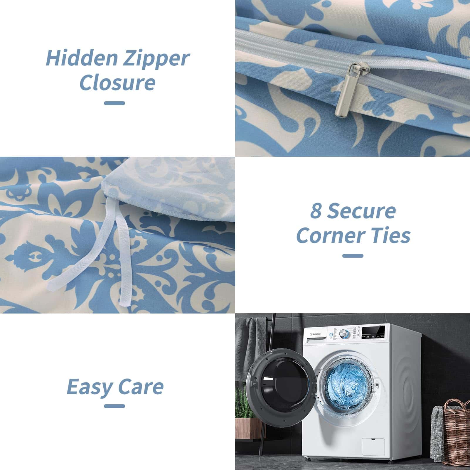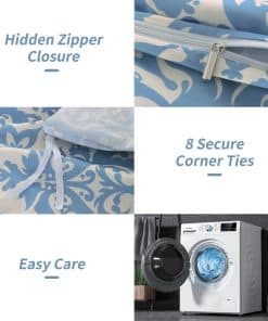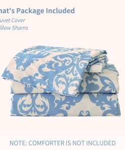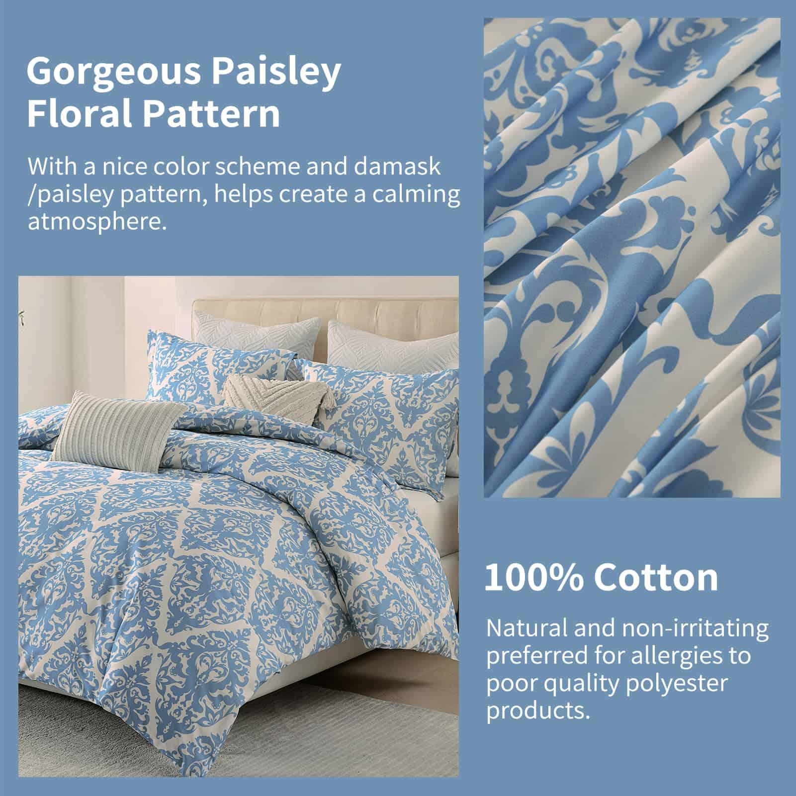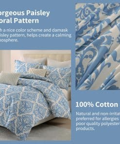 Funda de Edredón Azul PERHOM King – Funda de Edredón King de Damasco Paisley Floral, Juego de Funda de Edredón de Algodón 100%, Ropa de Cama Transpirable Suave para Todas las Estaciones, 104″x90″, Sin Edredón La funda de edredón azul PERHOM king está hecha de material de algodón certificado Oeko-Tex Standard 100, es cómoda y transpirable, no se hace bolitas y no se desvanecerá. Esta funda de edredón de algodón es suave y suave al tacto, brindándote la máxima suavidad. El diseño floral damasco destaca de una manera cómoda y acogedora. Estas fundas de edredón paisley utilizan colores brillantes para ofrecerte un disfrute soleado, claro y fresco de forma natural. La funda de edredón paisley PERHOM tiene un conveniente y sin complicaciones cierre de cremallera oculto que facilita insertar y quitar tu edredón dentro de la funda de edredón. Hay lazos en todas las esquinas y en el centro de cada extremo para evitar que tu edredón se mueva. Encontrarás que la funda de edredón paisley azul se vuelve aún más suave con cada lavado. La funda de edredón king viene en un tamaño de 104″x90″ e incluye 2 fundas de almohada de 20″x36″. ¡Recibirás una exquisita funda de edredón floral vintage y 2 fundas de almohada! No se incluyen edredón ni almohada en este juego de cama PERHOM. Si tienes alguna pregunta sobre el juego de cama PERHOM, no dudes en contactarnos, te responderemos en un plazo de 24 horas.