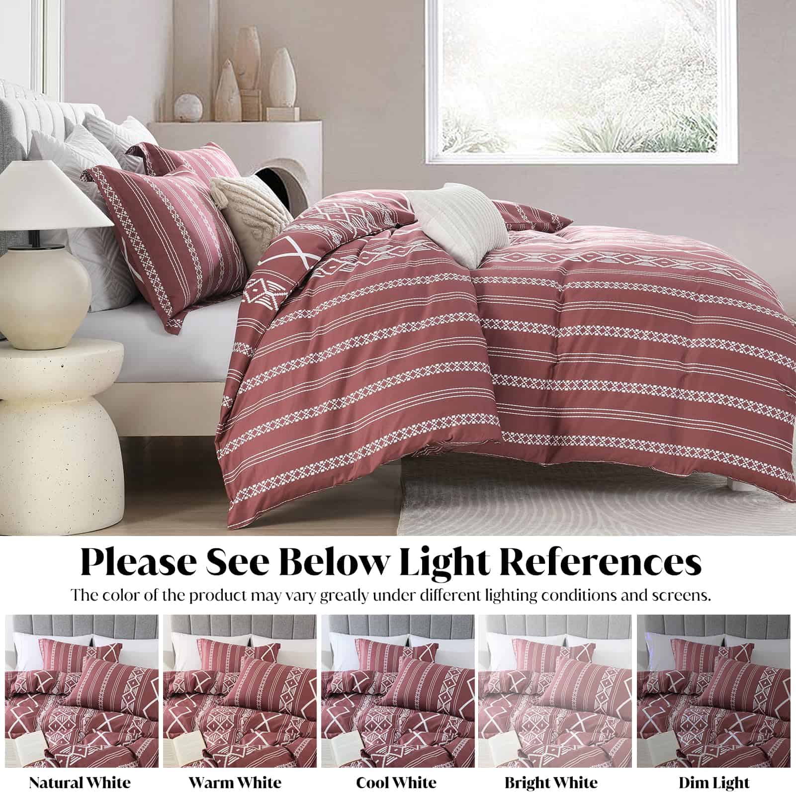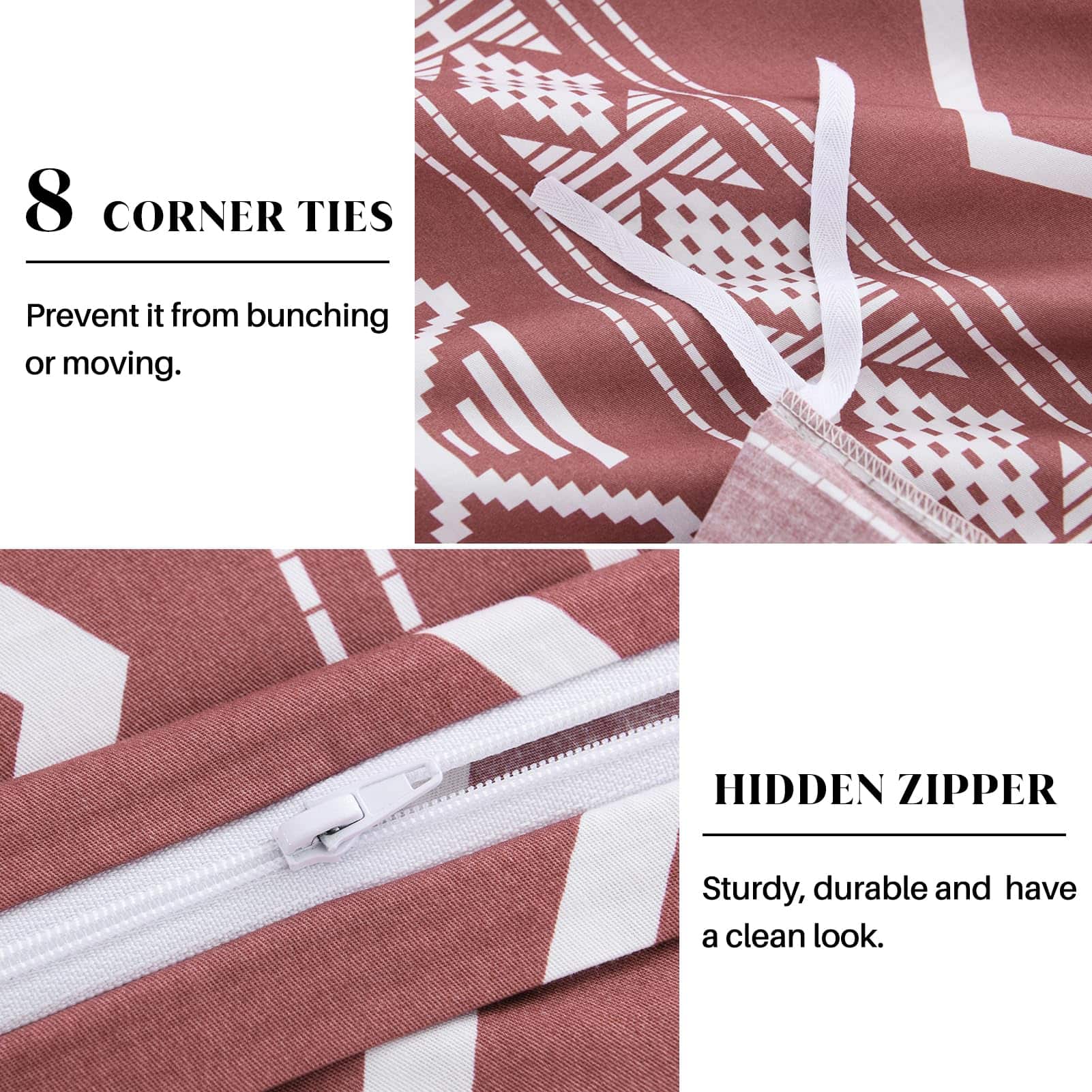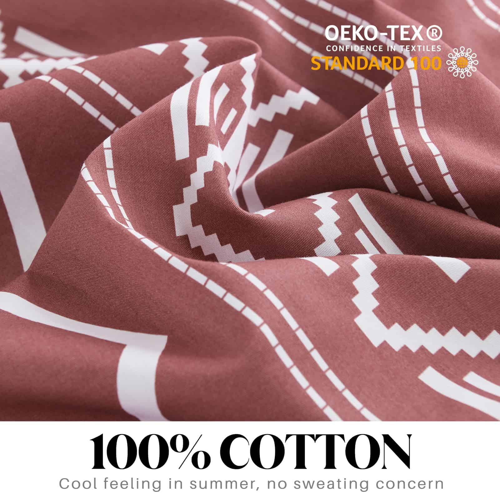 Funda de Edredón Queen Size CozyDH – 100% Algodón 400 Hilos Rojo Funda de Edredón Queen Boho Set, Suave Ligero Juego de Ropa de Cama 3 piezas (Rojo, 90″x90″, Sin Relleno) – Calidad: La funda de edredón queen size CozyDH está hecha de algodón 100% de 400 hilos, que es suave, transpirable, seguro para la piel y apto para lavadora. Certificado por OEKO-TEX Standard 100, nuestra funda de edredón ha sido cuidadosamente probada y garantizada libre de sustancias nocivas, para brindarle a usted y su familia un ambiente de descanso seguro y saludable. Diseño: La funda de edredón rojo queen de CozyDH presenta un llamativo patrón geométrico bohemio, con colores vibrantes y elegantes que añaden un toque de estilo y sofisticación a su dormitorio. Ideal para diversos eventos y días festivos, esta funda de edredón es una excelente elección para bodas, cumpleaños, Navidad y más. Funcionalidad: Equipada con 8 lazos en las esquinas de la funda de edredón, además de una cremallera oculta, esta funda de edredón queen le permite mantener su edredón en su lugar y protegerlo de manchas, de manera sencilla y eficiente. Las fundas de almohada con cierre de sobre facilitan la inserción y extracción de las almohadas. Tallas Disponibles: La funda de edredón queen se encuentra disponible en dos tallas: king y queen, con 1 funda de edredón y 2 fundas de almohada incluidas en cada juego. Nota: El relleno de edredón y almohada no está incluido en el set. Cuidado: Para mantener su funda de edredón en óptimas condiciones, le recomendamos lavarla por separado en agua fría, en ciclo suave, y secar a baja temperatura o de forma natural. No usar lejía para mantener el color y la calidad de la tela. Disfrute de reducir el tiempo de sus tareas domésticas y reserve un momento de relajación con una taza de café.