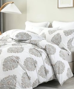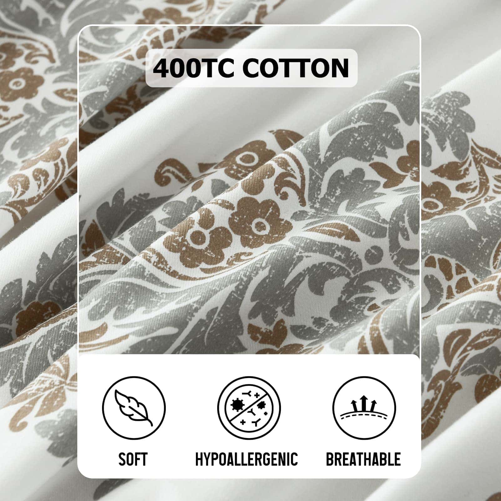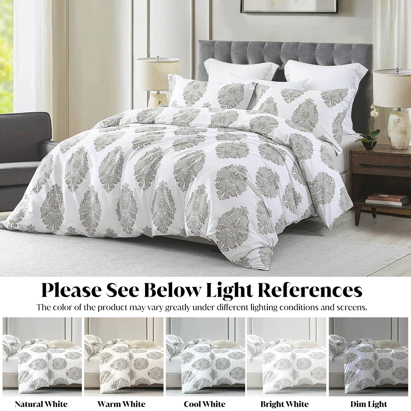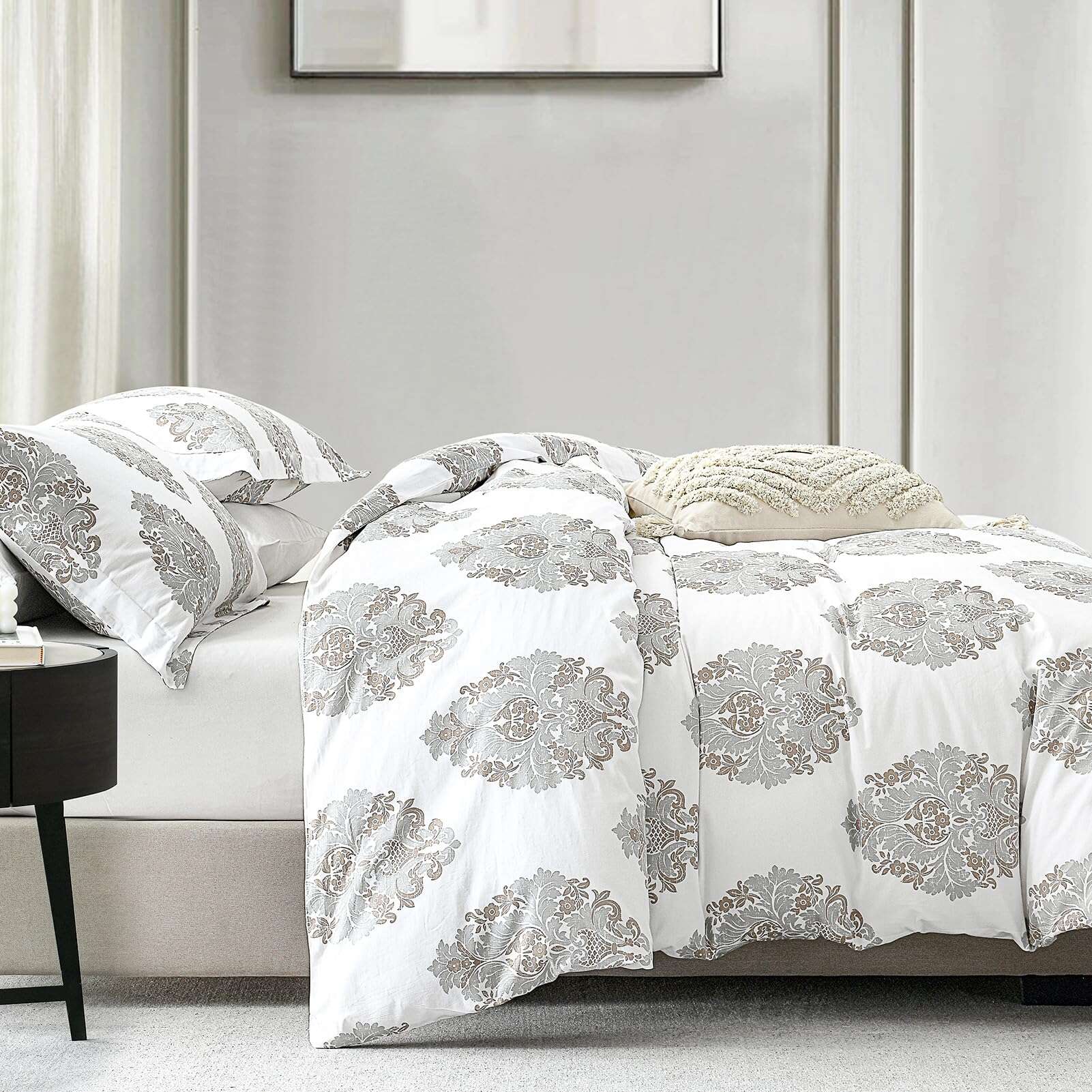 Funda de Edredón Queen Y-PLWOMEN – Funda de Edredón de Algodón al 100% Tamaño Queen, Estampado Damasco, Suave y Transpirable Juego de Fundas Nórdicas para Todas las Estaciones, 90″x90″, Sin Relleno. Esta funda de edredón queen de algodón al 100% con tema de granja impreso está hecha con algodón de tejido percal, lo que la hace más duradera, sin olores, no se desgarra ni se despega fácilmente. El proceso de pre-lavado asegura su calidad. La funda de edredón queen cumple con el estándar OEKO-TEX n. 100, lo que garantiza que la producción sea respetuosa con el medio ambiente. La tecnología de impresión y teñido reactivo imitando el medio ambiente hace que los colores sean más reales, firmes y duraderos, evitando que se desvanezcan y manteniendo los patrones frescos durante décadas. Con un diseño delicado de Damasco floral, esta funda de edredón vintage bohemia es perfecta para darle vida a tu conjunto de dormitorio. Viene con una cremallera oculta para insertar fácilmente el edredón y 8 lazos en las esquinas para mantenerlo en su lugar y facilitar la colocación del edredón. Este juego de funda de edredón queen incluye 1 funda de edredón floral (90″ x 90″) y 2 fundas de almohada (20″ x 28″). (No incluye Relleno de Edredón ni Almohada)