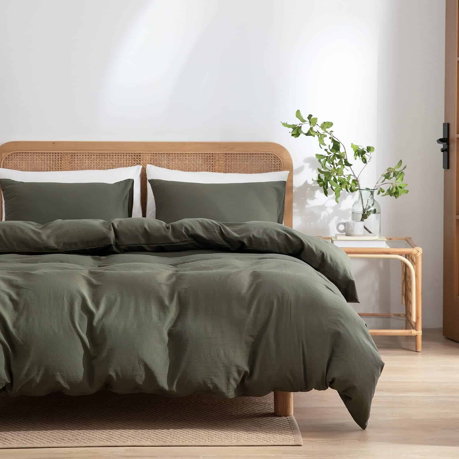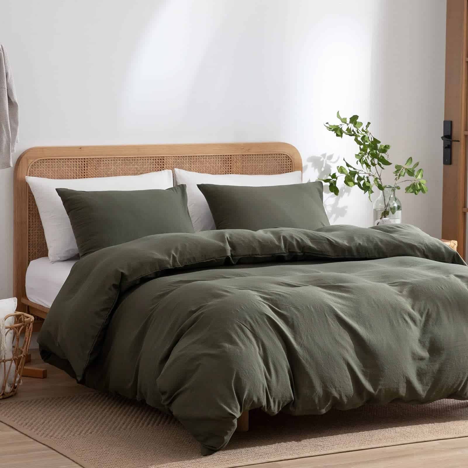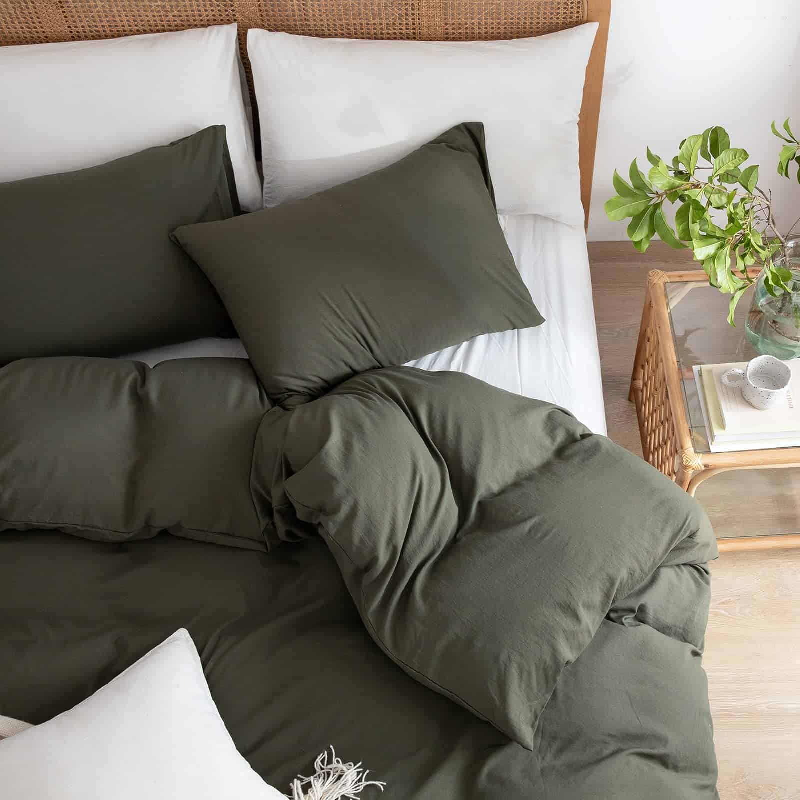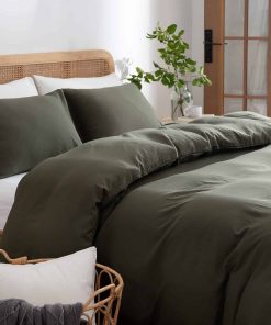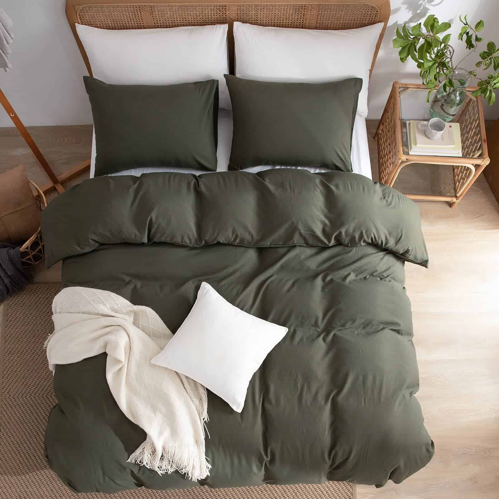 Funda de Edredón Verde Oscuro Queen, Set de Ropa de Cama