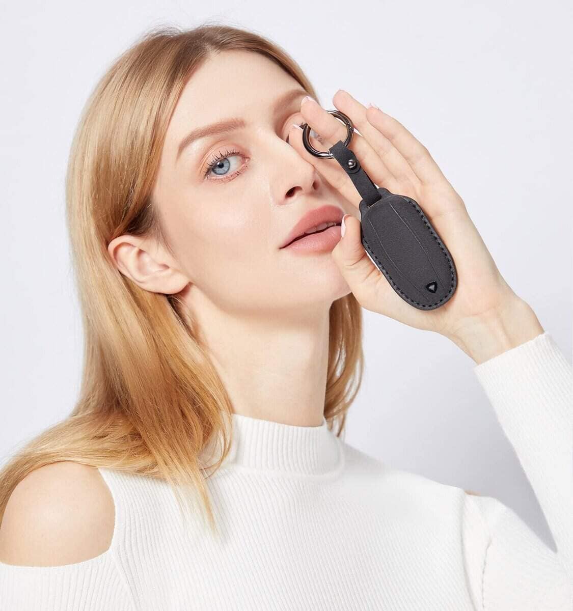 2. Este estuche está hecho de cuero gamuzado 100% genuino de primera calidad. Proporciona protección completa contra arañazos y desgaste para tu llave.