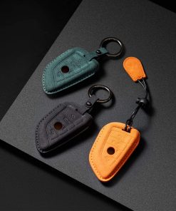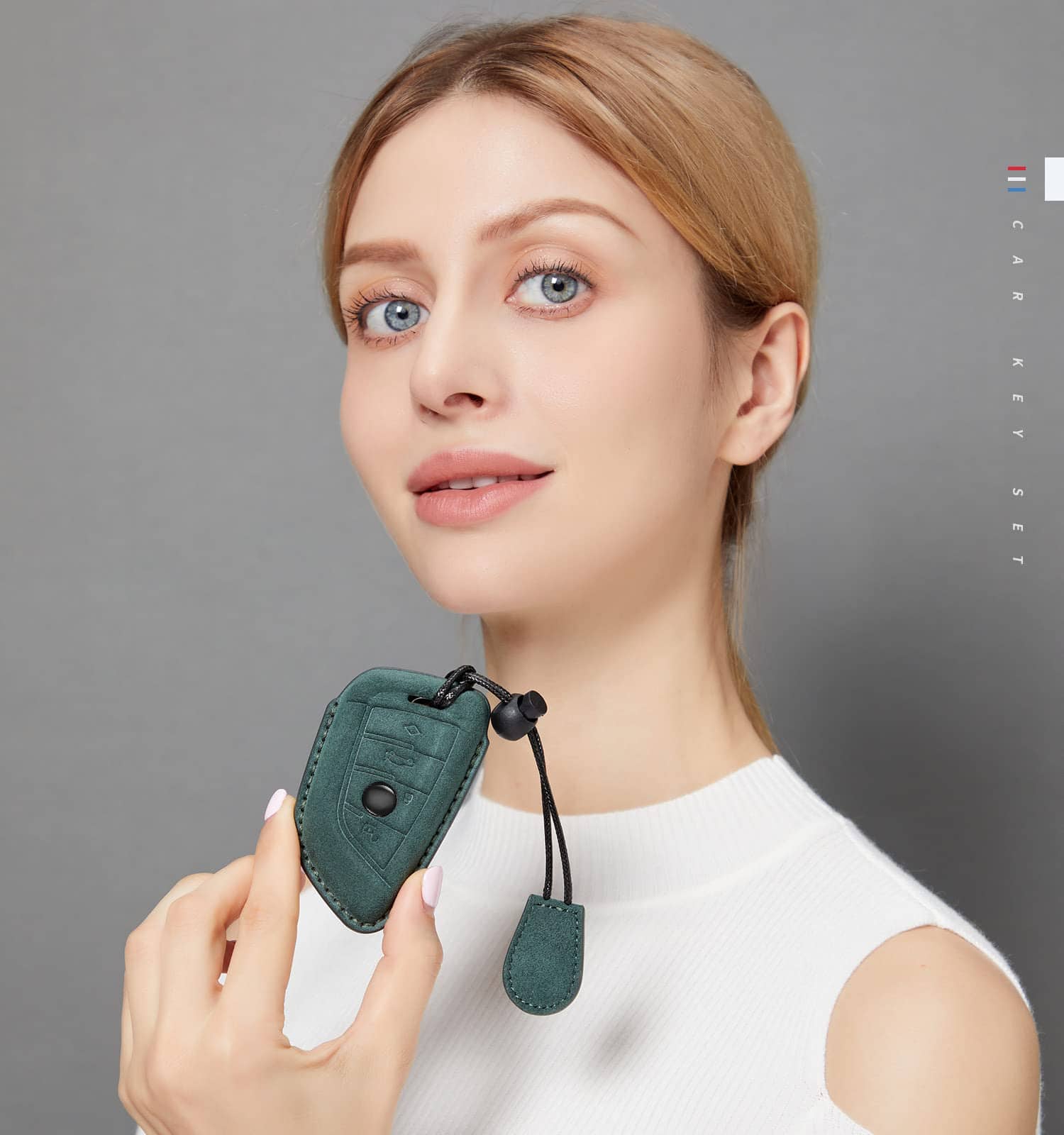 Funda fabricada en 100% cuero genuino de ante premium. Proporciona protección total contra arañazos y desgaste para tu llave. Todos los botones, puertos y sensores permanecen sin restricciones sin comprometer la protección. Esta funda está diseñada para un uso diario. Incluye: 1 x Funda de Llave de Cuero, 1 x Gancho de Mosquetón Redondo y 1 x Correa de Llave de Cuero. (Nota: Llave no incluida)