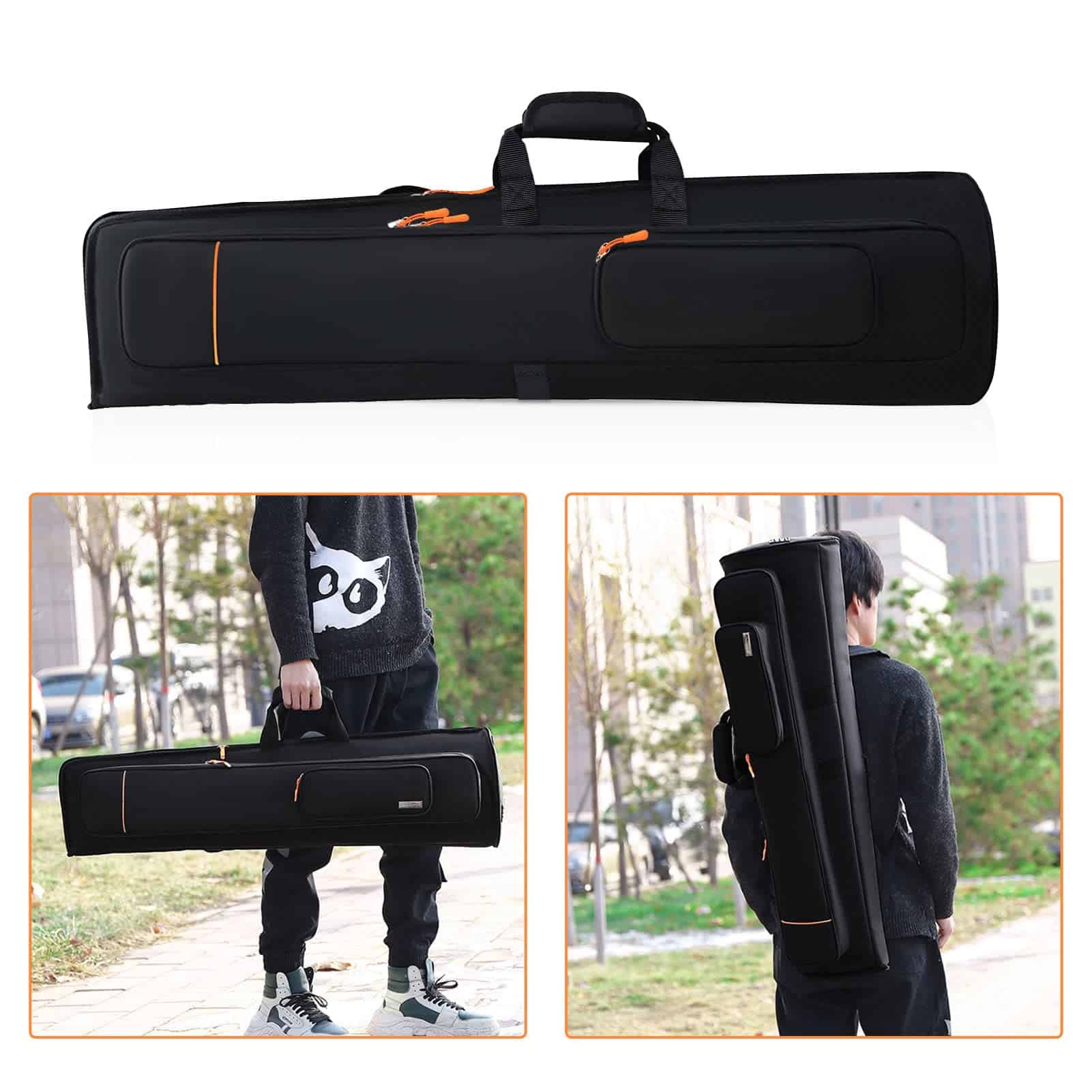 1. Material ligero y duradero: La bolsa de trombón está hecha de tela de lona de alta densidad, que tiene alta resistencia a la abrasión, resistencia a desgarros, textura ligera y delgada, y mejor rendimiento a prueba de agua. No se preocupe por que la bolsa se moje en días lluviosos. 2. Estuche de protección mejorado: Diseño acolchado y suave, con algodón en el interior (aprox. 16 mm de grosor), también con almohadilla de goma suave en la parte inferior. Puede amortiguar el impacto, proteger su instrumento de golpes durante el transporte y el transporte. 3. Diseño humanizado: Diseño de asa doble con envoltura acolchada en el mango, se puede llevar a mano o en el hombro, es más conveniente para el viaje en metro o en coche al concierto. 4. Características de accesorios de alta calidad: 2 bolsillos de almacenamiento exteriores con cremallera, que se ajustan perfectamente para el trombón y los cables de audio, pedal, libros, etc. Dos cremalleras de hardware engrosadas de doble vía, fuertes y duraderas, el cordón de nylon es más elegante. 5. Excelentes regalos para vacaciones: El diámetro de la campana es de 9.4 pulgadas, adecuado para trombón alto, trombón tenor y trombón de transposición. Apropiado para personas de todas las edades, como principiantes, músicos y músicos de banda. Es un regalo ideal para el Día de la Madre, el Día del Padre, el Día del Niño, Halloween, Acción de Gracias, Navidad.