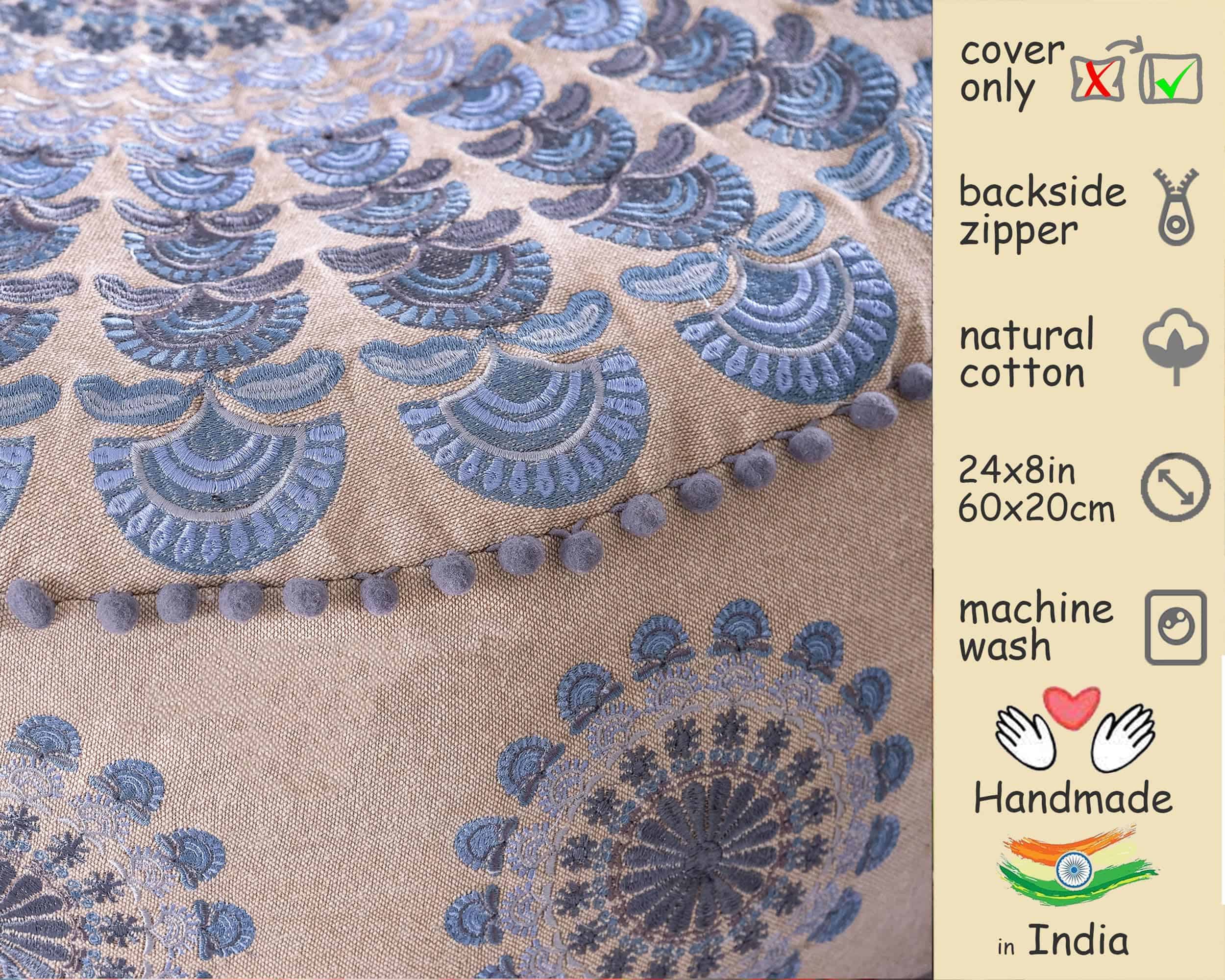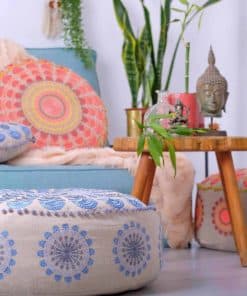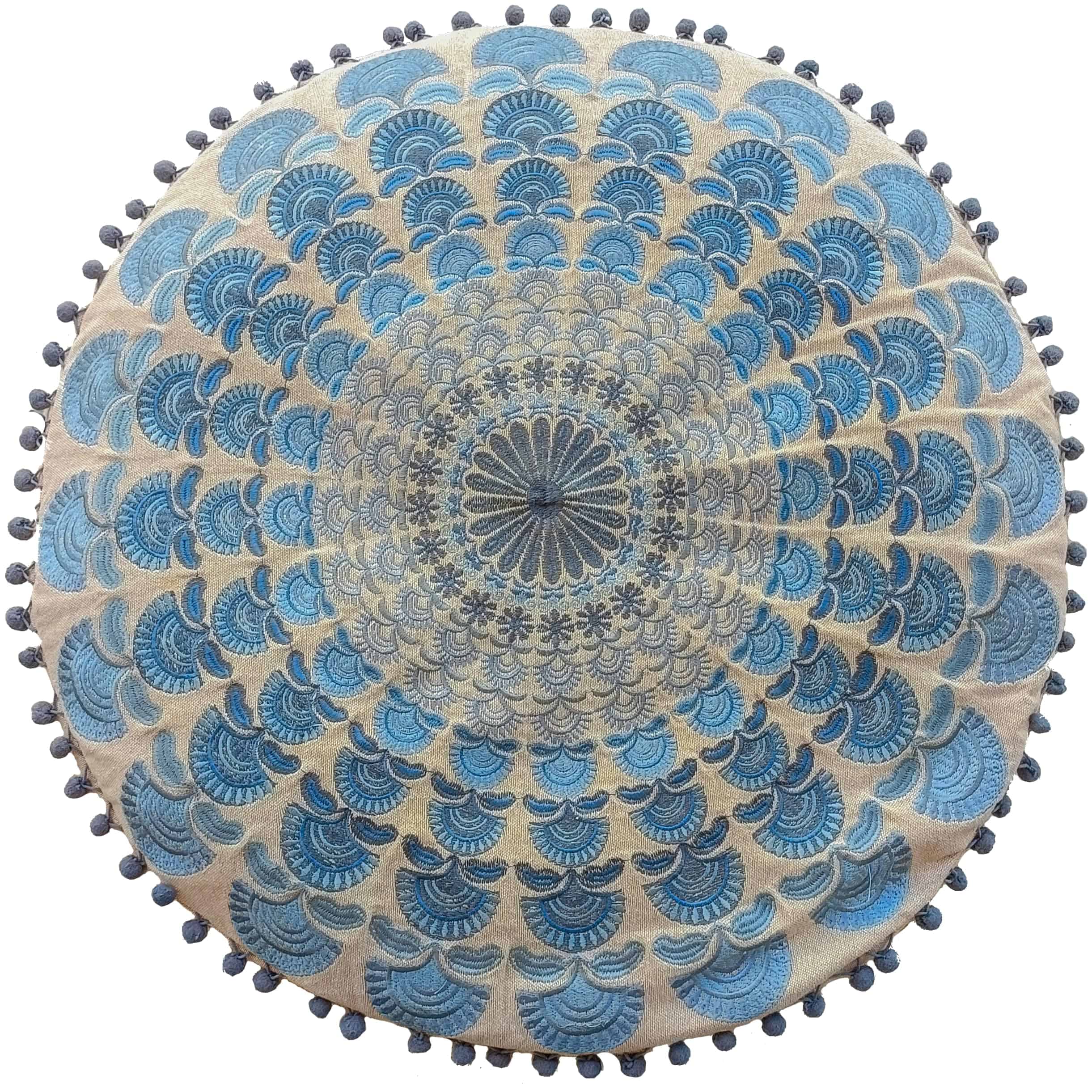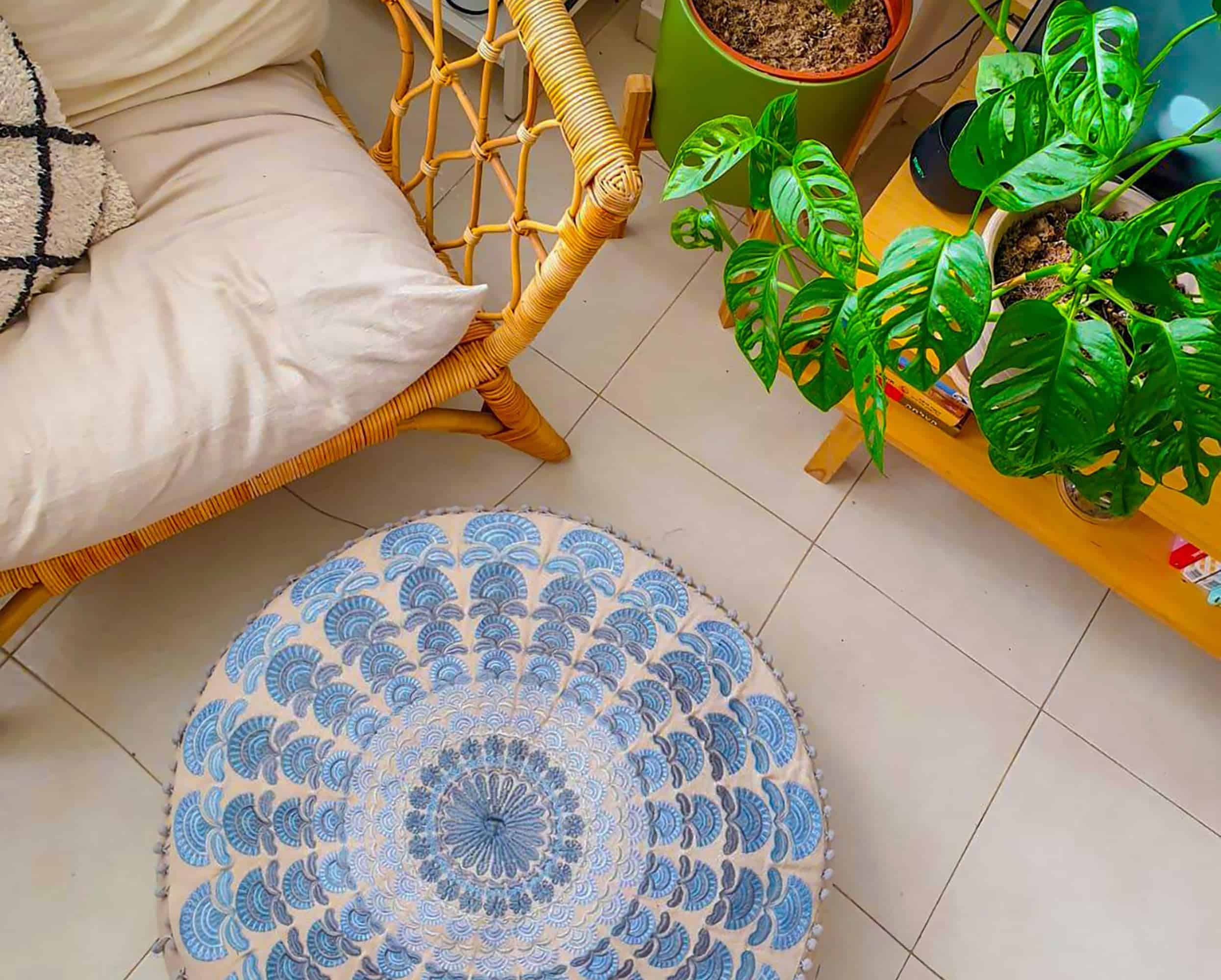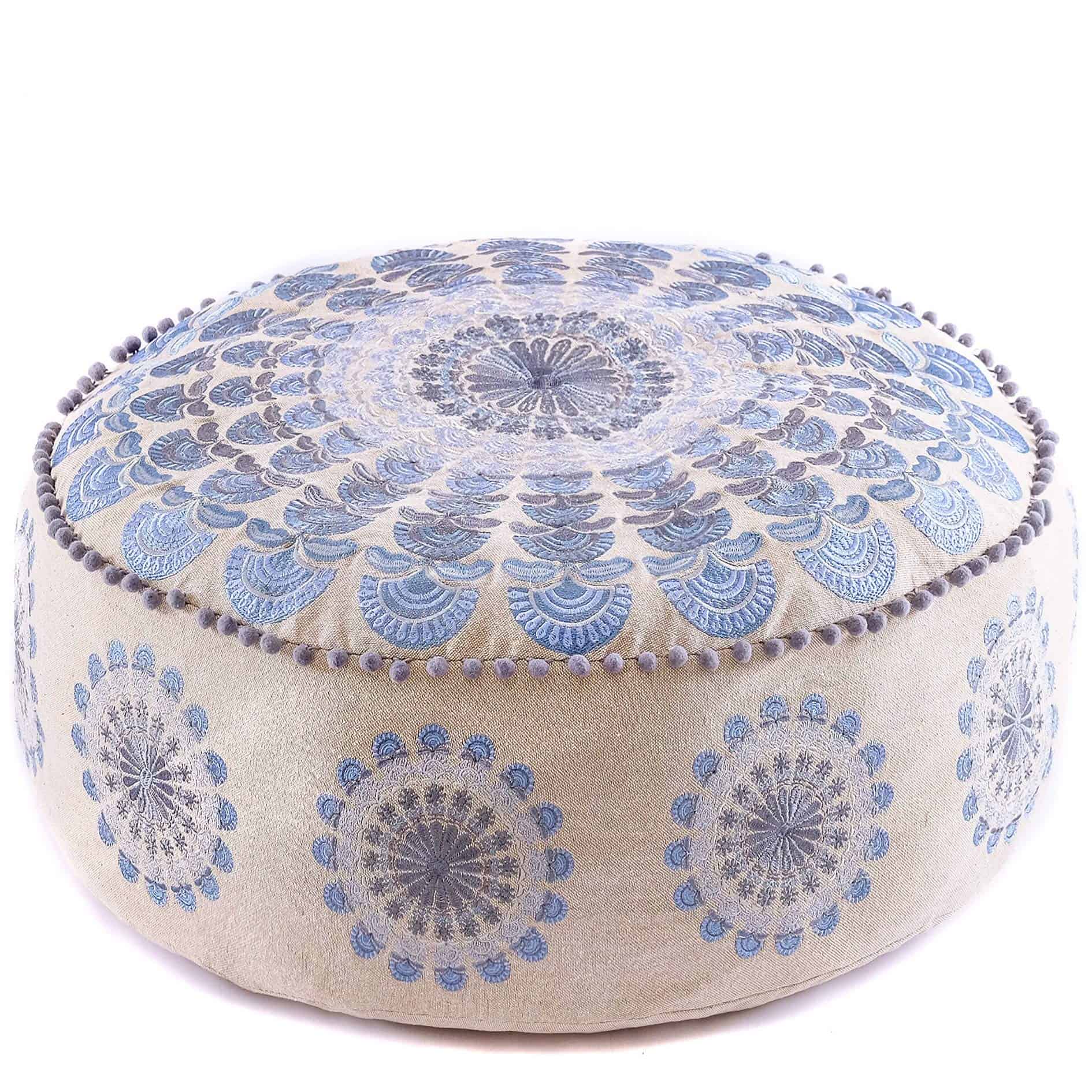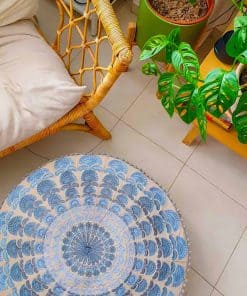 Funda Grande Redonda para Cojín de Suelo Azul Decorativo