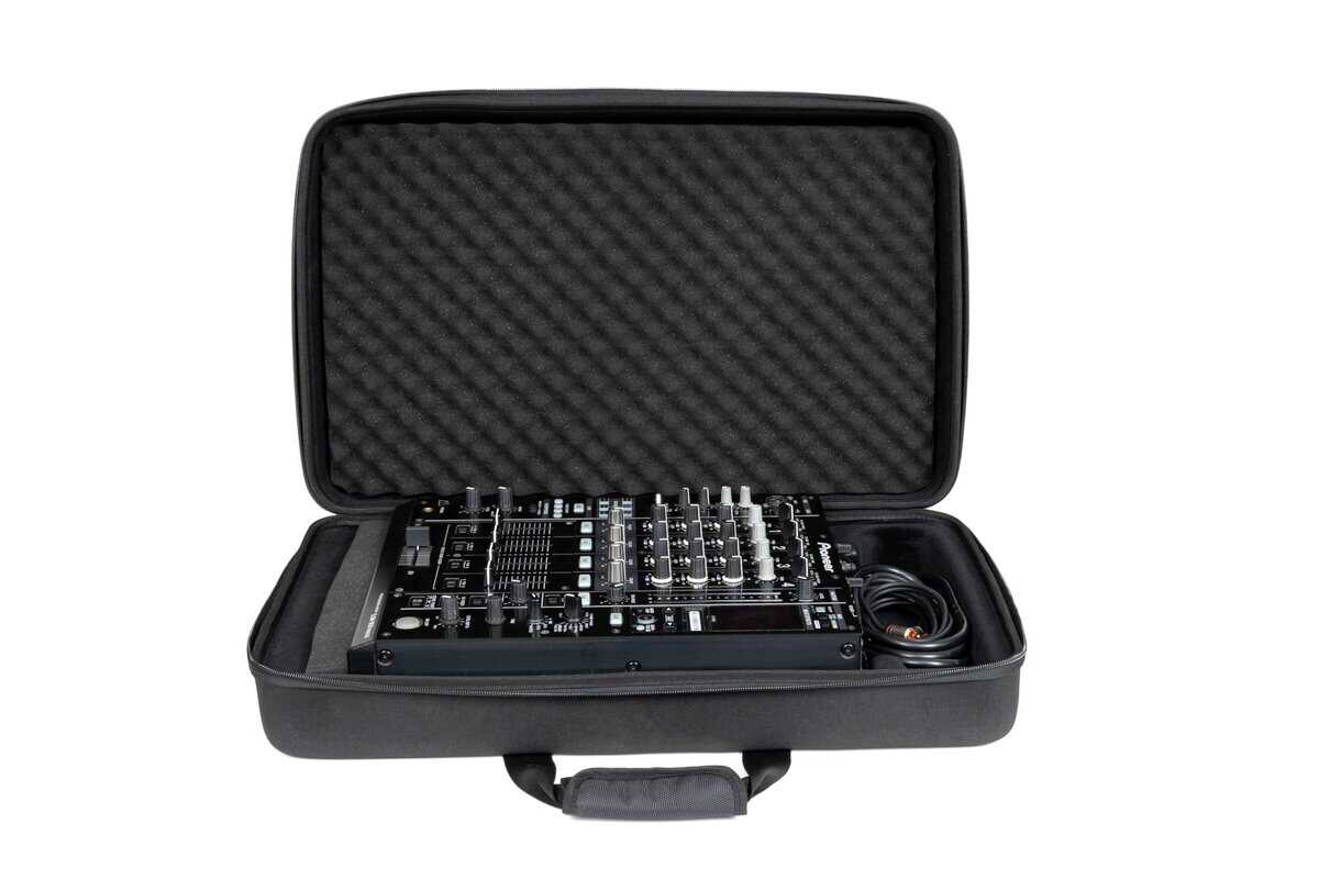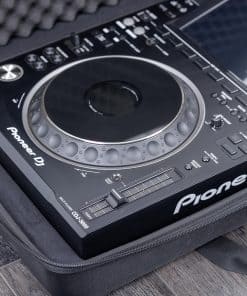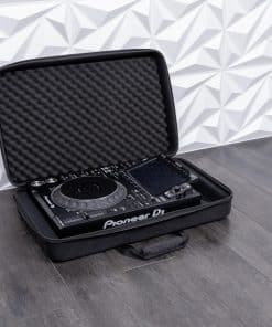 Características: A medida para el CDJ-3000 y DJM-900NXS2 de Pioneer DJ, Cáscara moldeada ligera de EVA y exterior de poliéster resistente al agua, Interior moldeado personalizado con un compartimento separado para cables, Incluye correa para el hombro extraíble con ganchos y pestillos de metal.