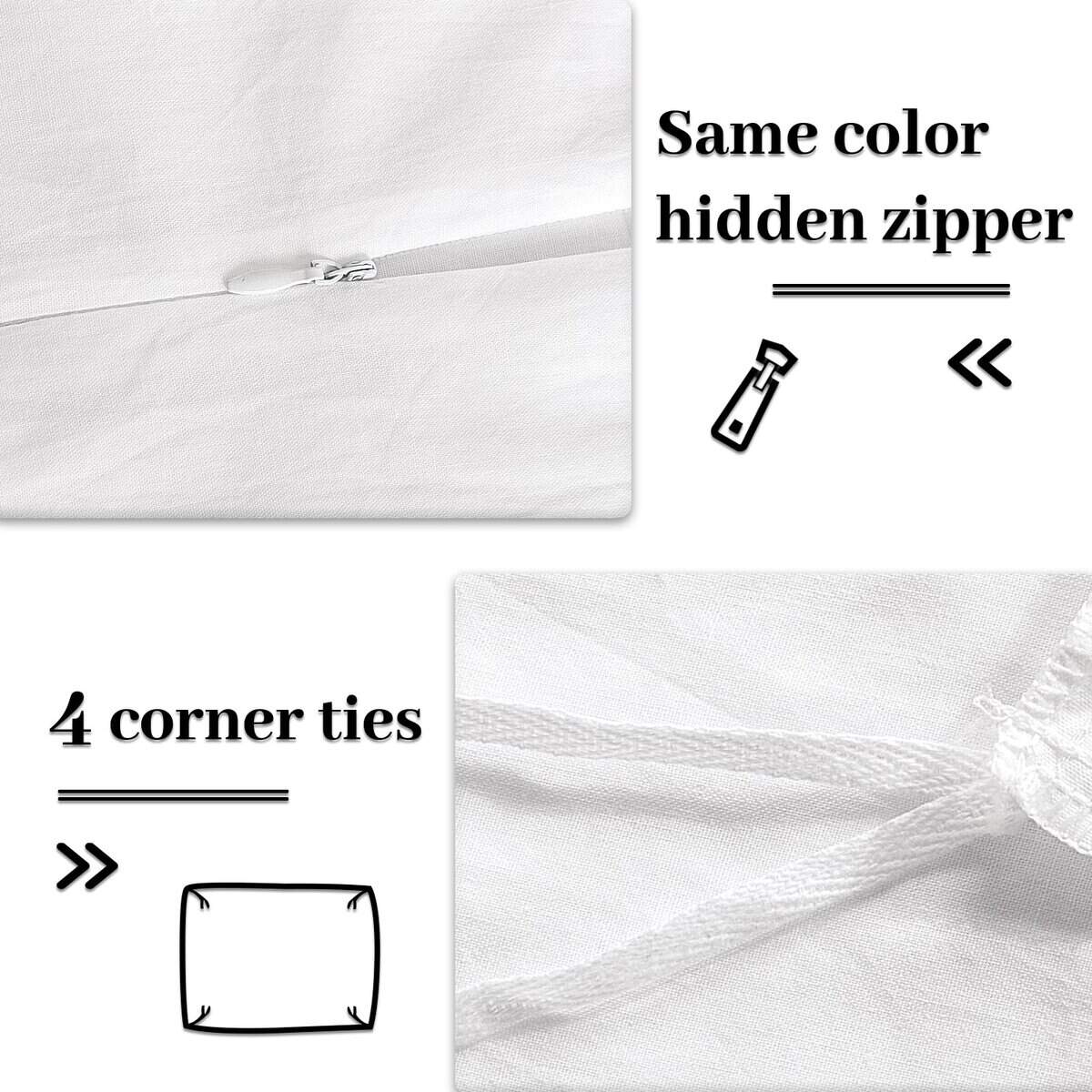 3. Cierre de cremallera oculto y 4 lazos en las esquinas mantienen tu edredón firmemente: es conveniente sellar tu edredón de forma más rápida y fácil con el cierre de cremallera. Los 4 lazos en las esquinas mantienen tu edredón firmemente. Puedes dormir libremente y cómodamente toda la noche. No habrá ropa de cama desordenada por la mañana.